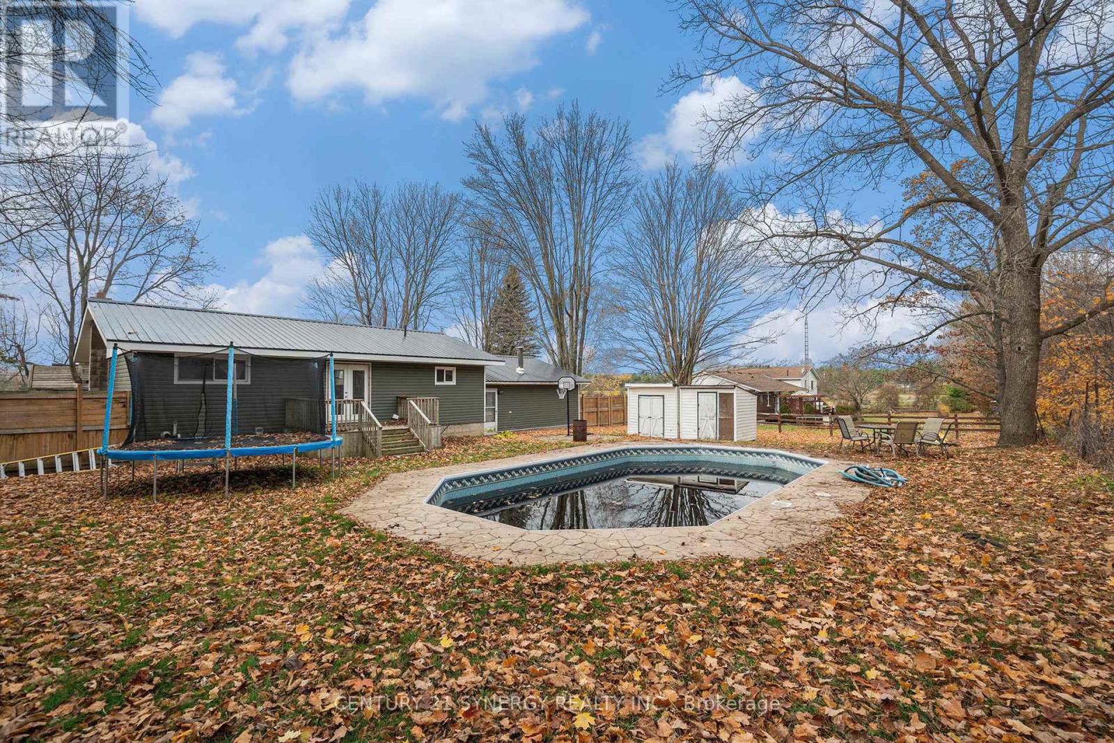 Are you looking to right-size or downsize? This charming home could be just what you're searching for. With everything on one level, there's plenty of room for your kids and grandchildren to visit. The open concept kitchen, dining, and living room create a warm and cozy atmosphere, perfect for family gatherings. Large windows overlook the private lot with mature trees, allowing for natural light to flood in at just the right time. The primary room on the main level offers convenience, while a second multi-use room with patio doors to the back deck provides flexibility. Outside, you'll find an in-ground pool for relaxing on hot summer days, along with plenty of space for your kids and pets to roam. The finished basement offers even more space, perfect for extra bedrooms, an office, storage, or a playroom for the kids. Enjoy the outdoors on the good-sized patios while the kids play in the pool or treehouse. With a double-car garage and sheds for storage, you'll have plenty of space for pool toys, gardening tools, and lawn furniture, leaving room for your cars in the attached garage. Located on a dead-end road on the fringe of Smiths Falls, your daily commute to Smiths Falls or Perth will be a breeze. Don't miss out on this lovely home that offers both comfort and convenience. Approximate utility costs are as follows: Hydro is $2300. yrly Heat is $2400. yrly. OPEN HOUSE Sunday Nov 9, 2025 1:00PM - 1:00 PM