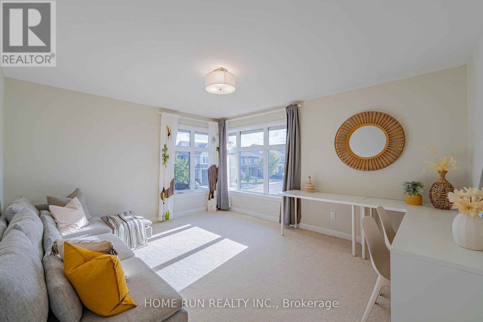 Unique single-family home specifically designed for a corner lot by Hobin Architecture and built by Uniform Developments in 2019. It offers 5 bedroom, 3 bathrooms, and 2,477 sq.ft of living space above grade. This home is located in the high-end, low-density Orchard community in Stonebridge, Barrhaven with an incredibly beautiful streetscape, thanks to the blend of Uniform's traditional and modern home designs and the curved, sloped streets. Situated on a very quiet corner lot, this home is Uniform's 42' Havelock model. It is a rare find; with a side entry, the two-part front profile creates an ultra-spacious front-facing office and a well-sized two-car garage. The foyer, with its two-storey open-to-above design, connects to the open stairwell and is bathed in natural light from large south-facing side windows. The office is among the largest that any 42' home could offer; combined with an upgraded full bath on the main floor, the oversized office serves as a perfect guest bedroom. The main living, dining, and kitchen area showcases Uniform's excellent open-concept design, with no visible load-bearing elements such as posts, columns, or beams. The living room features large east and south-facing windows and a gas fireplace. The chef's kitchen includes full-height cabinetry with under-cabinet lighting, granite counters, and ample storage and counter space. The laundry room is conveniently located on the main floor. The beautiful and bright stairwell connects the first and second floors. Thanks to the large windows, the second-floor hallway is well illuminated. There are four bedrooms and two full bathrooms on this level, with each bedroom featuring either front or rear-facing windows and ample space. The basement is not finished but has a 3-piece rough-in. This home is close to Stonebridge Golf Club, Minot Recreation Center, and all other amenities.