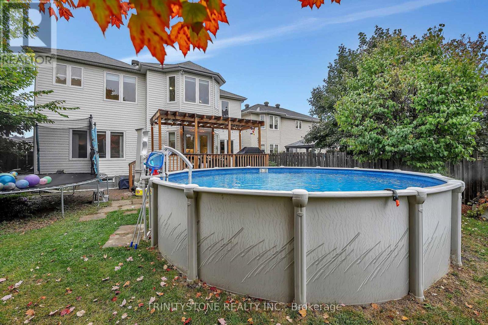 Welcome to 6 Cinnabar Way located in the neighborhood of Granite Ridge, Stittsville. This updated 4-bedroom, 4-bath home family home with no rear neighbors is conveniently located within walking distance of several schools, the Cardel Rec Center, as well as many other amenities. On the bright main level you will enter to a large inviting foyer leading to a hardwood circular staircase, a separate living-dining room, a huge, recently updated open kitchen with eat in area, quartz counters, and walk-in pantry, as well as a large family room with gas fireplace, all overlooking the private, treed yard with above ground pool. There is hardwood and ceramic flooring throughout the main level, as well as a large mudroom with laundry area. The second floor, with hardwood and laminate flooring, has 4 bedrooms that are all a great size, with large windows letting in ample natural light, 4 pc main bathroom. The oversized primary bedroom has a separate sitting area, an updated 3-pc ensuite and walk-in closest. The lower level is fully finished with a huge rec room, a 3-pc bathroom, and two other rooms. Off the eating area, you will find a large deck with pergola, overlooking the private fully fenced yard with above ground pool. Recent upgrades: 2024: Full kitchen reno; 2023: Ensuite bathroom reno, pool heater, pool liner, pool filter; 2022: Garage door, Pergola. New pantry, Whole house painted, Laminate flooring in bedrooms; 2021 Roof, Deck, Patio door