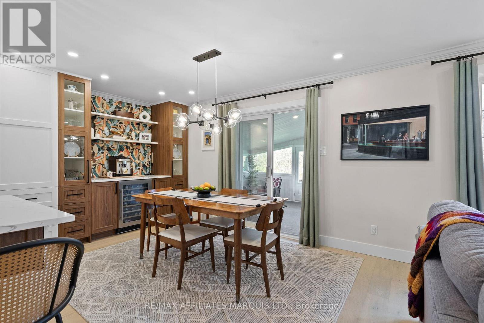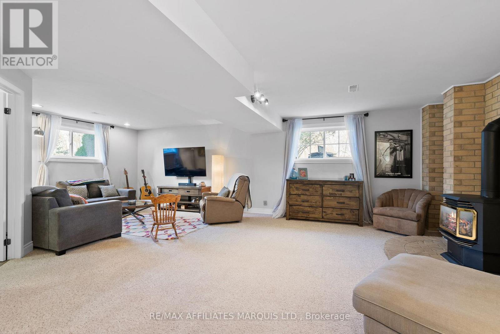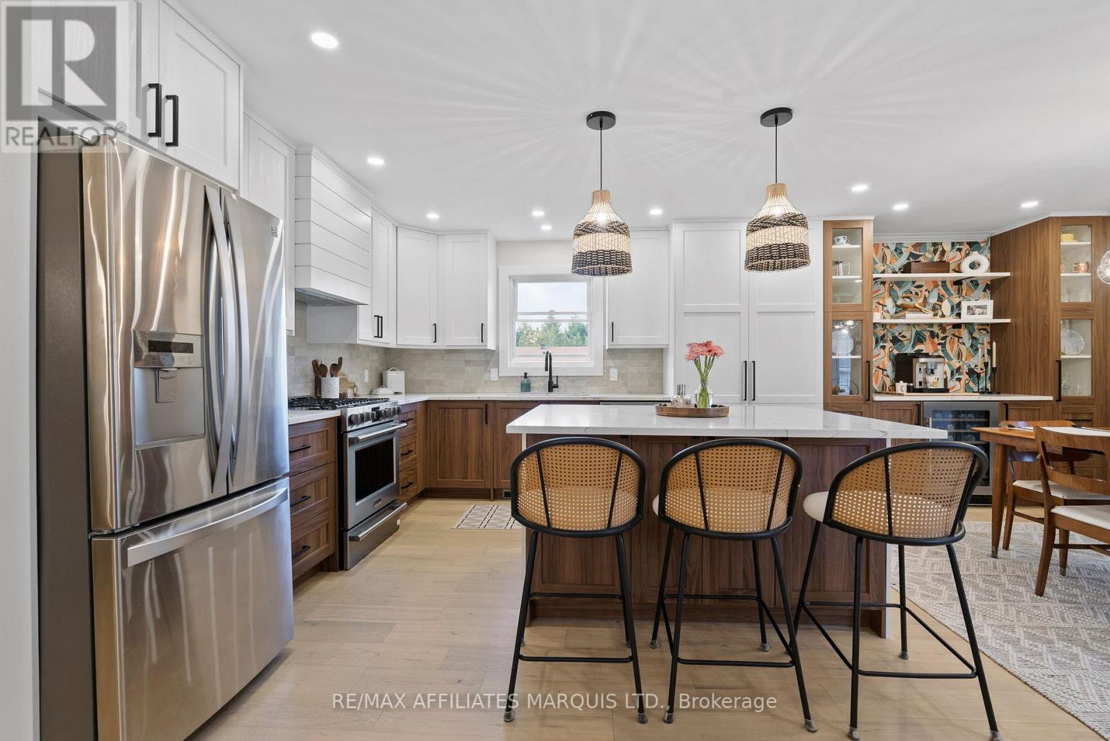 Welcome to this stylish and personality-filled 3+2 bedroom, 2 bathroom home offering approximately 1400 square feet of beautifully finished main floor living space plus a fully finished basement. From the moment you step inside, you'll notice the light-toned hardwood flooring that flows seamlessly throughout the main level, creating an inviting and airy feel. The recently renovated custom kitchen is truly a showpiece, featuring a large island with extra storage, quartz countertops, a stunning glass tile backsplash, boho lighting and thoughtfully designed cabinetry with modern conveniences. The open-concept layout connects the kitchen to both the living room and the bright three-season sunroom, perfect for morning coffee or quiet evenings overlooking the backyard. The dining area exudes modern charm, complete with a striking feature wall and space for a cozy coffee bar setup. Each of the three main-floor bedrooms is generously sized and tastefully decorated with accent walls that add warmth and character. The main bathroom is a spa-like retreat, offering a freestanding soaker tub and a walk-in glass shower. Downstairs, the fully finished basement extends your living space with a spacious rec room featuring a gas fireplace - ideal for movie nights or family gatherings - along with two additional bedrooms and an updated second bathroom. Outside, enjoy the large backyard with a hot tub, fire pit, and plenty of space for entertaining or relaxing under the stars. The attached double garage adds convenience, and the home is located in an excellent family-oriented neighborhood just minutes from Cornwall - the perfect blend of modern comfort and small-town charm.
