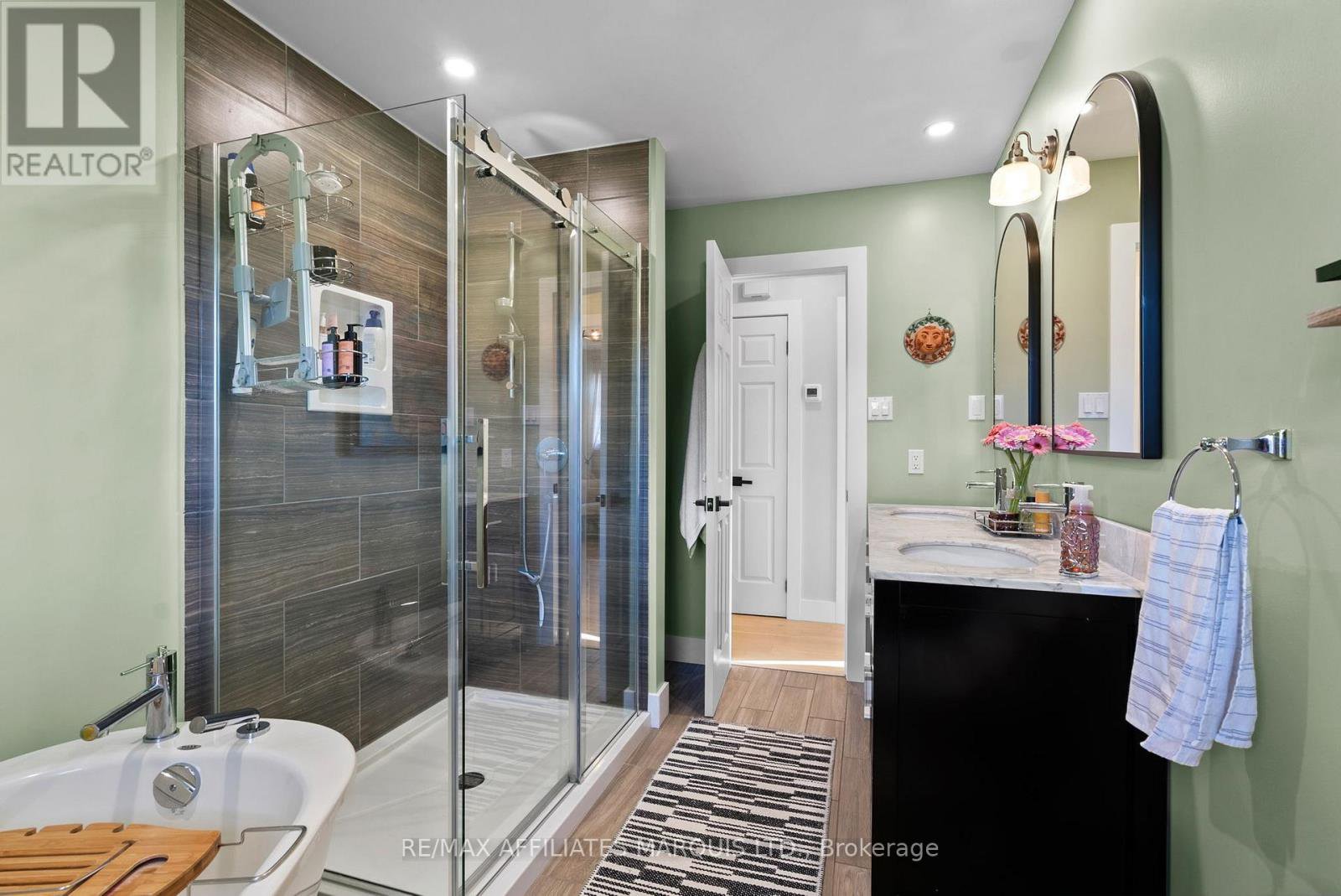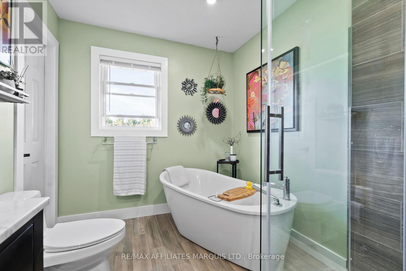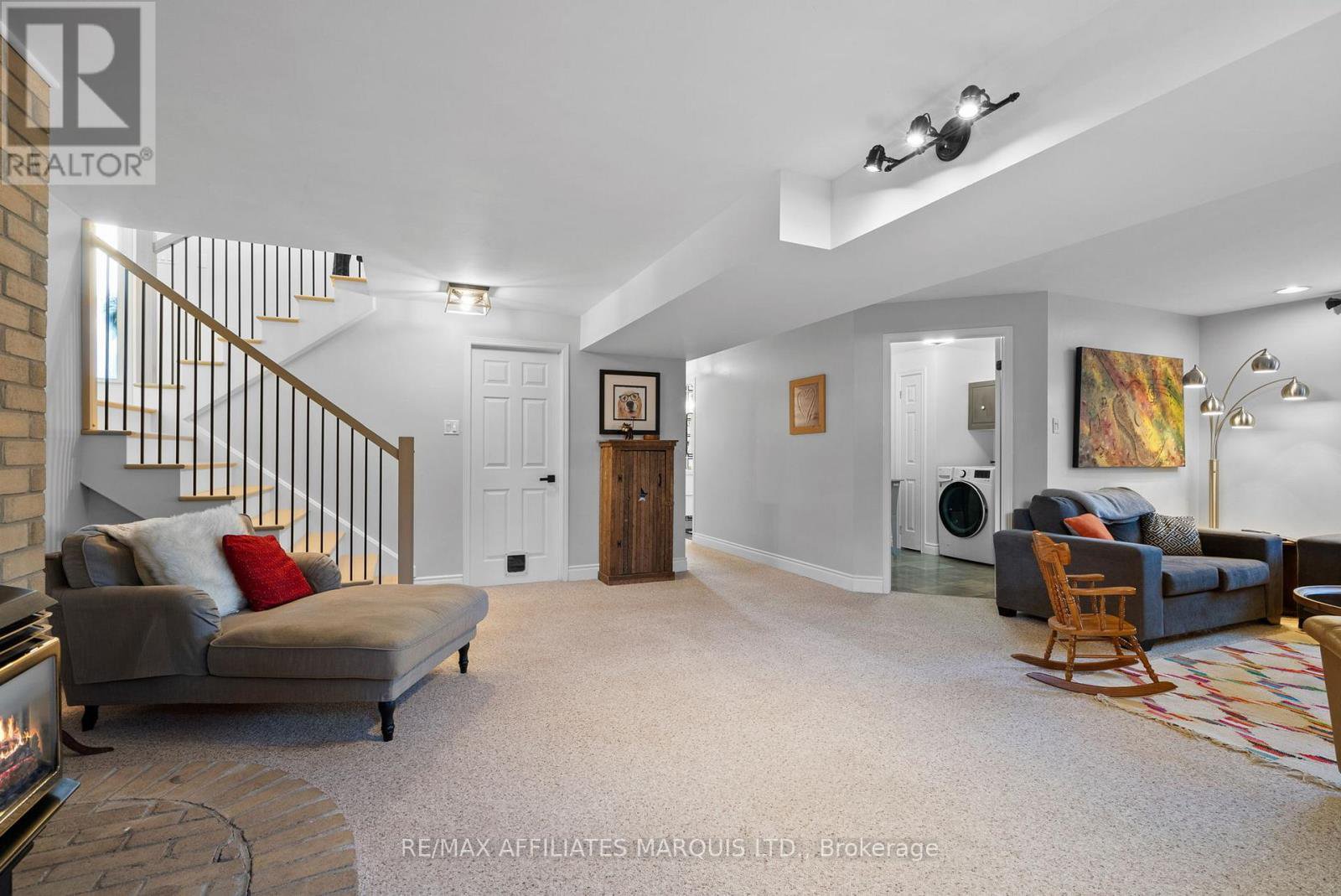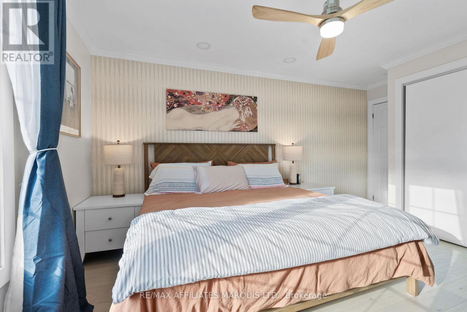 Welcome to this stylish and personality-filled 3+2 bedroom, 2 bathroom home offering approximately 1400 square feet of beautifully finished main floor living space plus a fully finished basement. From the moment you step inside, you'll notice the light-toned hardwood flooring that flows seamlessly throughout the main level, creating an inviting and airy feel. The recently renovated custom kitchen is truly a showpiece, featuring a large island with extra storage, quartz countertops, a stunning glass tile backsplash, boho lighting and thoughtfully designed cabinetry with modern conveniences. The open-concept layout connects the kitchen to both the living room and the bright three-season sunroom, perfect for morning coffee or quiet evenings overlooking the backyard. The dining area exudes modern charm, complete with a striking feature wall and space for a cozy coffee bar setup. Each of the three main-floor bedrooms is generously sized and tastefully decorated with accent walls that add warmth and character. The main bathroom is a spa-like retreat, offering a freestanding soaker tub and a walk-in glass shower. Downstairs, the fully finished basement extends your living space with a spacious rec room featuring a gas fireplace - ideal for movie nights or family gatherings - along with two additional bedrooms and an updated second bathroom. Outside, enjoy the large backyard with a hot tub, fire pit, and plenty of space for entertaining or relaxing under the stars. The attached double garage adds convenience, and the home is located in an excellent family-oriented neighborhood just minutes from Cornwall - the perfect blend of modern comfort and small-town charm.