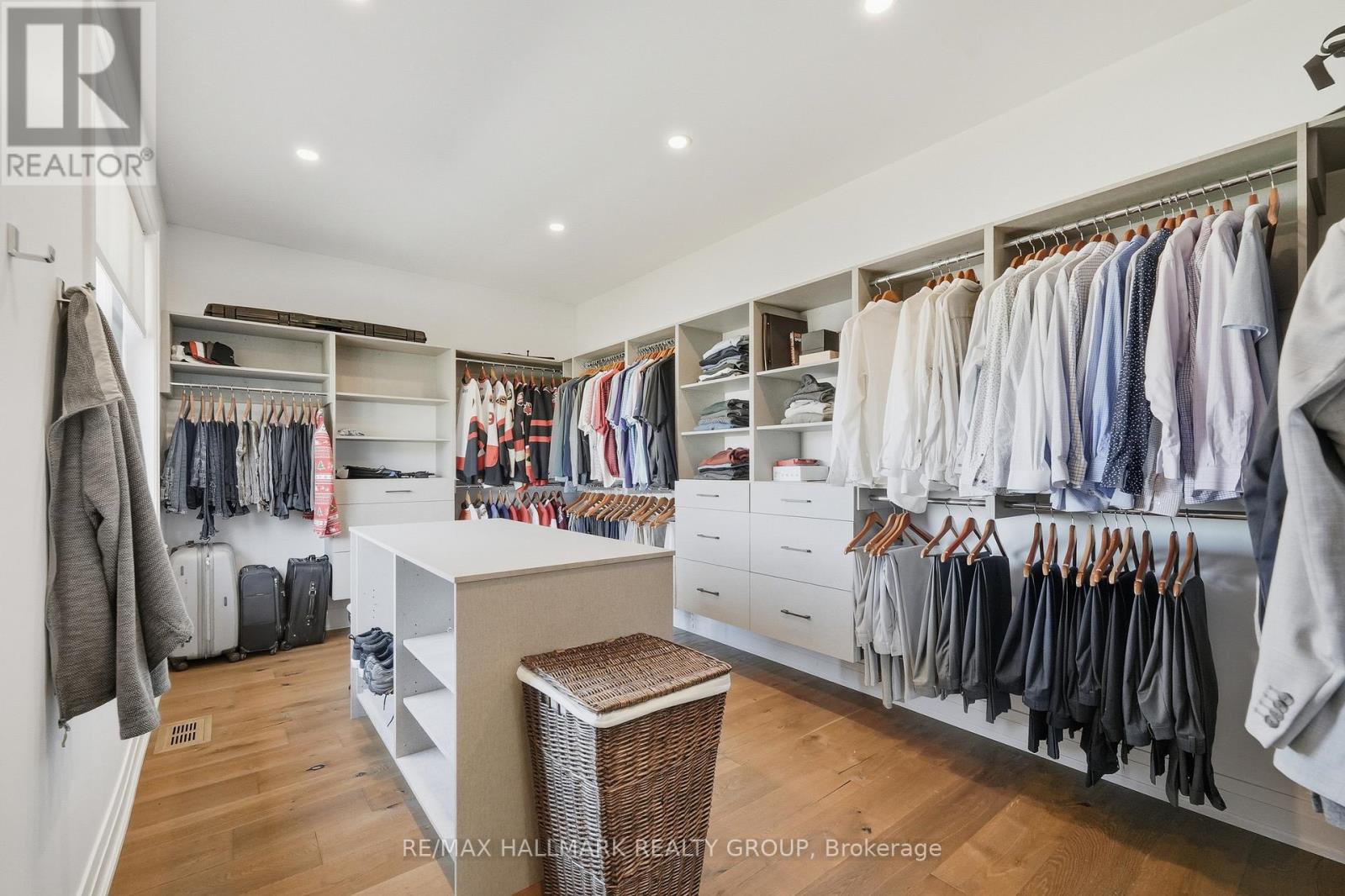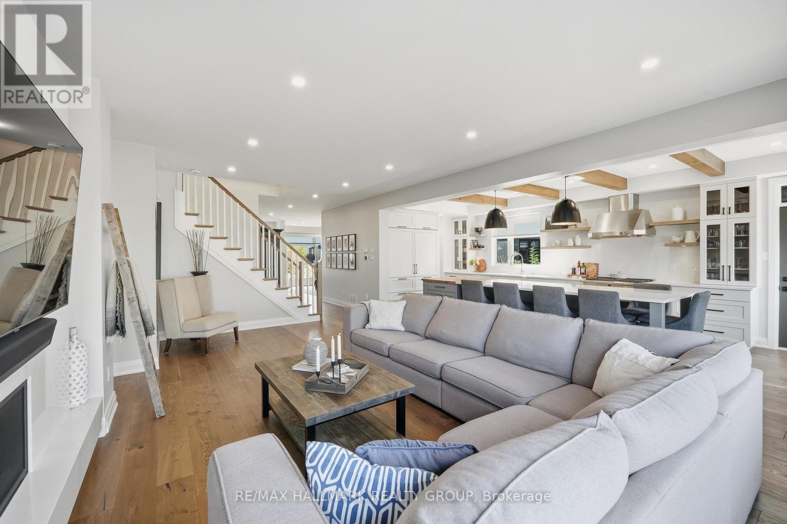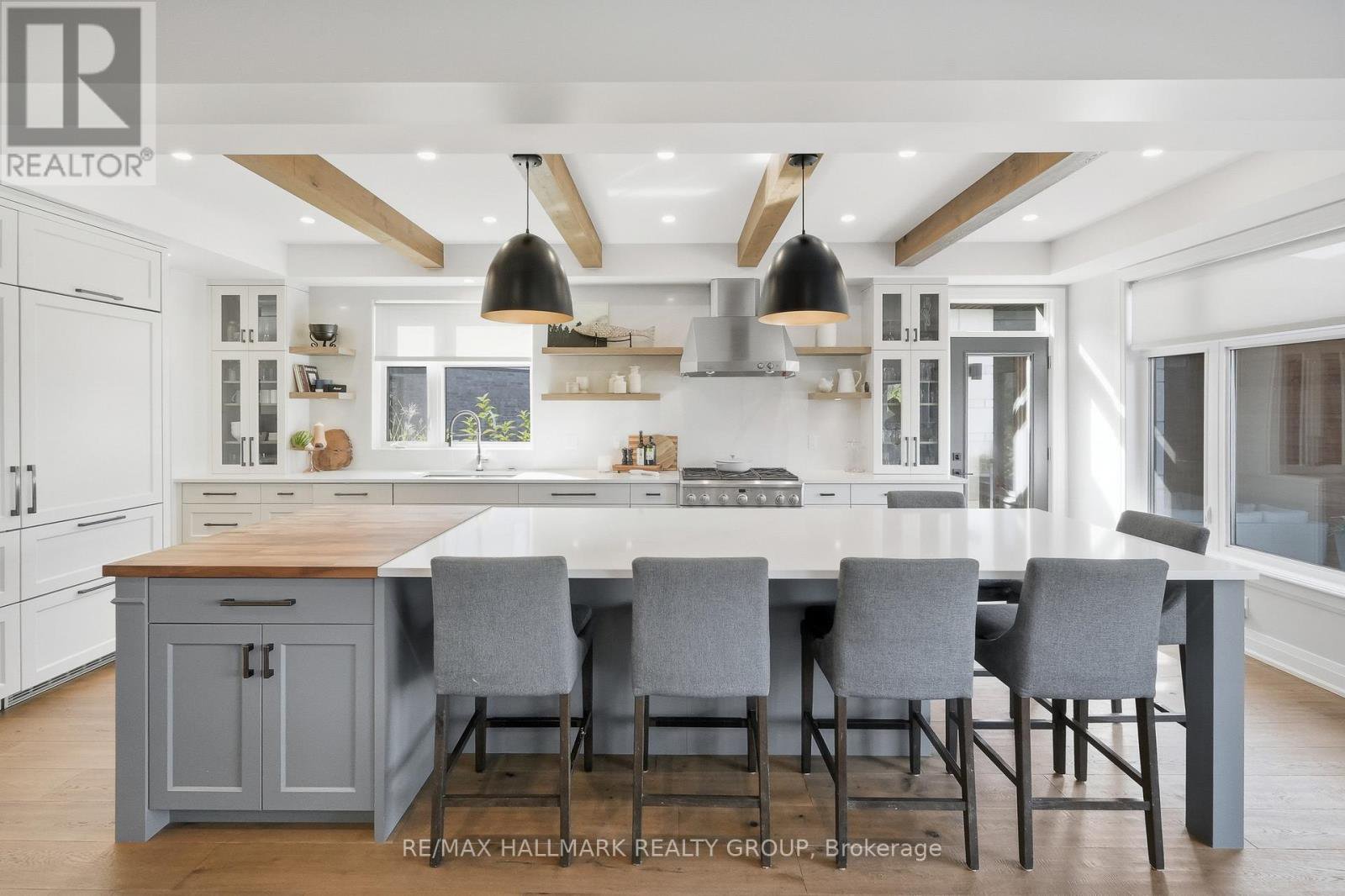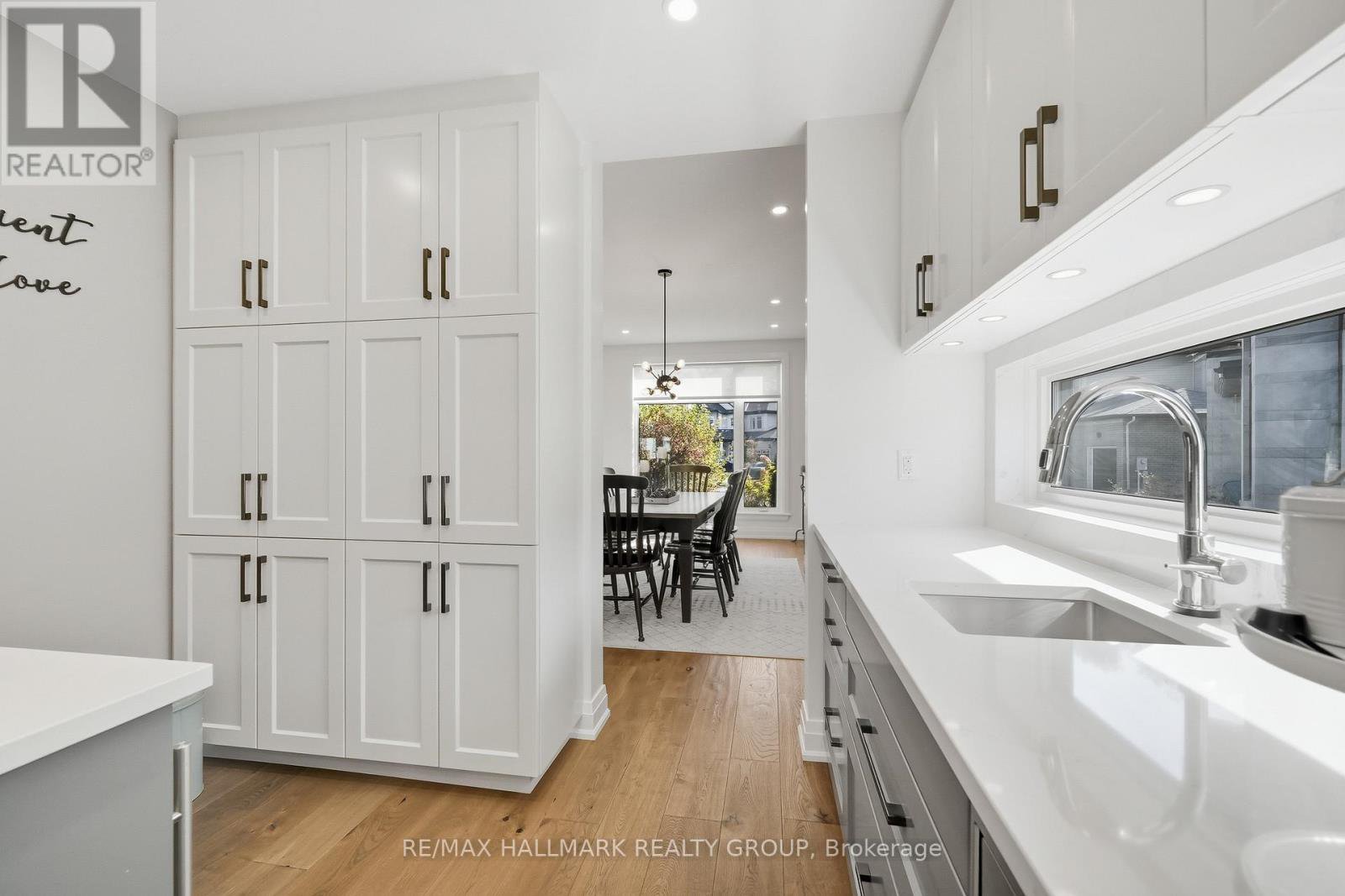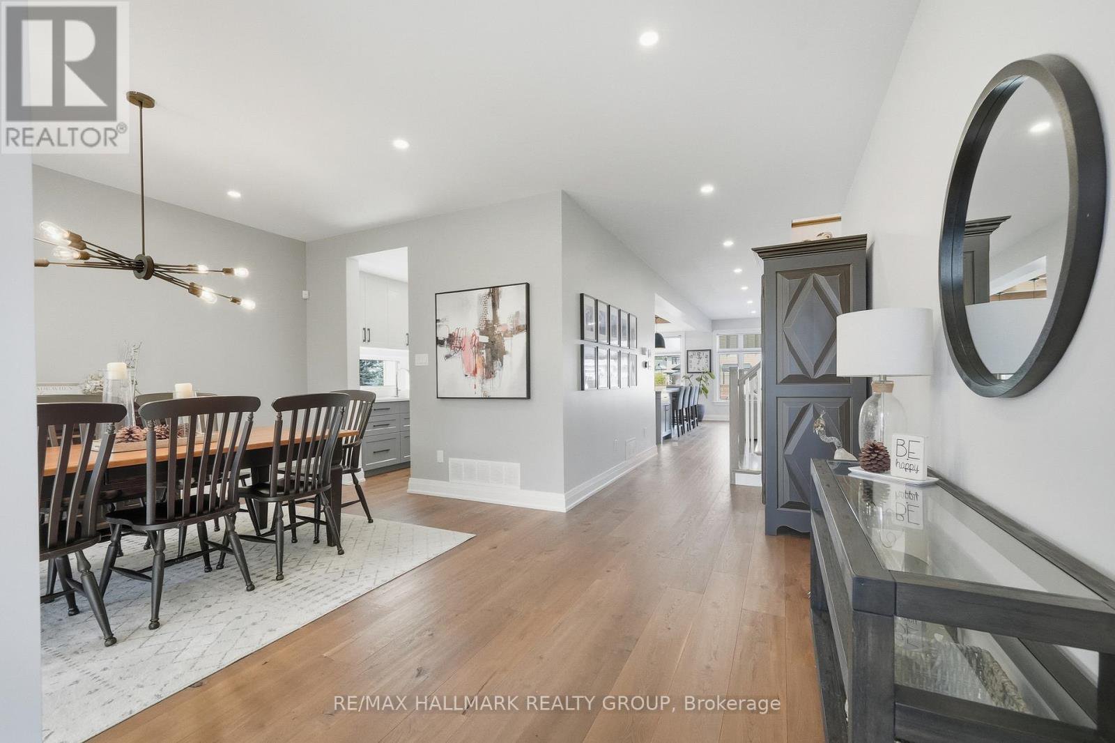 **OPEN HOUSE SUNDAY, NOVEMBER 9, BETWEEN 2-4PM** This stunning 5 bedroom home blends architectural sophistication with modern comfort, set in one of Orleans' most prestigious communities of Trails Edge. Its striking stone-and-brick exterior, modern landscaping and triple-car garage make an unforgettable first impression. Step outside to your backyard oasis - an entertainer's paradise featuring an inground pool, sleek stone patio, and a rustic-style covered pavilion with exposed beams, built-in gas BBQ, gas fireplace, TV area, and ample space to dine or lounge in style. Professionally landscaped for elegance and low maintenance, this outdoor retreat is perfect for summer gatherings and entertaining. Inside, rich hardwood flows throughout, complemented by pot lights and expansive windows that flood the home with natural light. The main level features a living room with gas fireplace, a private office with built-ins, and a chef's kitchen designed to impress - high-end appliances, gas stove, oversized island with seating for six, custom drawers, accent wood beams, and a convenient butler style service kitchen with two mini fridges, perfect for coffee, cocktails, or entertaining guests. Upstairs, the lavish primary suite boasts a boutique-style walk-in closet with island and a spa-inspired 5-piece ensuite with soaking tub, glass shower with rain head, and floating dual-sink vanity. Each secondary bedroom offers a walk-in closet and ensuite bath, while a generous laundry room with built-in storage completes the upper level. The finished lower level expands living space with a recreation area, wet bar, two bedrooms, a full bath, and abundant storage, creating an ideal retreat for family and guests. Combining modern elegance, sophisticated living, and exceptional walking access to top elementary and secondary schools, parks, and amenities, this home delivers the ultimate in comfort and style.