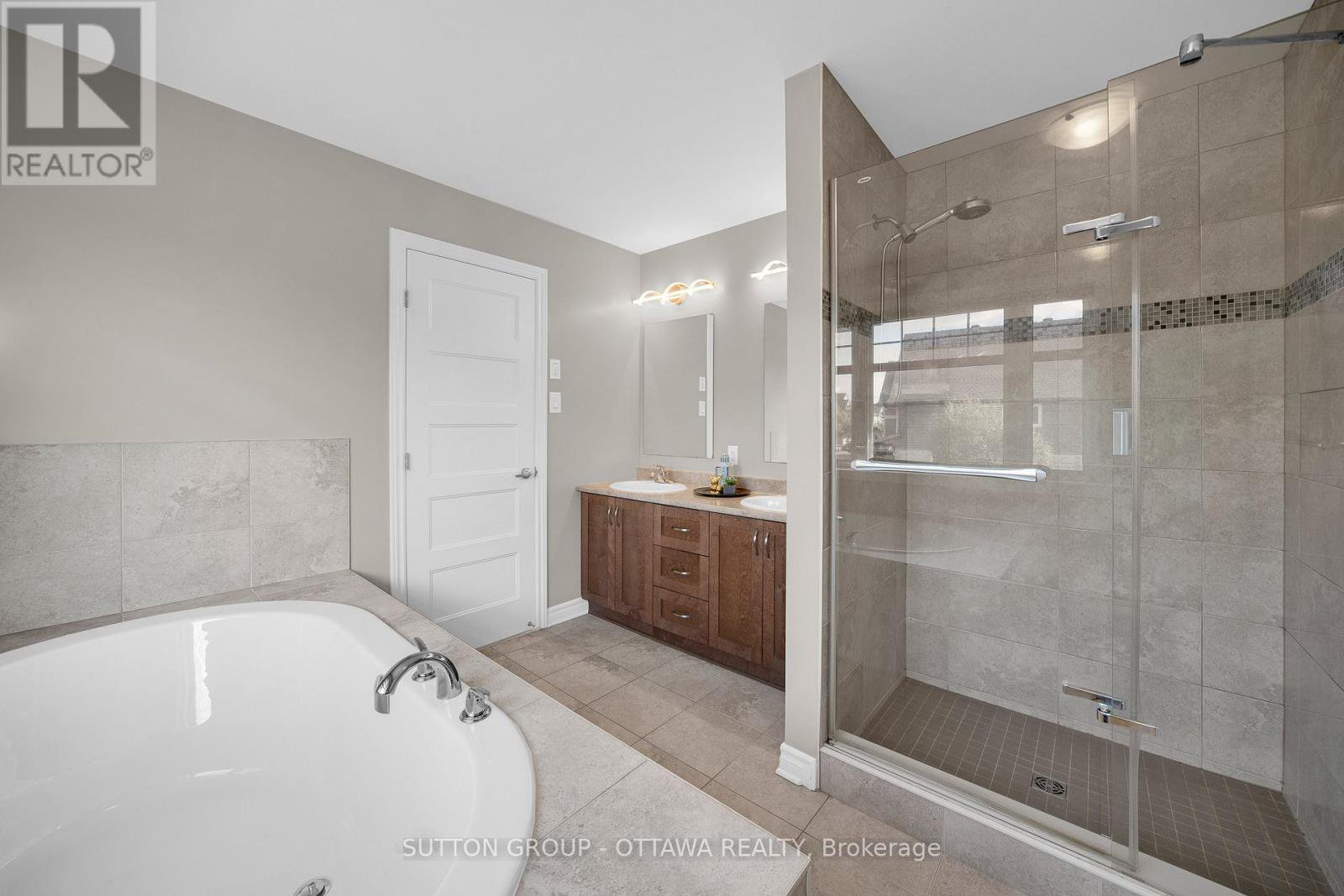Welcome to 412 Odessa Way, a stunning 100 PRECENT ENERGY STAR CERTIFIED TARTAN ASHTON model with over 3000 SQ FT of living space, featuring 5 BEDROOMS, 4 BATHROOMS, plus a MAIN FLOOR DEN. From the widened INTERLOCK PATHWAY out front to the FULLY FENCED, SOUTH-FACING BACKYARD with INTERLOCK PATIO, this home is both inviting and low-maintenance. Inside, you'll love the soaring 9-FOOT CEILINGS, HARDWOOD FLOORS, and LIGHT CERAMIC TILES that create a CLEAN, CRISP feel throughout. The MAIN FLOOR DEN with FRENCH DOORS offers privacy, while the OPEN-CONCEPT layout flows beautifully with a FORMAL DINING ROOM, a MASSIVE FAMILY ROOM, and a CHEFS KITCHEN complete with BREAKFAST AREA. Thoughtful touches like the CATHEDRAL CEILING and ENLARGED PATIO DOORS flood the kitchen and breakfast nook with natural light and frame perfect views of the SOUTH-FACING BACKYARD. The OVERSIZED mudroom with built-ins keeps everything neat and organized. Upstairs, the PRIMARY SUITE is a showstopper with a SUN-FILLED BEDROOM, WALK-IN CLOSET, and a LUXURY ENSUITE with SOAKER TUB and GLASS SHOWER. This level also includes a 5-PIECE main bath, SECOND-FLOOR LAUNDRY, and 3 generous sized bedrooms. The FULLY FINISHED BASEMENT adds a 5TH BEDROOM, 4TH BATHROOM, and a HUGE REC ROOM perfect for a GYM, PLAYROOM, or HOME THEATER. All of this in the heart of Barrhaven, just minutes to HWY 416, COSTCO PLAZA, and walking distance to SCHOOLS, PARKS, and SHOPPING!