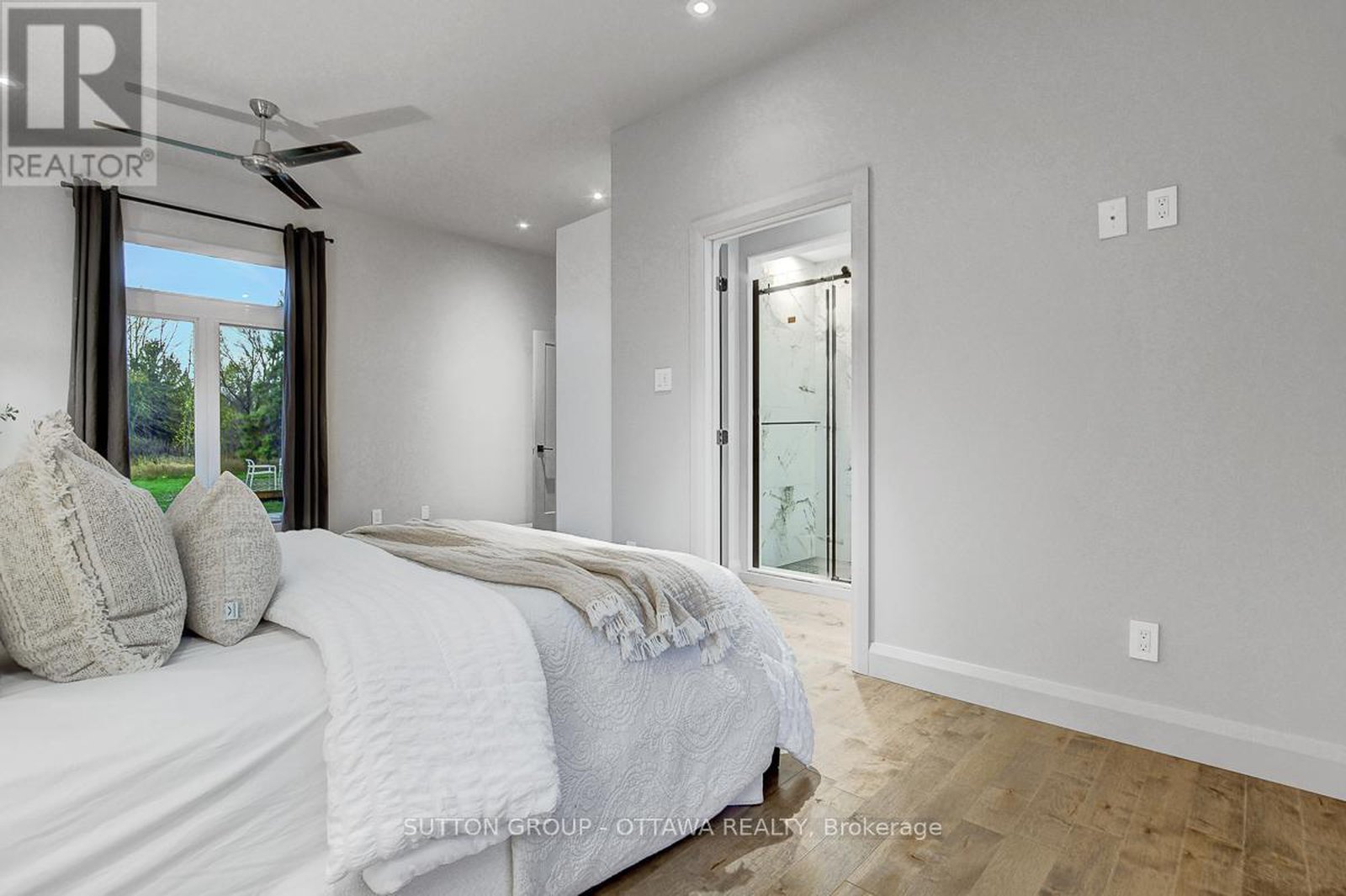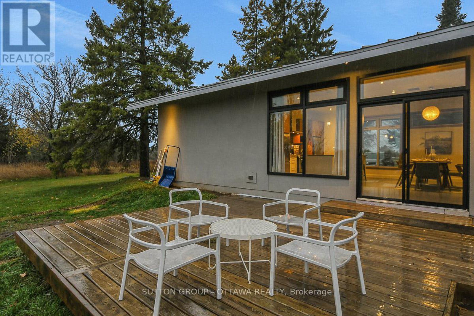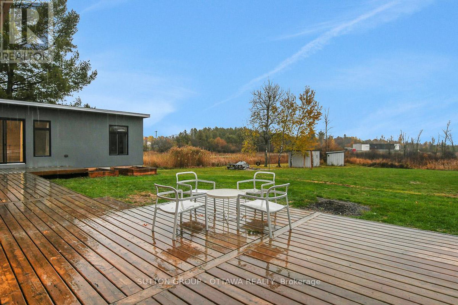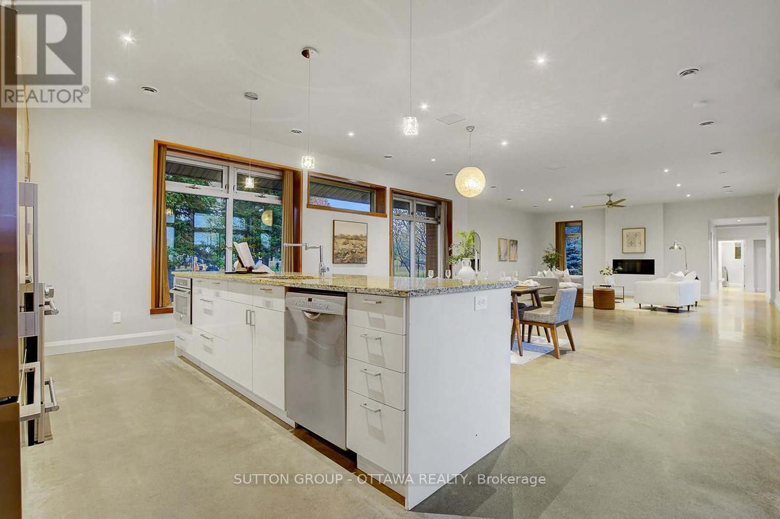 Welcome to 7844 Bleeks Road - Country Luxury in the Heart of Munster Located in the charming village of Munster and within walking distance of Saunders Farm, this beautifully updated bungalow sits on a tranquil two-acre lot that perfectly blends country serenity with modern comfort. Originally renovated in 2014 and expanded with a stunning addition in 2018, the home showcases quality craftsmanship, thoughtful design, and an inviting open-concept layout ideal for family living and entertaining. Step inside from the side entrance into a wide hallway that leads to a bright, spacious living area where polished concrete floors with radiant heat create warmth and elegance. The chef's kitchen features stainless-steel appliances, a gas stove with pot filler, and an abundance of counter space, flowing naturally into the dining and living rooms filled with natural light and scenic views of the surrounding greenery. The home offers three bedrooms and three full bathrooms, including a generous primary suite with a beautifully renovated ensuite completed in 2025. The second bathroom, completed in 2018, doubles as a convenient laundry space. A fully finished basement extends the living area and sits beneath the 2018 addition, perfect for a recreation room, gym, or home office.Outside, a wrap-around deck overlooks a gently sloping backyard surrounded by trees, offering the perfect setting for outdoor gatherings or quiet mornings with coffee. The property features a drilled well, a new septic system installed in 2018 and pumped in 2020, a metal roof on the main home, and new shingles and siding on the addition. Ample driveway parking provides space for family and guests alike. Only twenty minutes from Highway 417, this property offers the best of both worlds - peaceful country living with convenient access to Ottawa's west-end amenities.Easy to show. Heated thermal floors on one side and forced air on the new additions. 2 furnaces, 2 Ac, 2 Hot water tanks