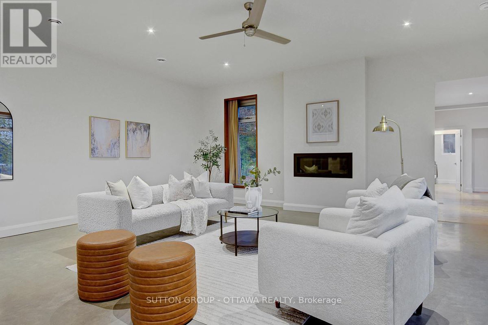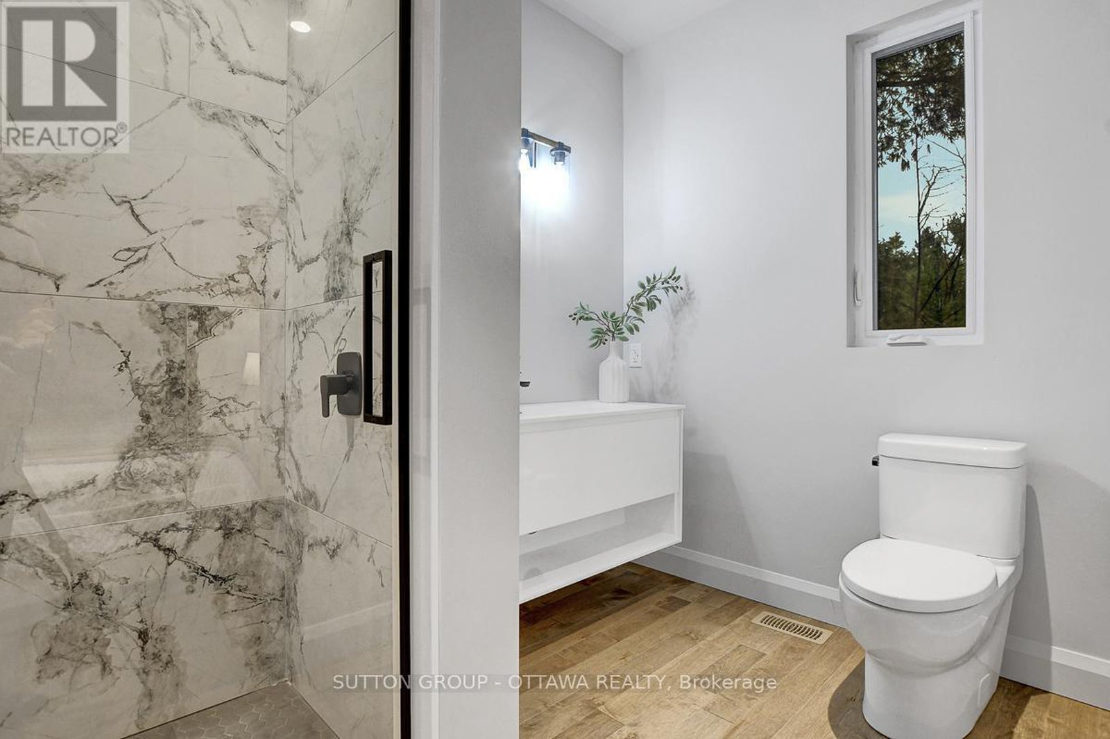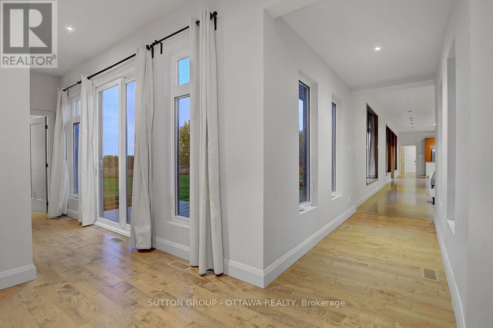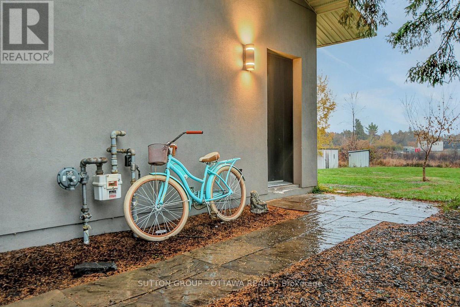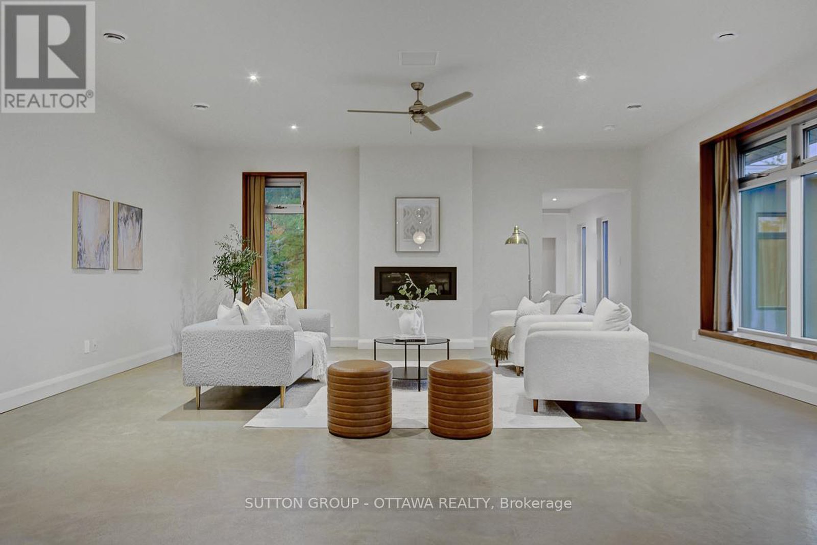 Welcome to 7844 Bleeks Road - Country Luxury in the Heart of Munster Located in the charming village of Munster and within walking distance of Saunders Farm, this beautifully updated bungalow sits on a tranquil two-acre lot that perfectly blends country serenity with modern comfort. Originally renovated in 2014 and expanded with a stunning addition in 2018, the home showcases quality craftsmanship, thoughtful design, and an inviting open-concept layout ideal for family living and entertaining. Step inside from the side entrance into a wide hallway that leads to a bright, spacious living area where polished concrete floors with radiant heat create warmth and elegance. The chef's kitchen features stainless-steel appliances, a gas stove with pot filler, and an abundance of counter space, flowing naturally into the dining and living rooms filled with natural light and scenic views of the surrounding greenery. The home offers three bedrooms and three full bathrooms, including a generous primary suite with a beautifully renovated ensuite completed in 2025. The second bathroom, completed in 2018, doubles as a convenient laundry space. A fully finished basement extends the living area and sits beneath the 2018 addition, perfect for a recreation room, gym, or home office.Outside, a wrap-around deck overlooks a gently sloping backyard surrounded by trees, offering the perfect setting for outdoor gatherings or quiet mornings with coffee. The property features a drilled well, a new septic system installed in 2018 and pumped in 2020, a metal roof on the main home, and new shingles and siding on the addition. Ample driveway parking provides space for family and guests alike. Only twenty minutes from Highway 417, this property offers the best of both worlds - peaceful country living with convenient access to Ottawa's west-end amenities.Easy to show. Heated thermal floors on one side and forced air on the new additions. 2 furnaces, 2 Ac, 2 Hot water tanks