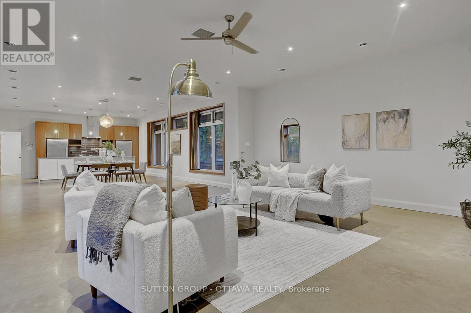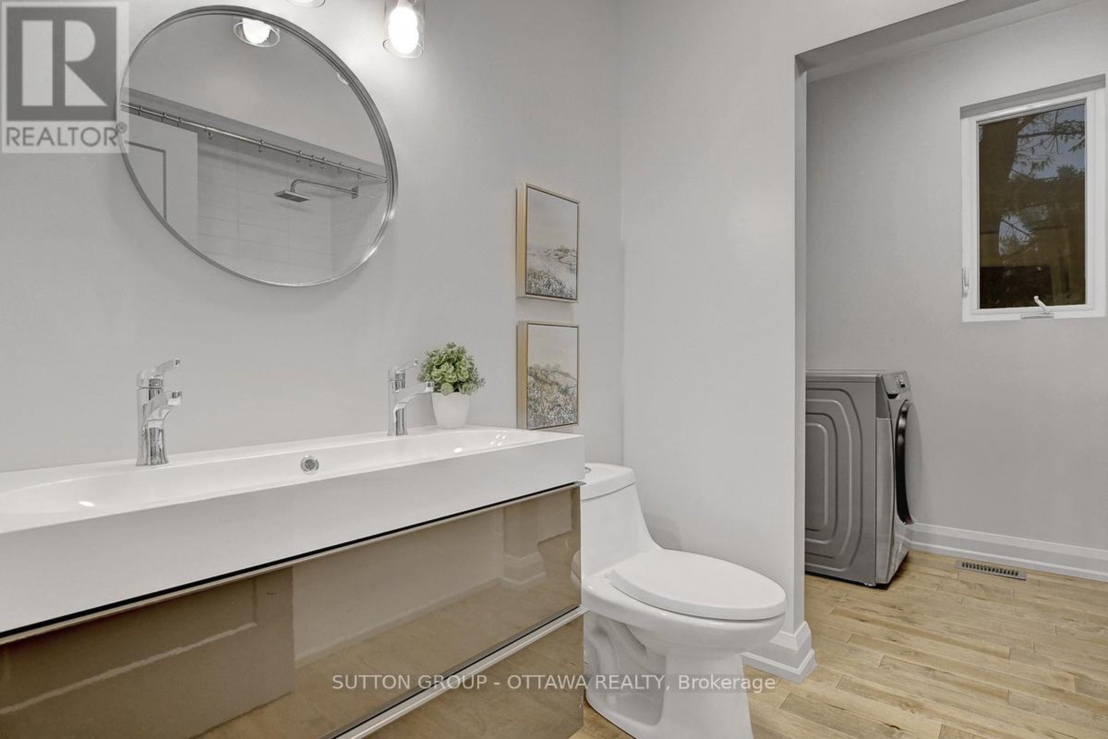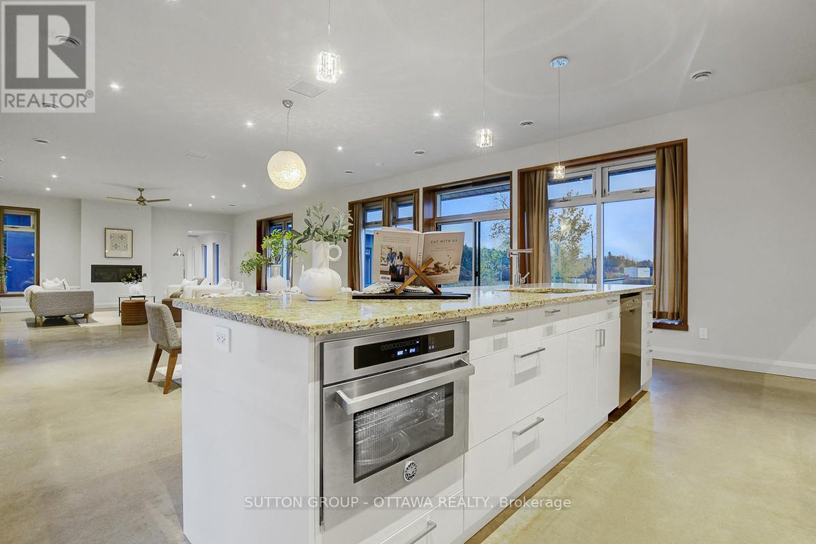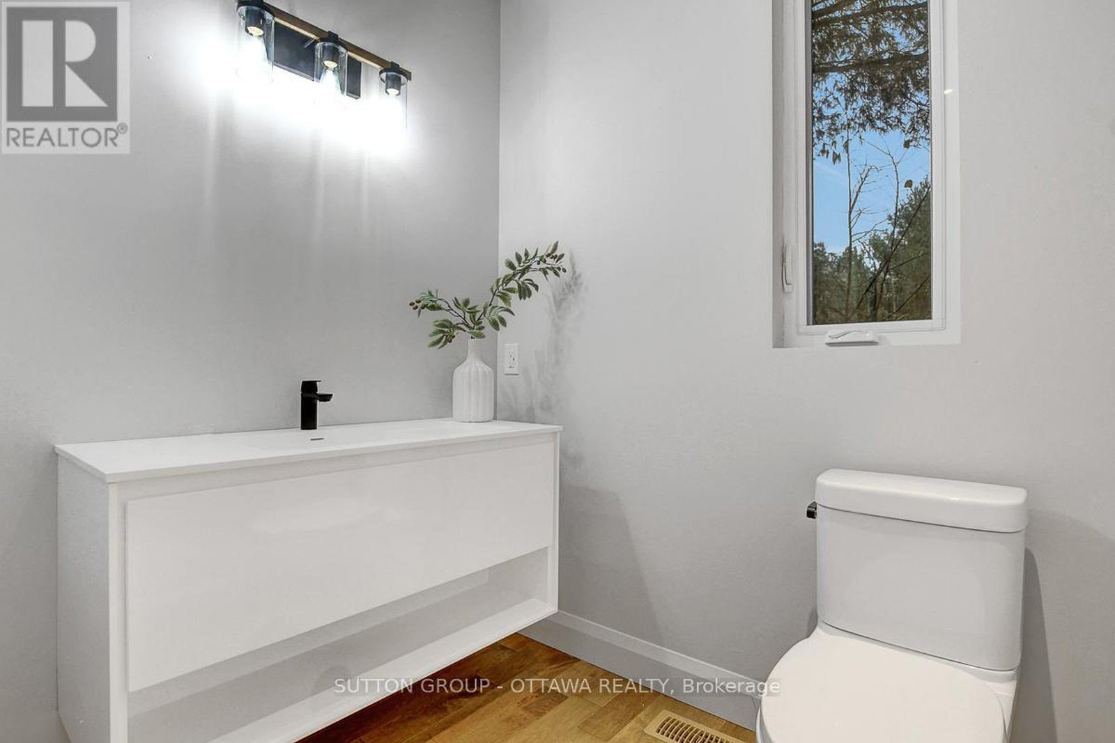 Welcome to 7844 Bleeks Road - Country Luxury in the Heart of Munster Located in the charming village of Munster and within walking distance of Saunders Farm, this beautifully updated bungalow sits on a tranquil two-acre lot that perfectly blends country serenity with modern comfort. Originally renovated in 2014 and expanded with a stunning addition in 2018, the home showcases quality craftsmanship, thoughtful design, and an inviting open-concept layout ideal for family living and entertaining. Step inside from the side entrance into a wide hallway that leads to a bright, spacious living area where polished concrete floors with radiant heat create warmth and elegance. The chef's kitchen features stainless-steel appliances, a gas stove with pot filler, and an abundance of counter space, flowing naturally into the dining and living rooms filled with natural light and scenic views of the surrounding greenery. The home offers three bedrooms and three full bathrooms, including a generous primary suite with a beautifully renovated ensuite completed in 2025. The second bathroom, completed in 2018, doubles as a convenient laundry space. A fully finished basement extends the living area and sits beneath the 2018 addition, perfect for a recreation room, gym, or home office.Outside, a wrap-around deck overlooks a gently sloping backyard surrounded by trees, offering the perfect setting for outdoor gatherings or quiet mornings with coffee. The property features a drilled well, a new septic system installed in 2018 and pumped in 2020, a metal roof on the main home, and new shingles and siding on the addition. Ample driveway parking provides space for family and guests alike. Only twenty minutes from Highway 417, this property offers the best of both worlds - peaceful country living with convenient access to Ottawa's west-end amenities.Easy to show. Heated thermal floors on one side and forced air on the new additions. 2 furnaces, 2 Ac, 2 Hot water tanks