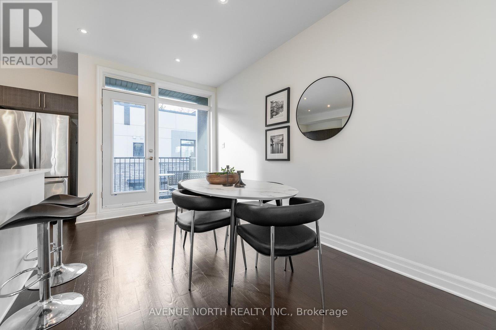 Modern 2015-built 3-bed, 4-bath semi in a prime location with quick highway access to downtown and many amenities. Freshly painted throughout, the main level features a tiled foyer, bedroom or home office, full bath, and access to the very oversized garage. Open-concept second level offers 9-ft ceilings, hardwood floors, pot lights, and large windows bringing in tons of natural light. Stylish kitchen with quartz counters, island, backsplash, stainless steel appliances, and access to a private balcony. Very spacious living and dining areas and a powder room complete the 2nd level. Upper level includes two bedrooms, each with an ensuite, plus convenient laundry. Basement offers plenty of storage. Walking distance to shops, schools, and transit.