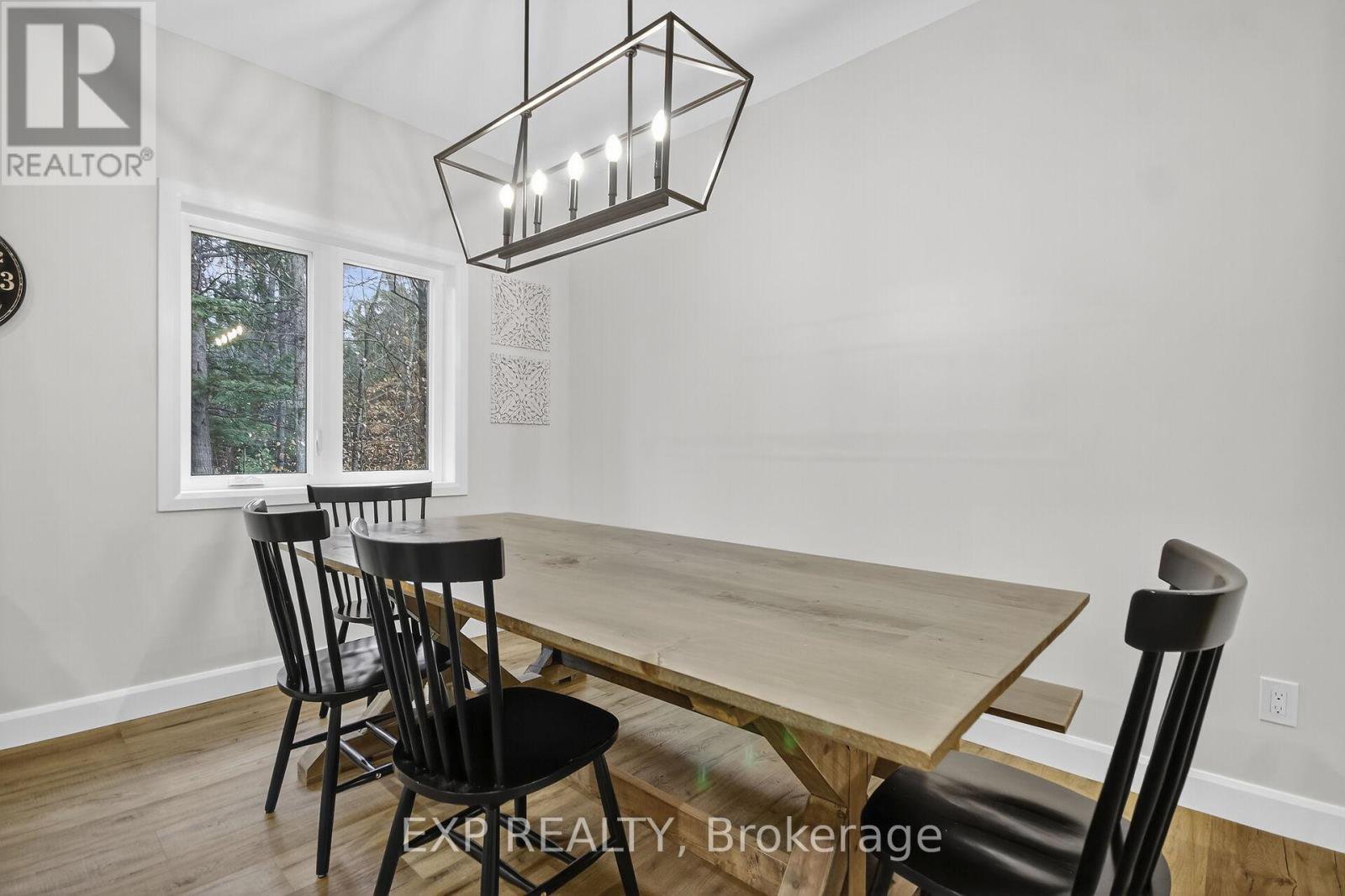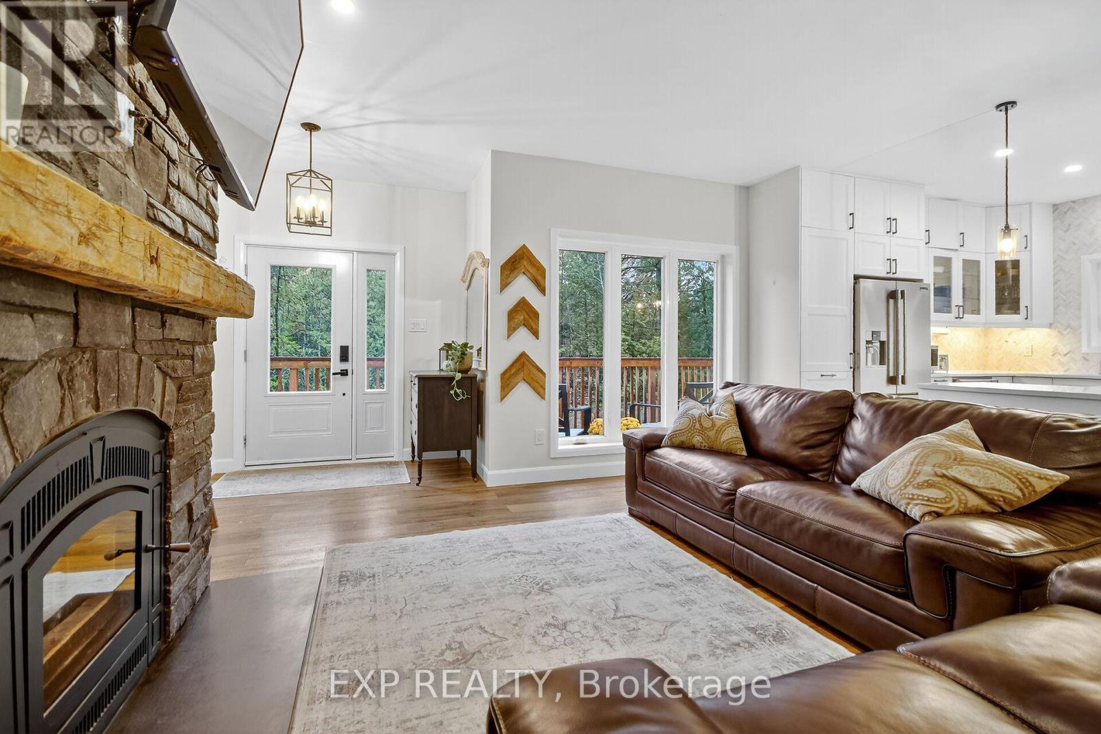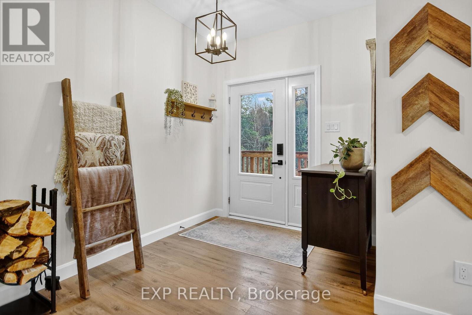 Welcome to 2989 Concession 3C! Where today's comfort meets peaceful country living. Picture-perfect 2021 custom-built bungalow sits on over 3 acres of scenic land, perfect for families seeking space, privacy, and a taste of the country lifestyle. With 3 bedrooms and 2 bathrooms, this home blends thoughtful design with quality craftsmanship. Step onto the inviting front porch, complete with soffit lighting and views of the side yard and raised garden beds. The open-concept living room features 9' ceilings, luxury vinyl plank flooring, and charming wood-burning fireplace that sets the tone for cozy winter evenings. U-shaped kitchen is both functional & elegant, offering ceiling-height cabinetry, quartz countertops, stainless steel appliances, and breakfast bar. Adjoining dining area makes family meals & entertaining effortless. Rustic sliding barn door leads to the private wing of the home, where you'll find two comfortable bedrooms for the kids, beautifully finished family bathroom with quartz composite vanity top & tub surround, and a generous primary suite complete with double closet, ensuite with double sinks, ceramic tile floors, & walk-in shower. Mudroom provides plenty of outdoor wear storage, & convenient access to the insulated, finished double-car garage. Mostly finished basement offers a versatile layout with a large laundry area, multi-purpose room for a bedroom or office or gym, and a spacious family/recreation area with walk-out access to the yard. Spray-foam insulation and drywall are complete - just add flooring and trim to finish your dream space. Outdoors, enjoy the best of rural living: a chicken coop and wood shed. Explore your own private trail through the trees. With school-bus pickup, mail delivery, roadside garbage collection, and Fibe internet available. Convenience meets tranquility. Only minutes to the Clayton General Store and just 15 minutes to Almonte, this property offers the perfect balance of rural serenity and everyday accessibility.