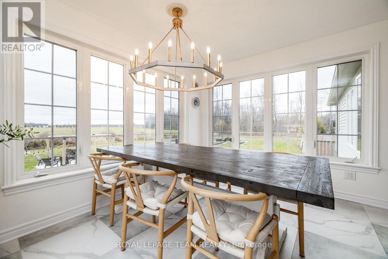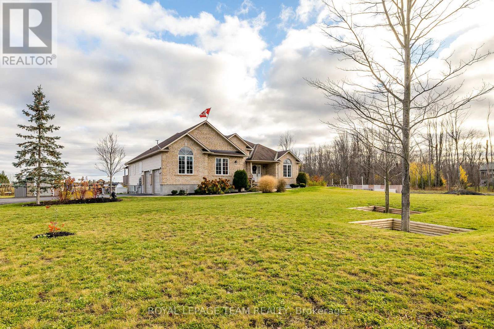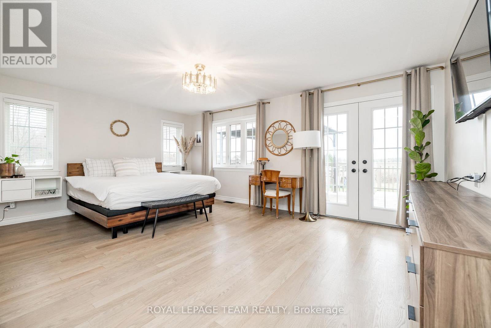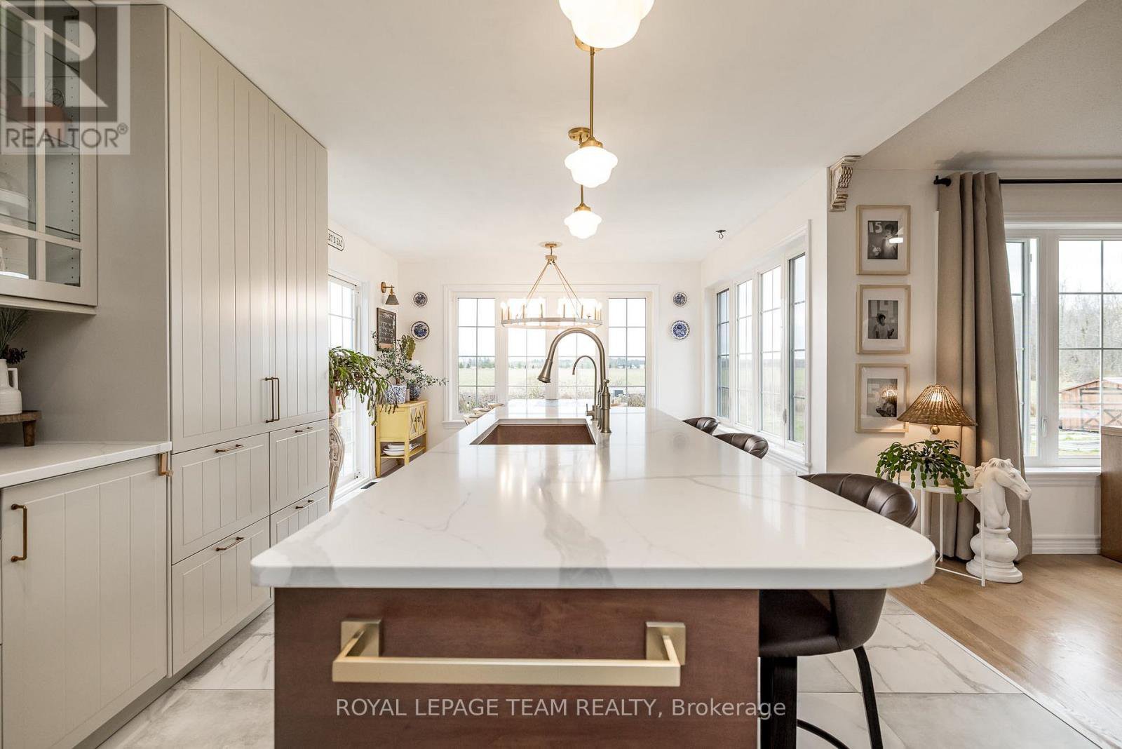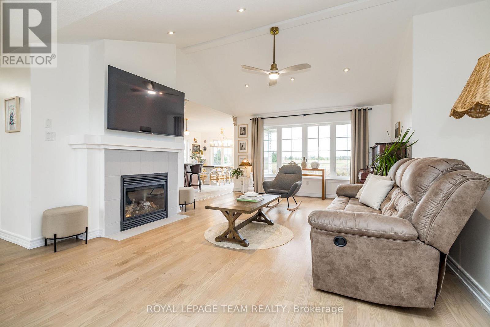 Country chic living at its finest. This custom-built 4-bed, 3-bath bungalow offers the perfect blend of modern comfort and rural charm, ideally located just minutes from the Village of Manotick & the Rideau River. Set on a picturesque, 2-acre lot with no rear neighbours, this property provides the privacy & serenity of country living with all the conveniences of the city close by. Step inside & experience a home that has been beautifully updated throughout. The main level features refinished hardwood floors & freshly painted spaces, creating a bright & inviting flow throughout. The fully renovated kitchen is truly the heart of the home, showcasing new cabinetry, large center island, designer hood fan, modern flooring, pot filler, tile backsplash, & premium stainless steel appliances. The main floor laundry room brings both charm & functionality to everyday living. The office is sure to impress with vaulted ceilings, custom built-ins, & a sleek electric fireplace. Both main-level baths have been thoughtfully refreshed The primary suite serves as a peaceful retreat with private access to the rear deck, a walk-in closet, & spa-inspired ensuite. Two additional beds & a full bath complete the main level. The fully finished lower level extends the living space beautifully, ideal for entertaining, guests, or multi-gen living. The spacious recreation room features a custom-built wet bar with built-ins & a wall unit, perfectly paired with a wood-burning fireplace that adds cozy ambiance year-round. You'll also find a fourth bedroom, full bathroom, den, & epoxy flooring in the storage areas for a polished, durable finish. Convenient direct access to the garage from the basement makes the space perfect for a workshop or secondary entry. Outside, enjoy peaceful views from the expansive deck overlooking open fields; an ideal backdrop for quiet mornings, family gatherings, or evening sunsets. With thoughtful renovations & elegant finishes, this move-in-ready property delivers!