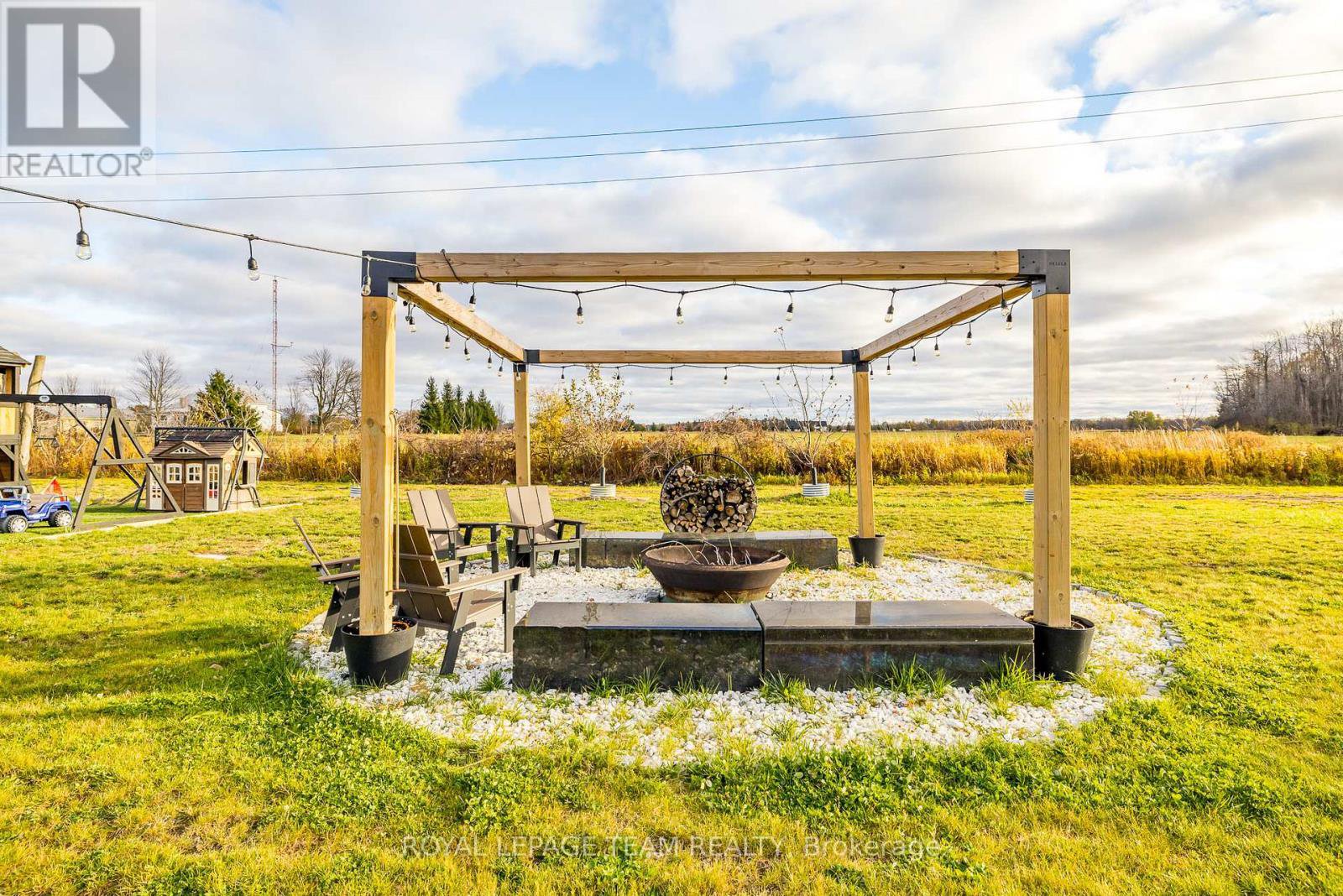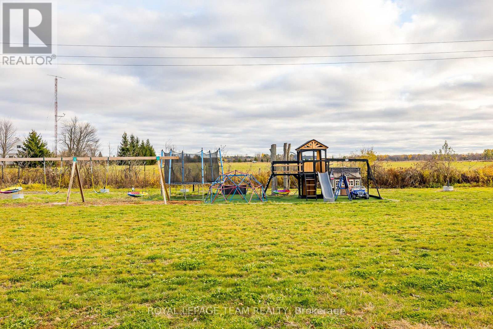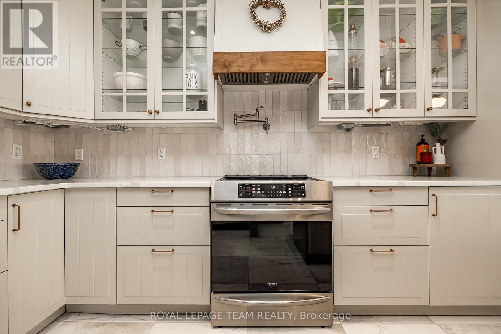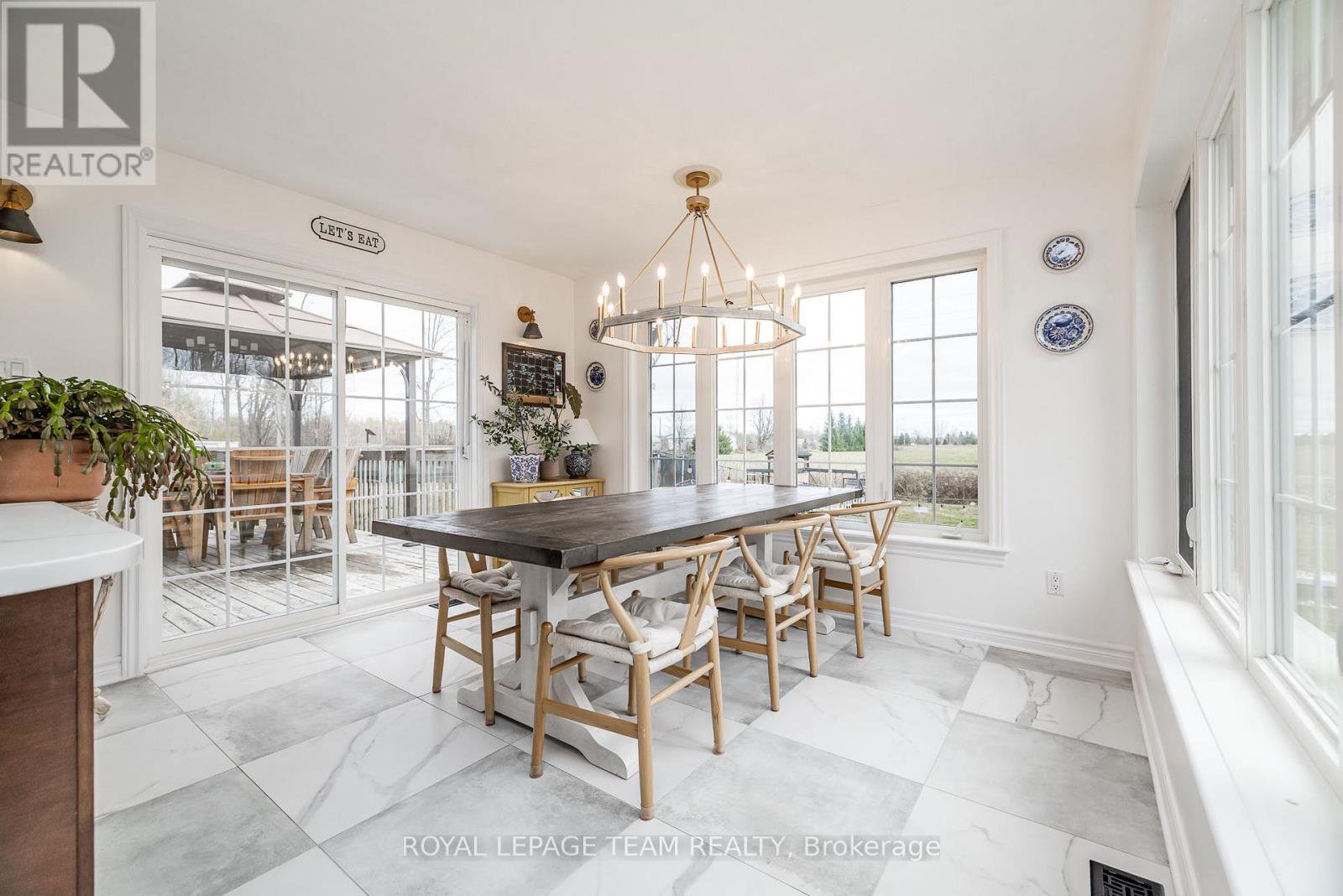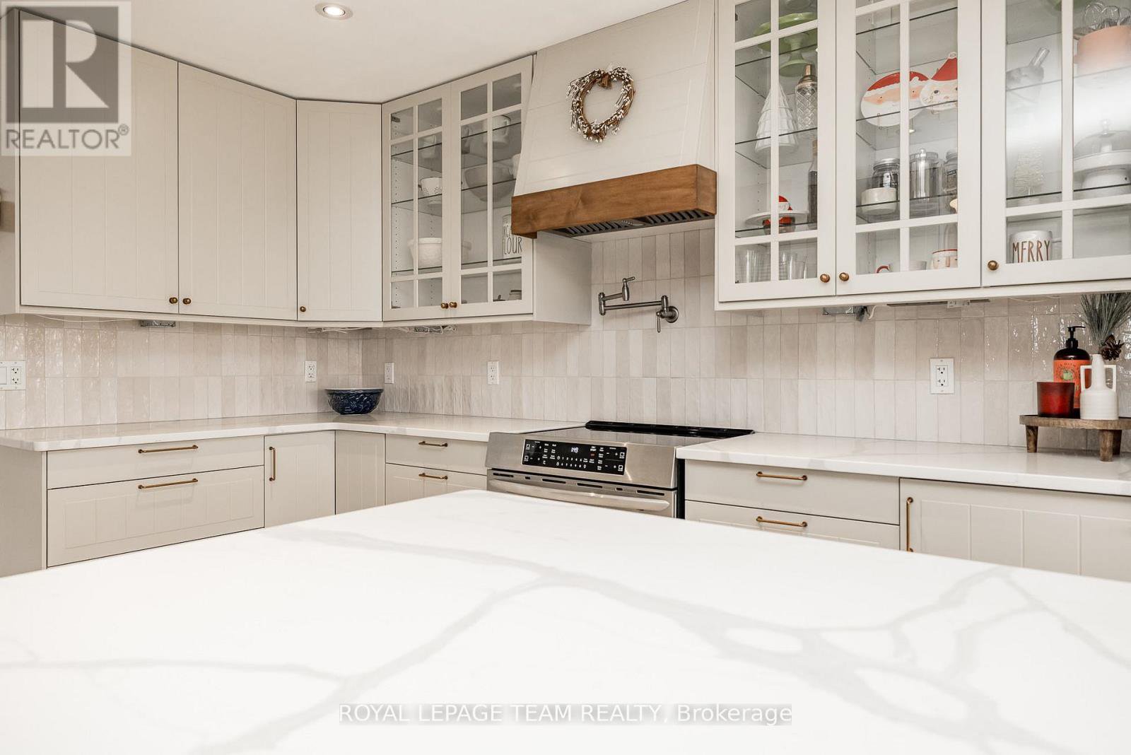 Country chic living at its finest. This custom-built 4-bed, 3-bath bungalow offers the perfect blend of modern comfort and rural charm, ideally located just minutes from the Village of Manotick & the Rideau River. Set on a picturesque, 2-acre lot with no rear neighbours, this property provides the privacy & serenity of country living with all the conveniences of the city close by. Step inside & experience a home that has been beautifully updated throughout. The main level features refinished hardwood floors & freshly painted spaces, creating a bright & inviting flow throughout. The fully renovated kitchen is truly the heart of the home, showcasing new cabinetry, large center island, designer hood fan, modern flooring, pot filler, tile backsplash, & premium stainless steel appliances. The main floor laundry room brings both charm & functionality to everyday living. The office is sure to impress with vaulted ceilings, custom built-ins, & a sleek electric fireplace. Both main-level baths have been thoughtfully refreshed The primary suite serves as a peaceful retreat with private access to the rear deck, a walk-in closet, & spa-inspired ensuite. Two additional beds & a full bath complete the main level. The fully finished lower level extends the living space beautifully, ideal for entertaining, guests, or multi-gen living. The spacious recreation room features a custom-built wet bar with built-ins & a wall unit, perfectly paired with a wood-burning fireplace that adds cozy ambiance year-round. You'll also find a fourth bedroom, full bathroom, den, & epoxy flooring in the storage areas for a polished, durable finish. Convenient direct access to the garage from the basement makes the space perfect for a workshop or secondary entry. Outside, enjoy peaceful views from the expansive deck overlooking open fields; an ideal backdrop for quiet mornings, family gatherings, or evening sunsets. With thoughtful renovations & elegant finishes, this move-in-ready property delivers!