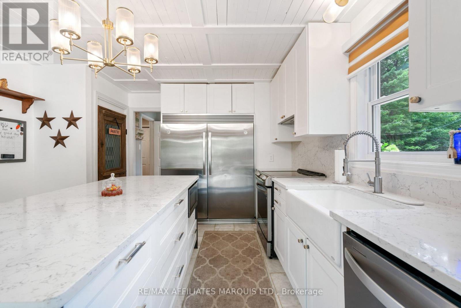 Charming country retreat is Move-In Ready! Nestled on approximately 8 acres in South Glengarry along County Road 18, this beautifully updated 3-bedroom home offers the perfect blend of rustic charm and modern upgrades. Surrounded by trees and nature, its a private retreat you'll love to call home. Step inside to find a welcoming layout featuring hardwood floors, vaulted ceilings, and a stunning double-sided fireplace shared by the den and living room where cozy meets elegant. The remodelled kitchen boasts quartz countertops and backsplash, a large island, and flows seamlessly into the dining area. A main floor bedroom, 4-piece bath, and convenient laundry room complete the first level. Upstairs, the primary suite with walk-in closet, an additional bedroom, and a renovated 4-piece bathroom await. The lower level provides ample storage, a dedicated gamers room (or fourth bedroom) and a custom wine cellar for the wine/scotch enthusiast. Recent Upgrades Include: new roof (2021), kitchen renovation with quartz counters, backsplash & island; refinished hardwood floors; new windows, doors & garage doors (includes attached garage and garage doors on driving shed); upstairs bathroom renovation; and a fence that encloses the home and pool area all in 2023. A new hot water tank was installed in 2024. Outside, enjoy summer days by the freeform in-ground heated pool with a charming pool shed and gardens. A wraparound veranda invites relaxation, while the attached double garage has 30 and 50 amp charging stations and the large driving shed provide space for all your needs, whether it is gathering eggs from the chicken coup, tinkering on your recreational toys or simply the need additional storage. This property truly has it all privacy, beauty, and thoughtful upgrades. If you are looking for a small hobby farm, a space for outdoor gardening or simply a quaint country retreat in South Glengarry, call us and we will show you around!