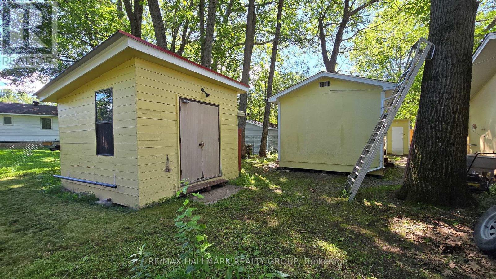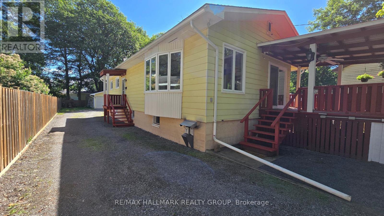 Nestled on a quiet street, this absolutely, delightful 2 Bedroom, 1.5 Bath Bungalow is situated on a beautiful 42 x 219 lot just steps from Augers Beach & Torbolton Forest trails! The property features a detached 20 x 24 garage, 16 x 12 detached workshop & a 12 x 13 shed all with electricity ideal for hobbyists. Relax on the covered front porch that wraps around to another side deck with a ramp to the front yard plus steps down to access the back yard. Enjoy exceptional privacy with generous yard space and a pretty back patio creating the perfect outdoor sanctuary. Inside, this deceivingly spacious & charming home is a great layout complete with easy care laminate flooring on the main level. The Living Room has patio doors to the inviting covered deck plus a stunning bow window fills the space with natural light. The well-equipped kitchen spoils the cook with lots of cupboard and counter space and overlooks the Living Room with a handy pass through to the Dining Room. The 3 piece bath has a walk-in shower with built-in bench and a handy laundry area with stackable wash & dryer so all your needs are on the main level. Both, the Primary & Second Bedrooms are large having closets equipped with lighting. The Basement has a separate access to the backyard, a Napolean natural gas fireplace, a 2 piece bathroom, storage room, another laundry area plus a cedar closet. Updated with vinyl windows on main level & the patio door has built-in blinds. Natural gas furnace & hot water tank 2014 approx. House & roof shingles approx. 9 years old. Note this home is equipped with a Generac & central air. Come take a look at this truly incredible home & property! $$$$ Basement waterproofing work completed September 2025 with new weeping tile & sump pump system.
