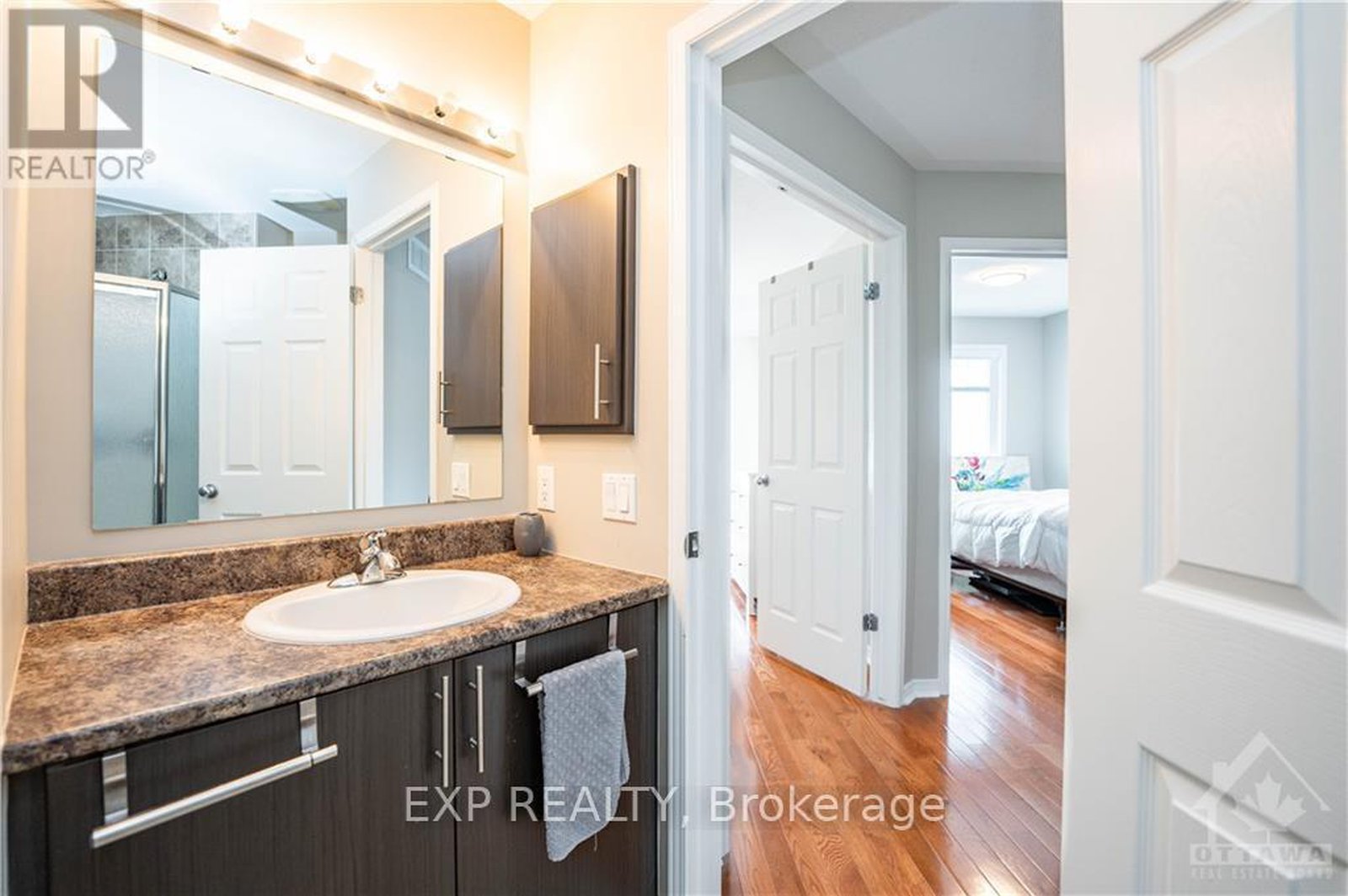 Welcome to this charming Eastboro Village home featuring 2 bedrooms plus a den and 1.5 baths! Step into a spacious foyer with direct garage access, ceramic tile flooring, a convenient powder room, a double closet, and a versatile den - perfect for a home office or reading nook. The second level offers an inviting open-concept layout with hardwood floors, a modern kitchen boasting ample cabinetry, and a bright living/dining area with walk-out access to a private balcony. Upstairs, you'll find a spacious primary suite with a walk-in closet and access to a second balcony, a luxurious main bath with a soaker tub and separate shower, and a generously sized second bedroom. Enjoy comfort, style, and functionality in a desirable community close to parks and schools.
