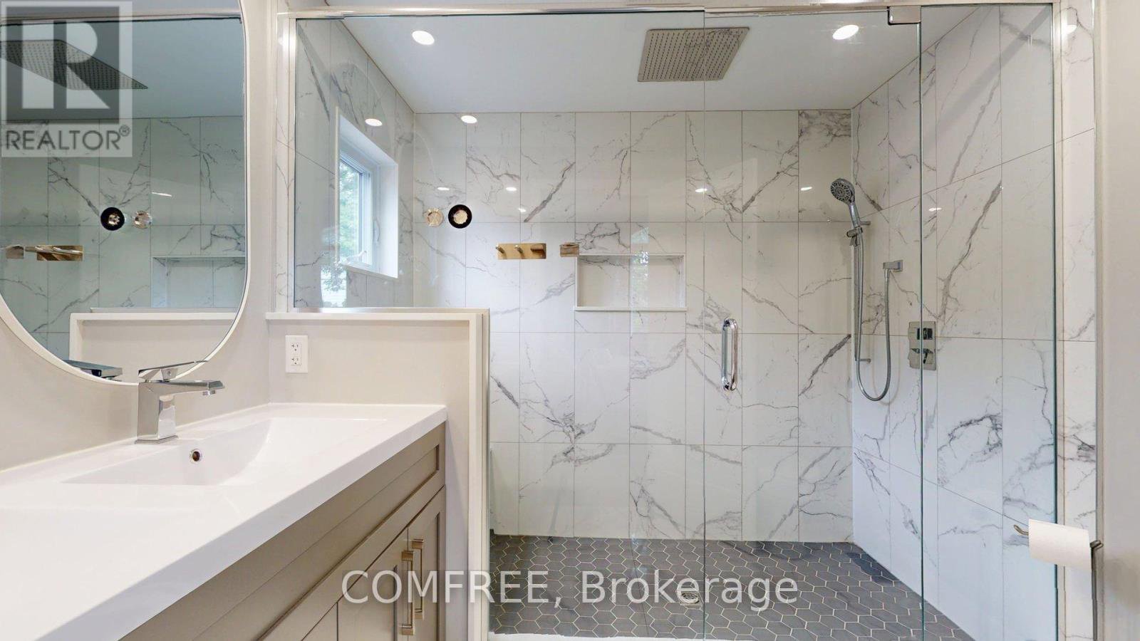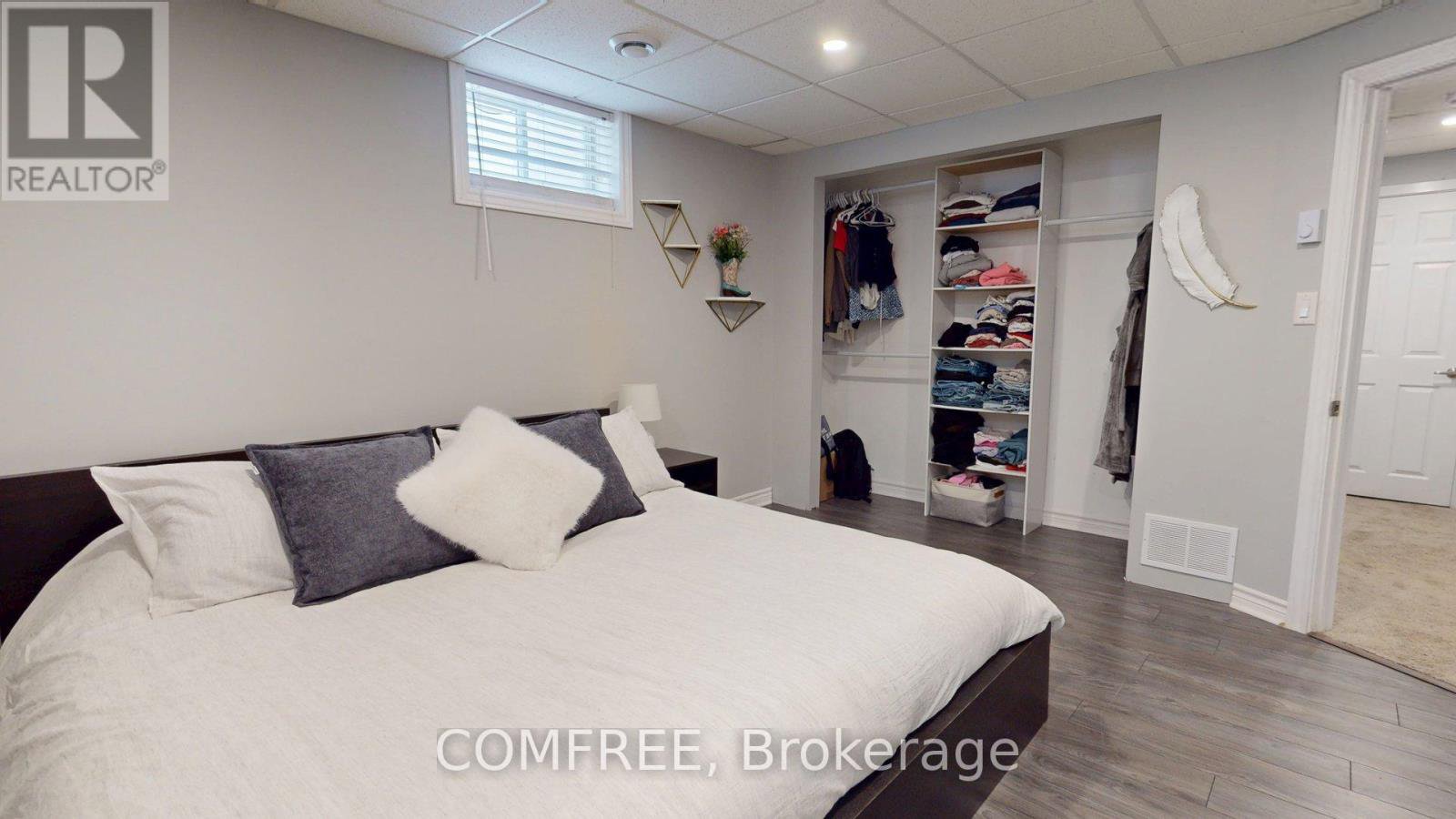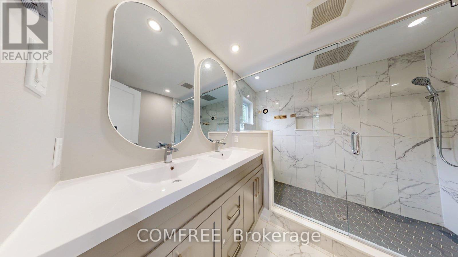 Beautifully renovated 2-storey home offering 2700 sq. ft. of living space, featuring 3+2 bedrooms and 4 bathrooms. Extensive renovations completed in 2021 showcase high-end, modern finishes throughout. The bright and inviting main floor is filled with natural light from large windows overlooking a landscaped backyard and spacious deck (2020). The kitchen boasts a quartz countertop, ample cabinetry, and contemporary fixtures, while the adjacent dining area and generous den provide flexibility for work or leisure. Upstairs, the primary bedroom impresses with a vaulted ceiling, a luxurious ensuite with a double-sink vanity, a large glass-enclosed shower, and a walk-in closet. Two additional bedrooms, sitting/flex area and a full bathroom complete the upper level. The fully finished basement offers a large family room, two additional bedrooms, and a full bathroom ideal for guests, extended family, or recreational use. The insulated and heated double garage adds year-round convenience. Recent updates include roof (2019), main bathroom (2025), and heat pump (2024). Situated on a quiet crescent with no rear neighbours, this property provides a private, treed low maintenance backyard oasis including a raised garden bed area, with a huge deck great for entertaining with room for sitting/lounging and a swim spa area next to the spacious gazebo, while being close to parks, public transit, and shopping.