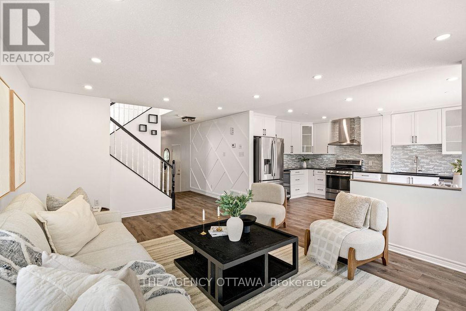 Welcome to 70 Appledale Drive, a beautifully renovated end-unit townhome in the heart of Barrhaven, just five minutes from Marketplace. This meticulously redesigned home offers approximately 2,000 sq.ft. of stylish living space, featuring a modern kitchen with sleek quartz countertops, generous cabinetry, and stainless steel appliances, along with renovated bathrooms and new flooring throughout. The fully finished basement provides incredible versatility with a spacious rec room, second kitchen, laundry area, and ample storage ideal for extended family or guests. Enjoy a private, low-maintenance backyard with artificial grass, a deck, and mature plum, cherry, and apple trees a rare urban oasis. Additional highlights include California shutters, a leased HVAC system (2015), kitchen roof (2020), and full roof (2014). The main level boasts an open-concept layout perfect for entertaining, a den/home office (or potential fourth bedroom), and a convenient powder room, while upstairs offers a spacious primary suite with walk-in closet and ensuite, three additional bedrooms, and a full bathroom. All appliances are included. Steps from top-rated schools, parks, shopping, transit, and right across from Metro on Strandherd the perfect blend of comfort, style, and convenience awaits you here!