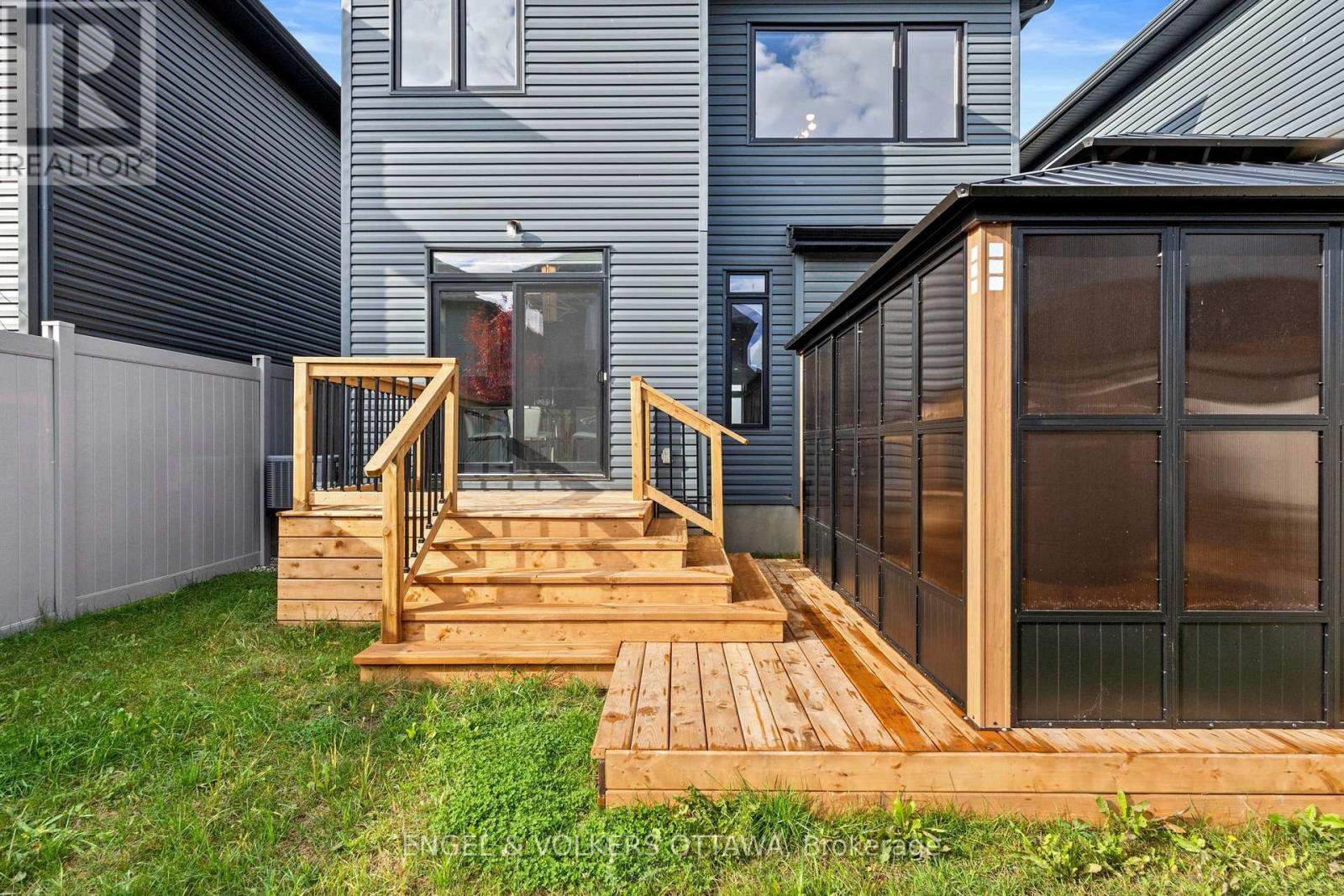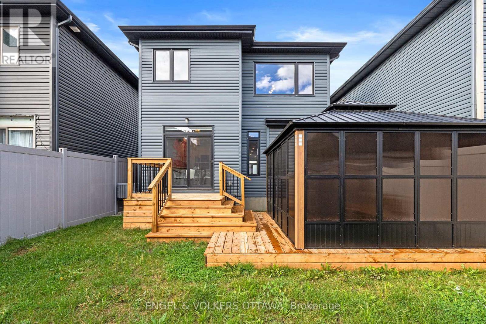 Welcome to this stunning single-family home nestled in the heart of Riverside South! This upgraded Claridge Dante model features 4 bedrooms and 3 bathrooms with elegant finishes and modern touches throughout.The main floor offers an open-concept layout with a chef-inspired kitchen showcasing quartz countertops, high-end stainless steel appliances, a built-in oven, cooktop stove, oversized island, and ample soft-close cabinetry complemented by a quartz backsplash. The bright and spacious living area features 9-ft ceilings, pot lights, and hardwood flooring throughout, creating a warm and inviting space for family and entertaining.The second floor continues with hardwood flooring and includes a grand primary suite complete with a 4-piece ensuite, dual vanity, and walk-in closet. Three additional well-sized bedrooms, a full bath, and convenient upstairs laundry complete the level.The fully finished basement offers generous space for a family recreation area, home gym, or playroom. Step outside to enjoy your beautiful backyard, featuring a deck and gazebo, perfect for outdoor relaxation and entertaining.Located in a sought-after community close to parks, schools, and amenities this home perfectly blends style, comfort, and functionality.