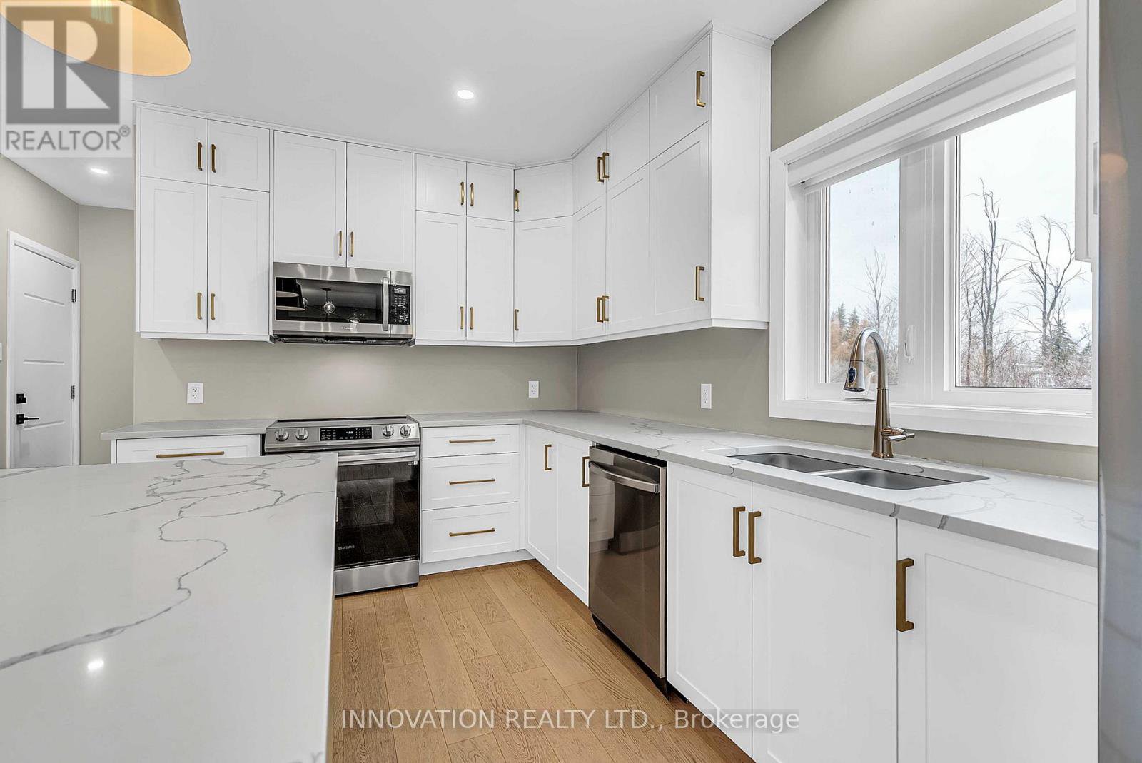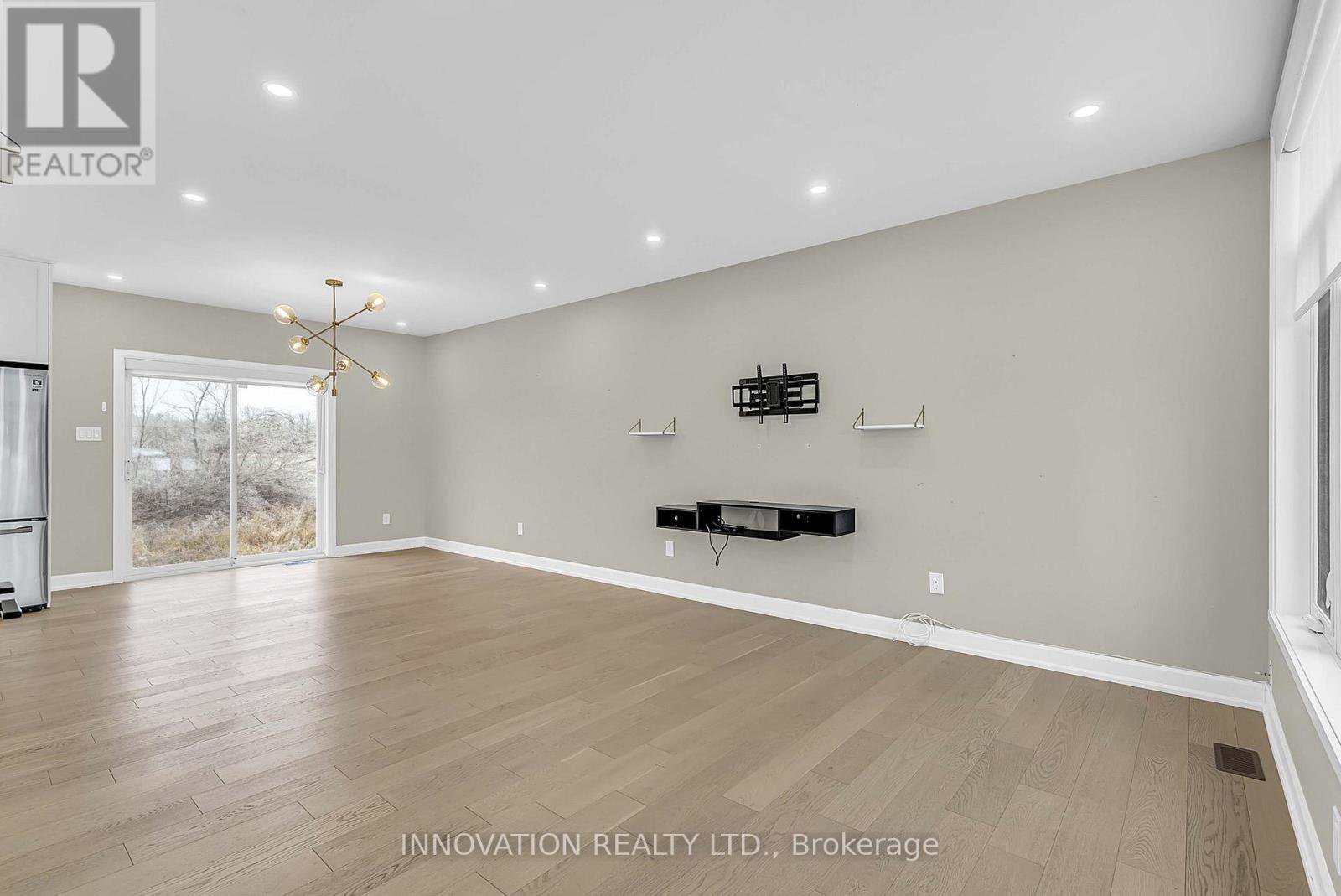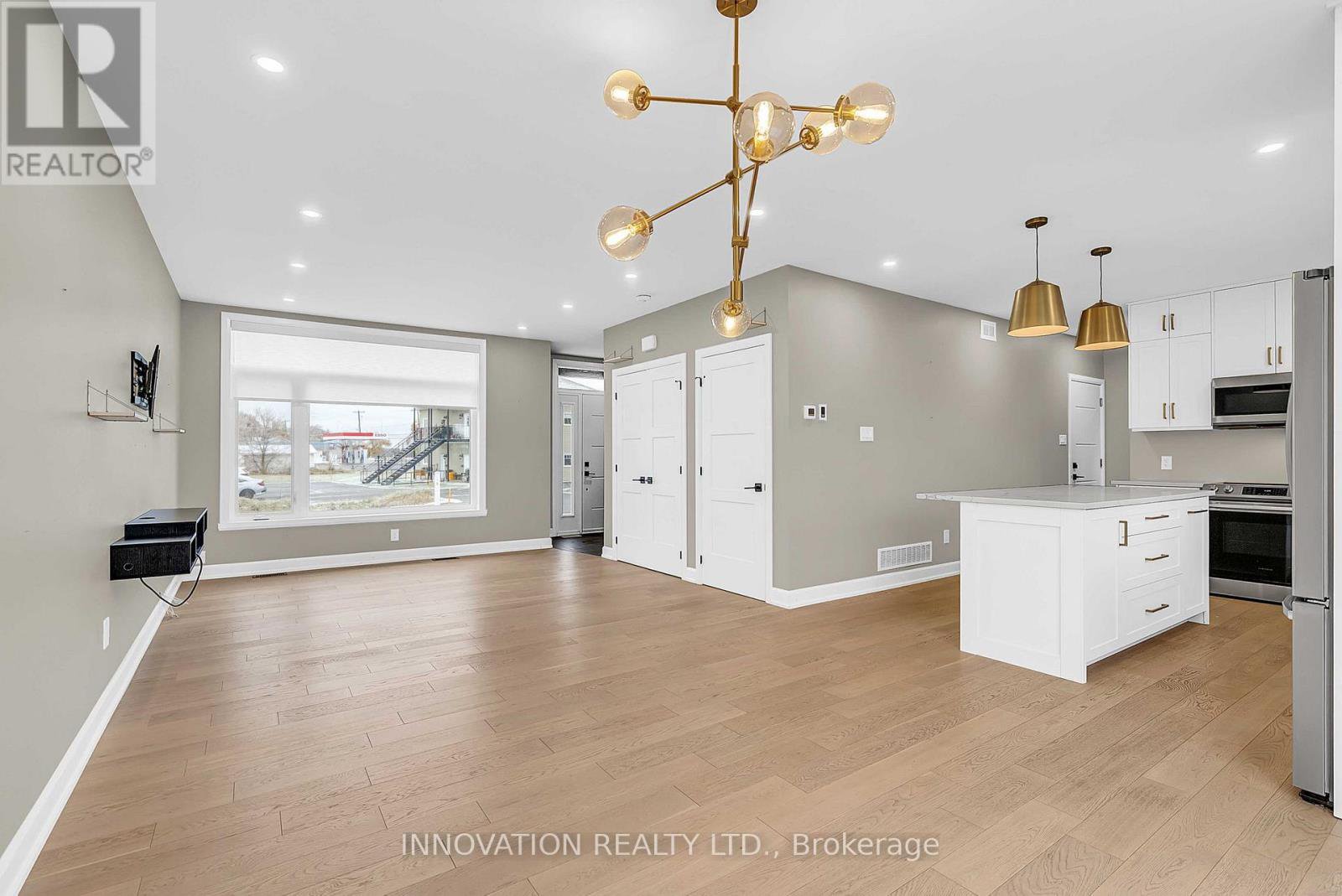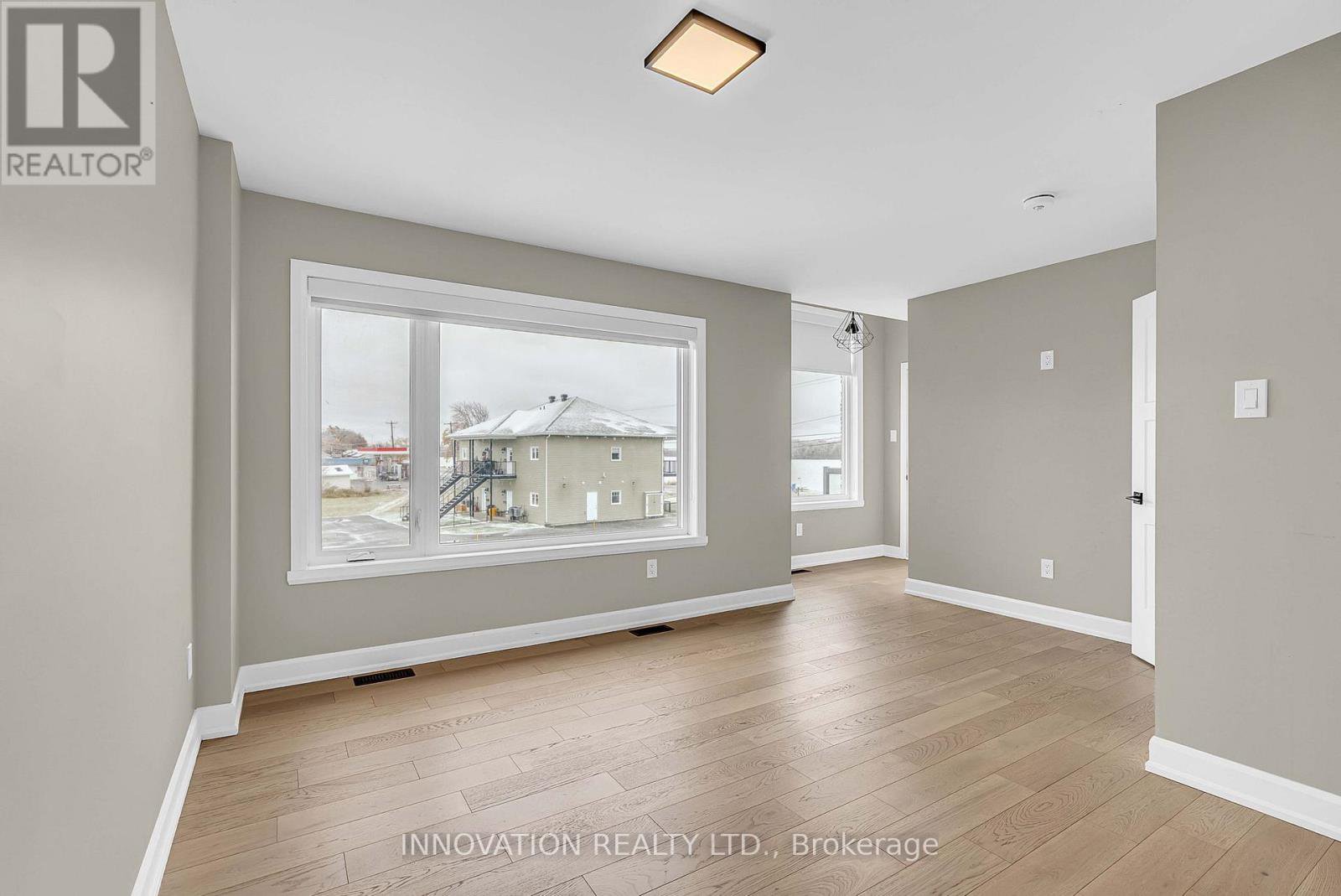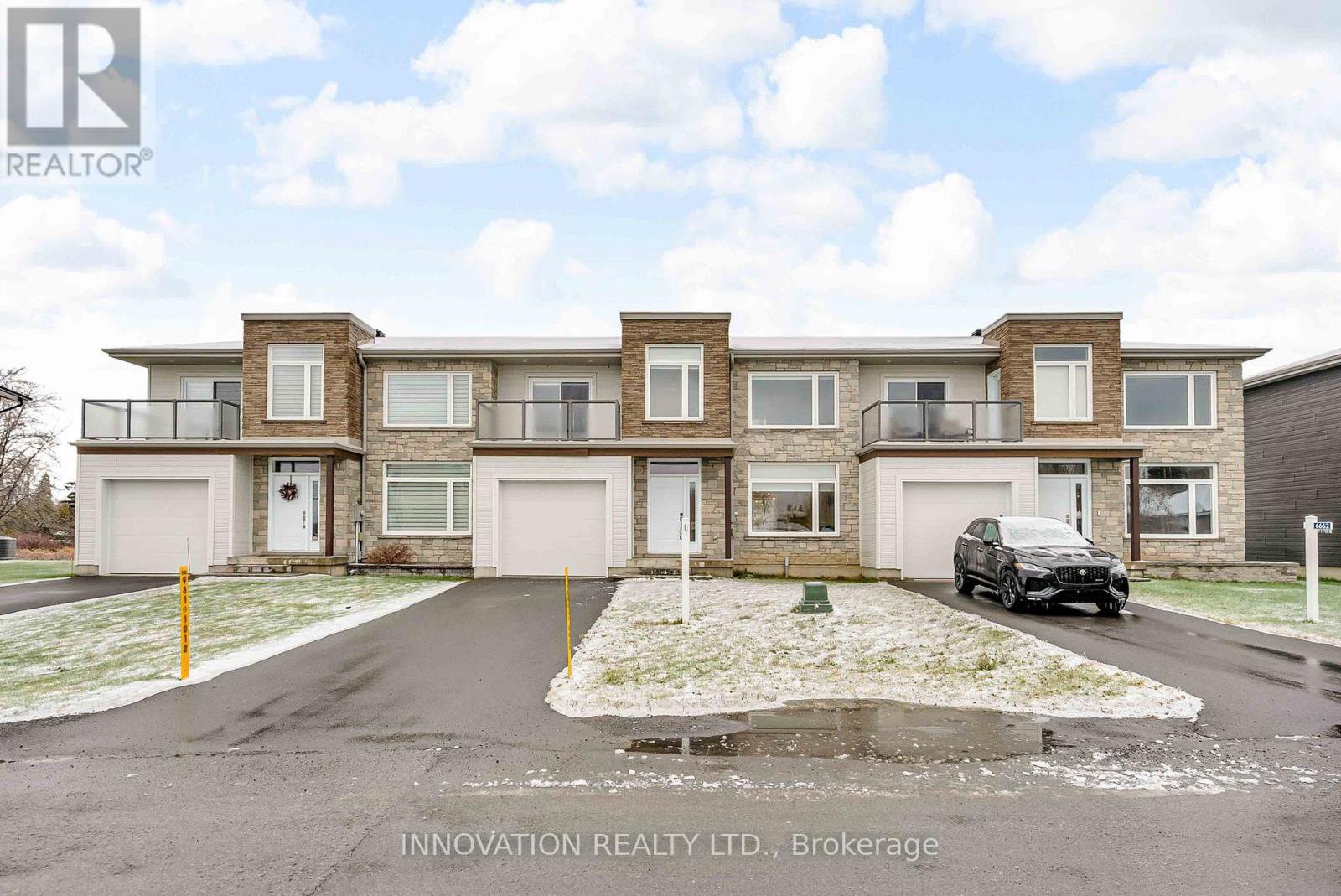 Welcome to this fabulous modern townhome in Glen Walter with amazing water views and no rear neighbours. The bright and open concept main floor is flooded with natural light. Gorgeous white oak flooring throughout main and second levels. The modern kitchen offers a lot of workspace and storage space, quartz counters, stainless steel appliances and a large island with plenty of seating. Patio doors off the dining area lead to the ideal spot for backyard BBQ's and entertaining. Upstairs the spacious 2nd floor boasts three generously sized bedrooms, including a primary suite with a walk-in closet and 4pc ensuite, plus a 4 piece family bath -- all with quartz counters. The 2nd floor balcony is accessible from both the primary suite and one other bedroom and offers breathtaking views of the St Lawrence River! Second floor laundry features a modern washer/dryer tower combo. Fully finished lower level features a large family room with luxury vinyl flooring and full bath. Close to amenities, golf course, playground & schools. 1hr to Montreal or Ottawa. Prepaid snow contract in place for the season with Cornwall Snow.