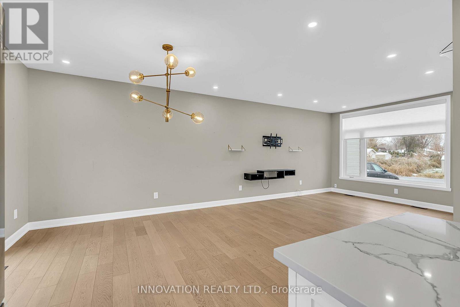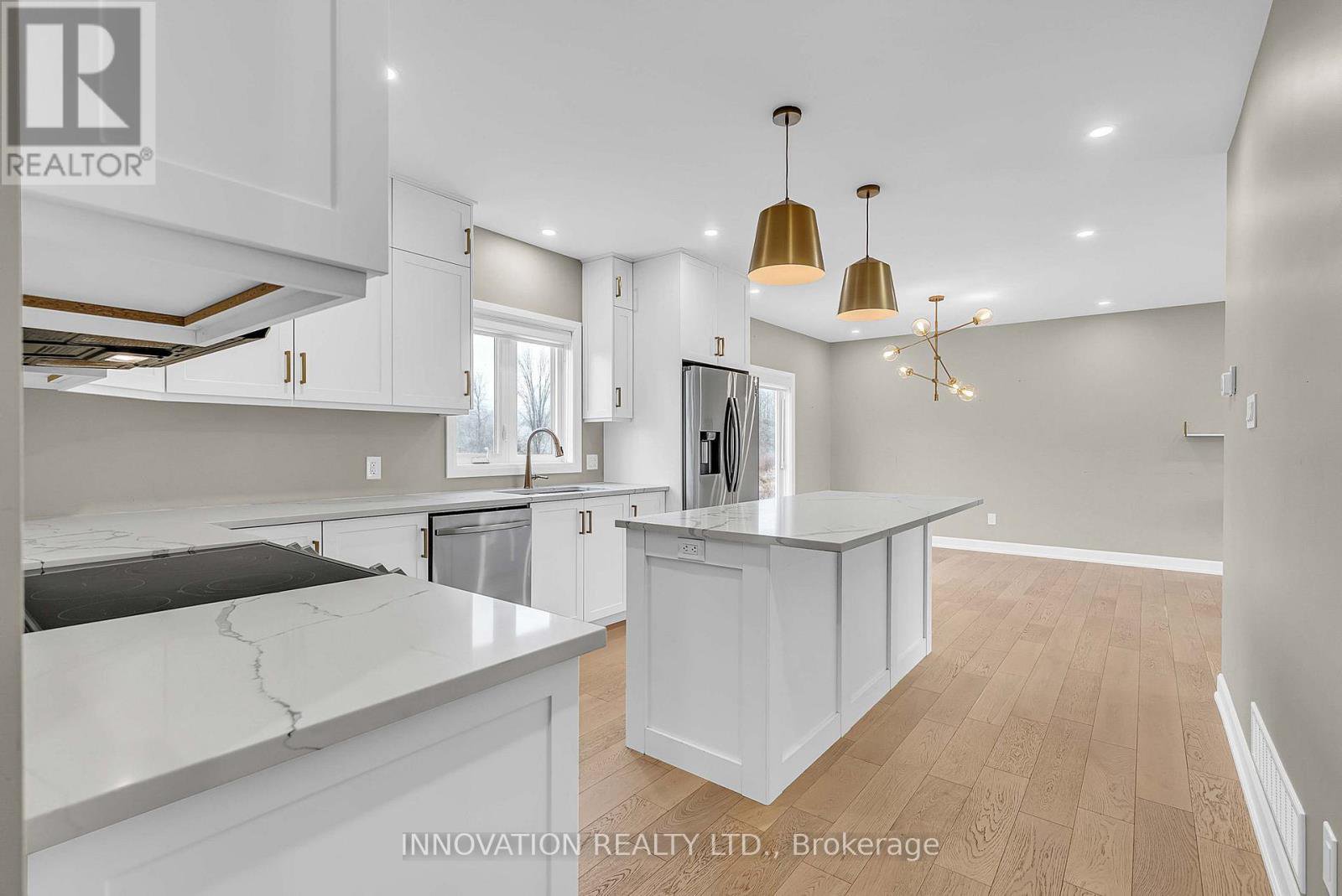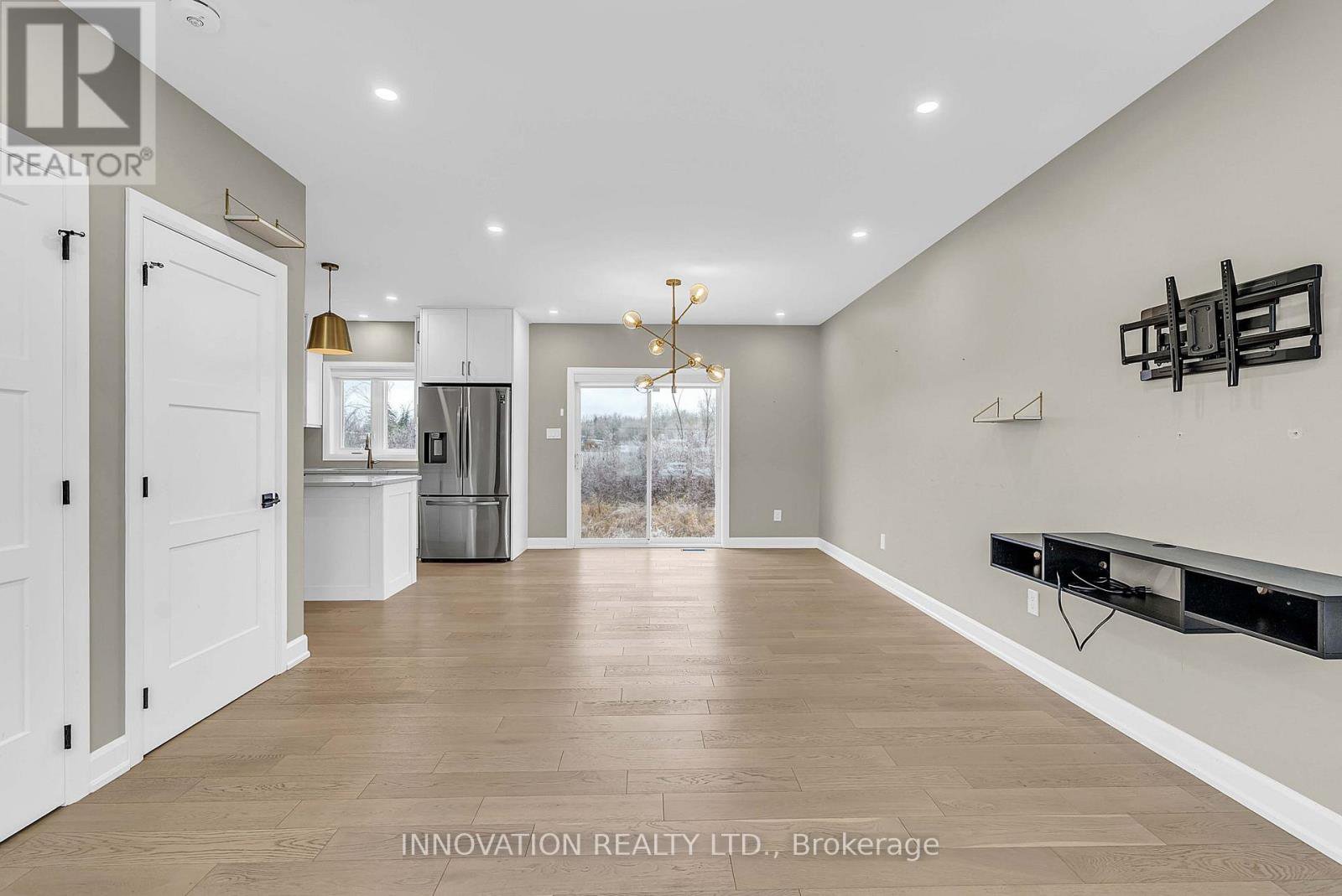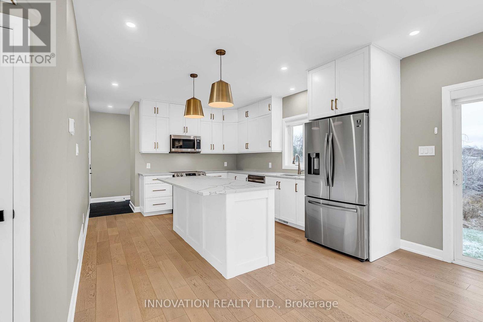 Welcome to this fabulous modern townhome in Glen Walter with amazing water views and no rear neighbours. The bright and open concept main floor is flooded with natural light. Gorgeous white oak flooring throughout main and second levels. The modern kitchen offers a lot of workspace and storage space, quartz counters, stainless steel appliances and a large island with plenty of seating. Patio doors off the dining area lead to the ideal spot for backyard BBQ's and entertaining. Upstairs the spacious 2nd floor boasts three generously sized bedrooms, including a primary suite with a walk-in closet and 4pc ensuite, plus a 4 piece family bath -- all with quartz counters. The 2nd floor balcony is accessible from both the primary suite and one other bedroom and offers breathtaking views of the St Lawrence River! Second floor laundry features a modern washer/dryer tower combo. Fully finished lower level features a large family room with luxury vinyl flooring and full bath. Close to amenities, golf course, playground & schools. 1hr to Montreal or Ottawa. Prepaid snow contract in place for the season with Cornwall Snow.