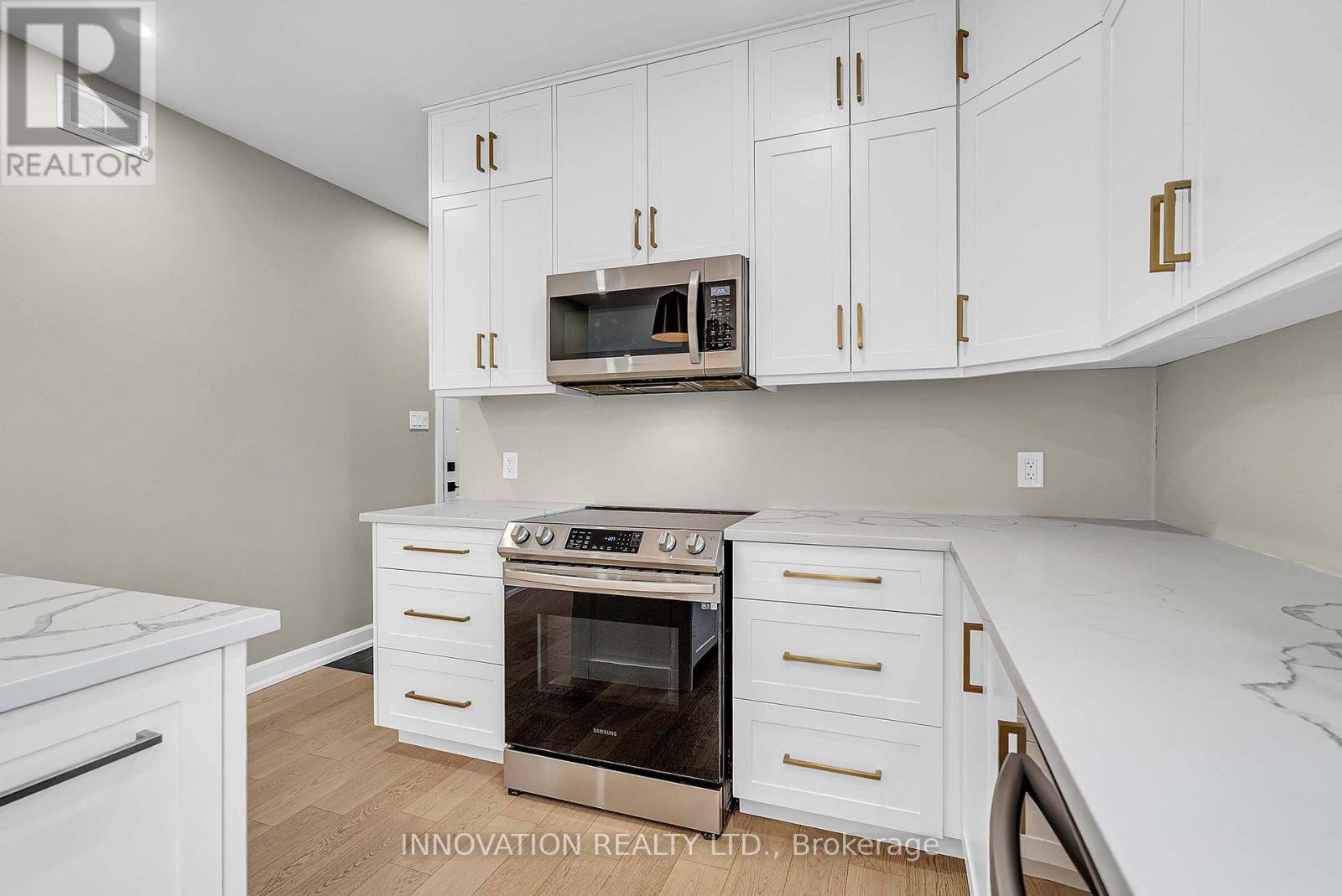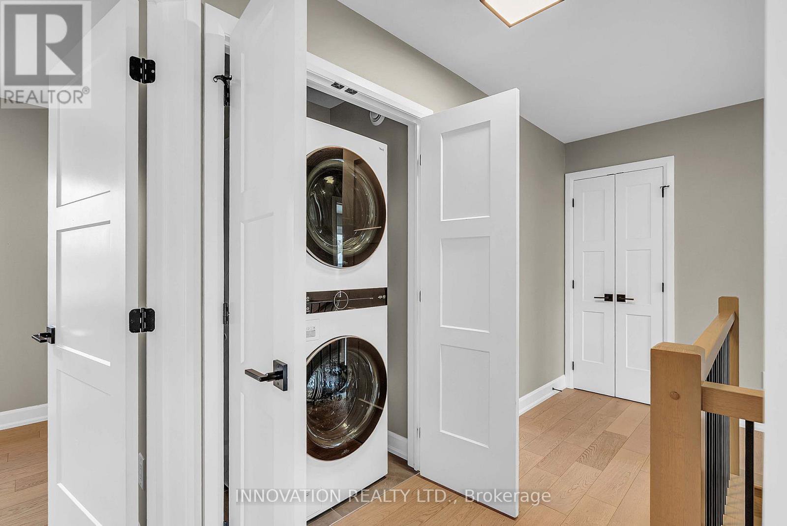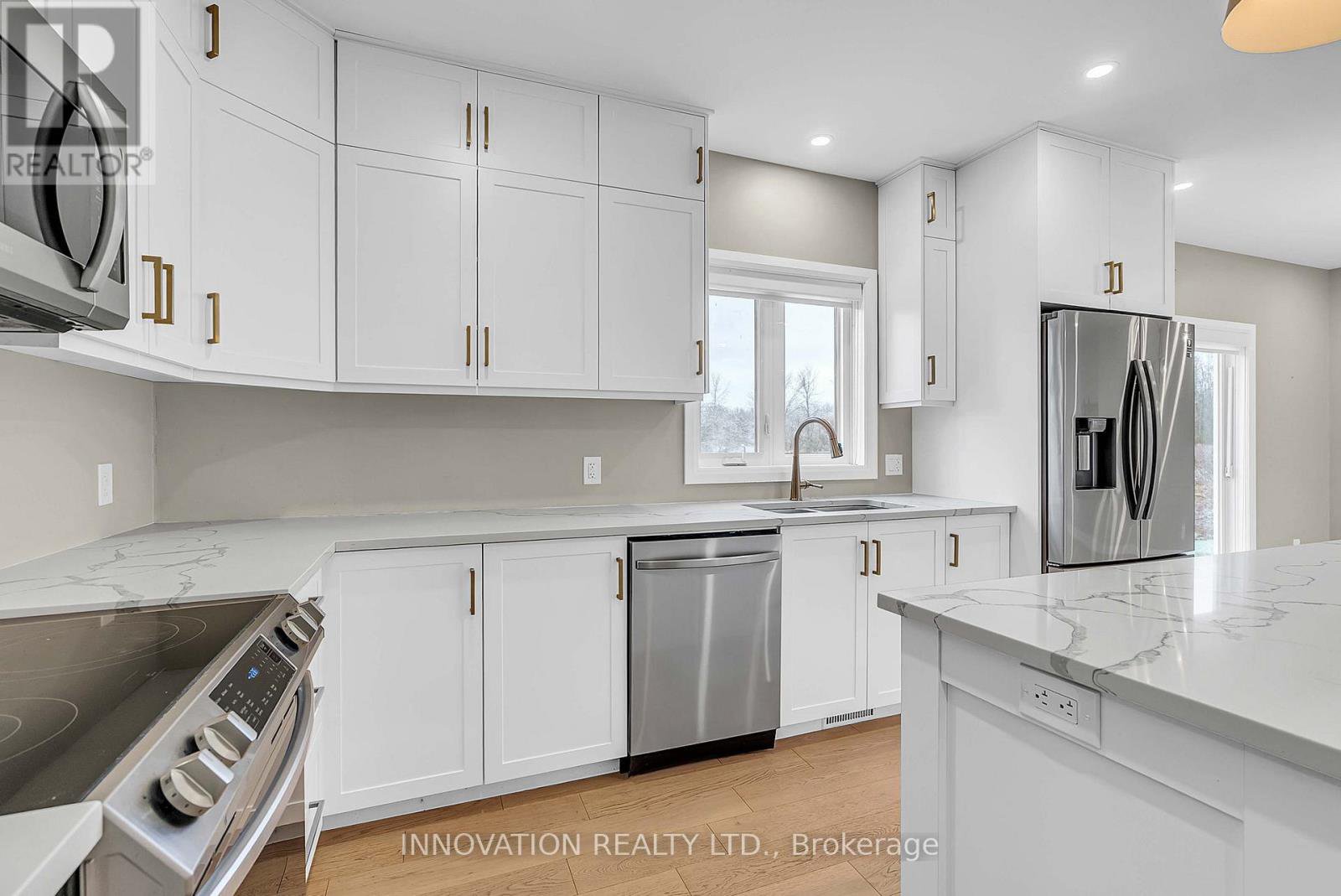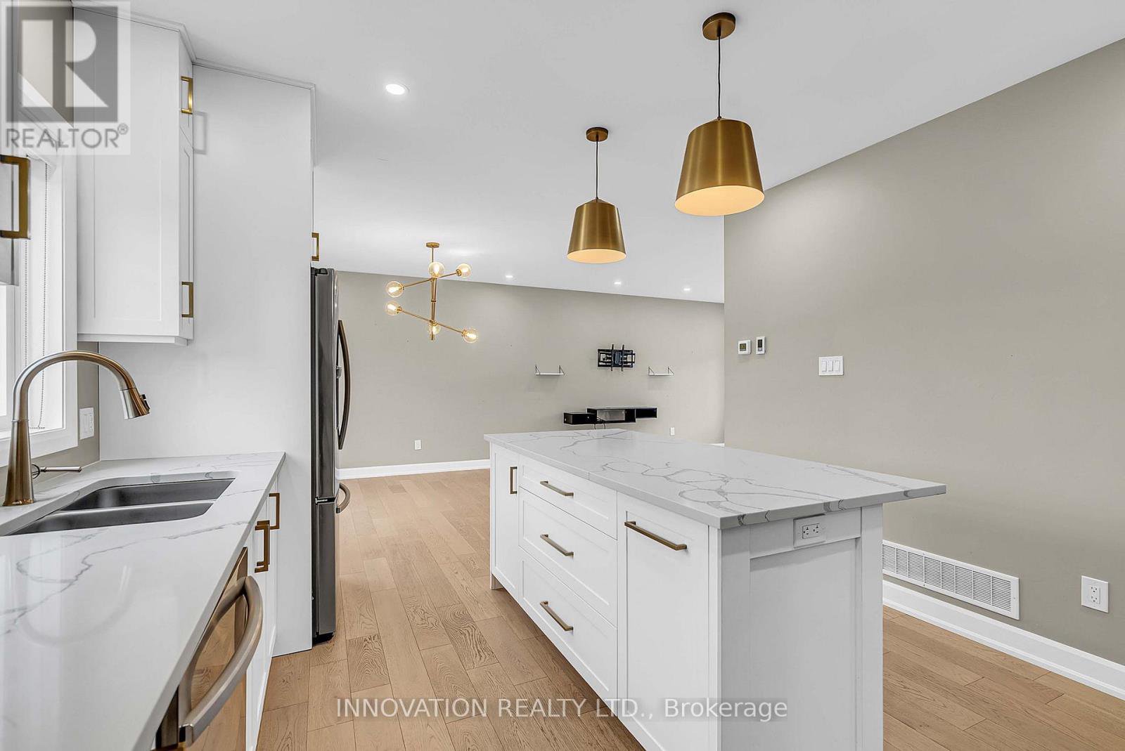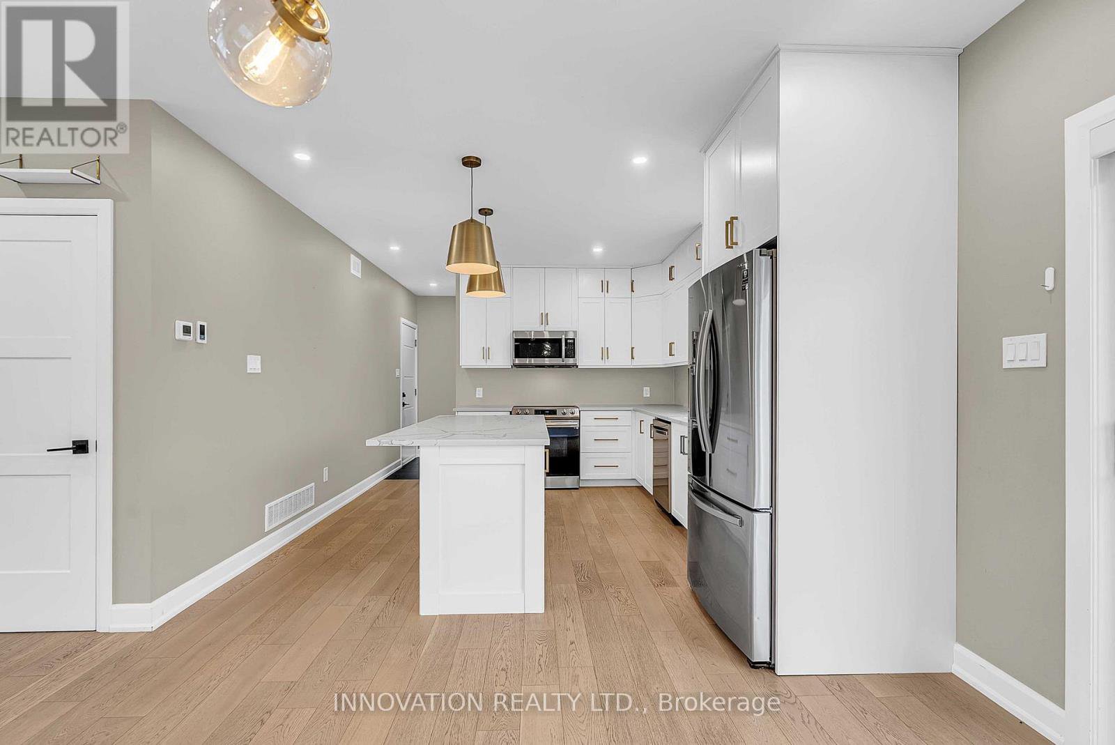 Welcome to this fabulous modern townhome in Glen Walter with amazing water views and no rear neighbours. The bright and open concept main floor is flooded with natural light. Gorgeous white oak flooring throughout main and second levels. The modern kitchen offers a lot of workspace and storage space, quartz counters, stainless steel appliances and a large island with plenty of seating. Patio doors off the dining area lead to the ideal spot for backyard BBQ's and entertaining. Upstairs the spacious 2nd floor boasts three generously sized bedrooms, including a primary suite with a walk-in closet and 4pc ensuite, plus a 4 piece family bath -- all with quartz counters. The 2nd floor balcony is accessible from both the primary suite and one other bedroom and offers breathtaking views of the St Lawrence River! Second floor laundry features a modern washer/dryer tower combo. Fully finished lower level features a large family room with luxury vinyl flooring and full bath. Close to amenities, golf course, playground & schools. 1hr to Montreal or Ottawa. Prepaid snow contract in place for the season with Cornwall Snow.
