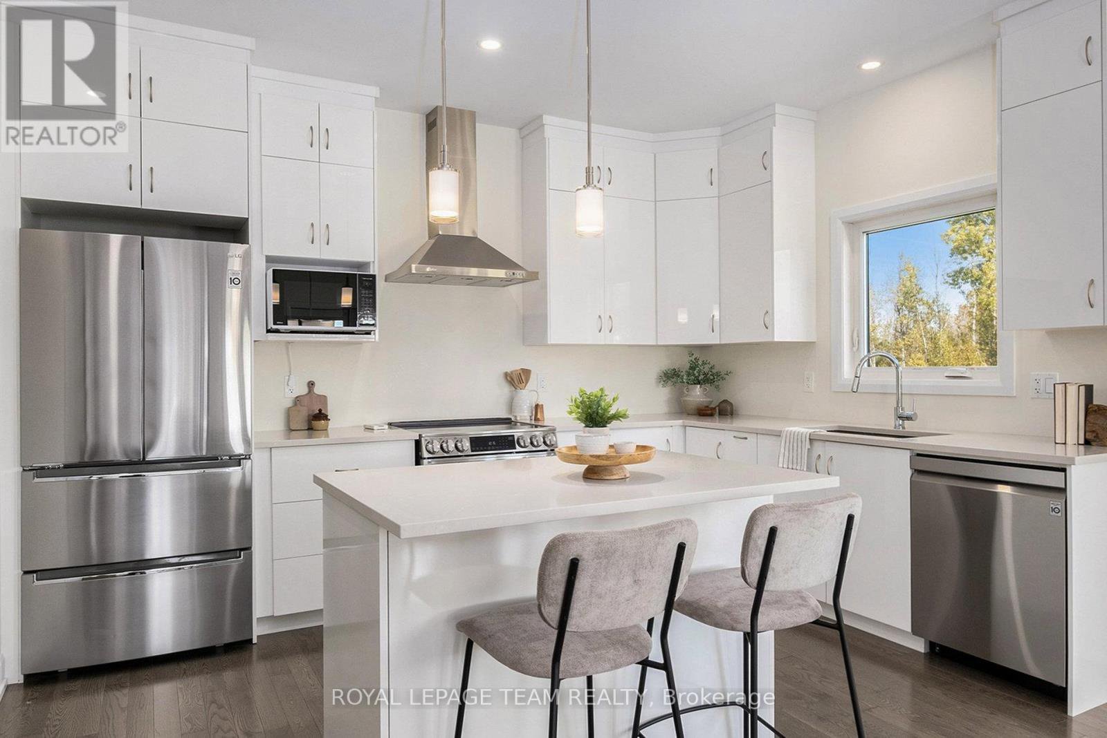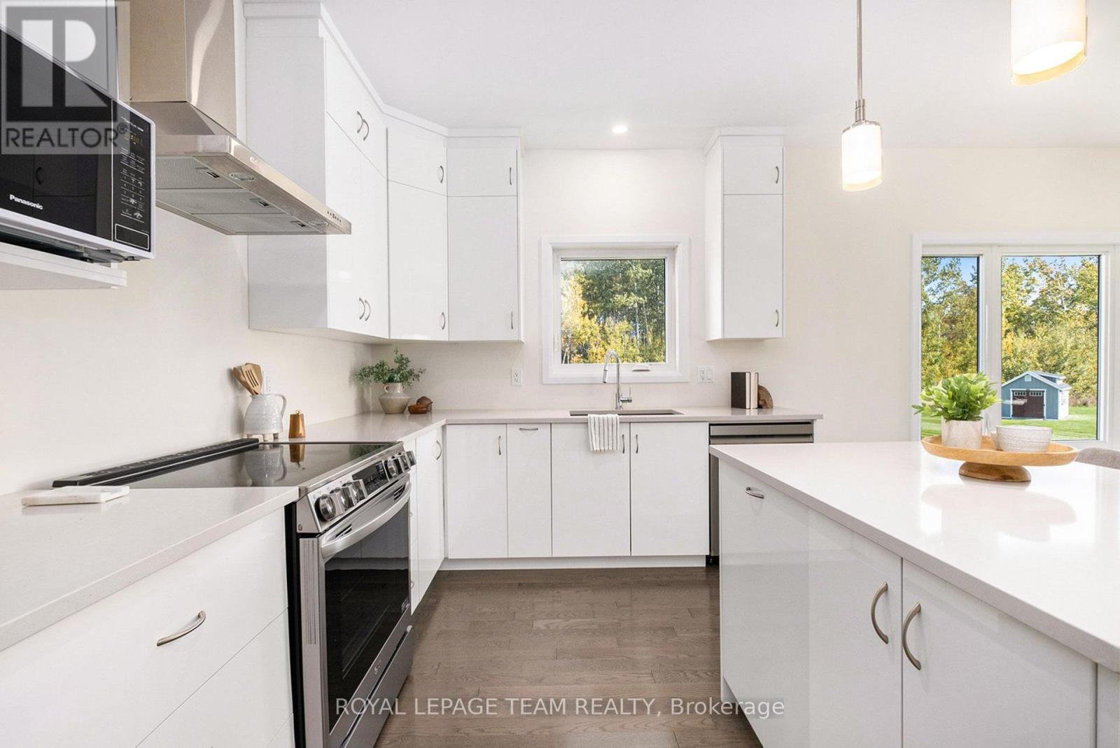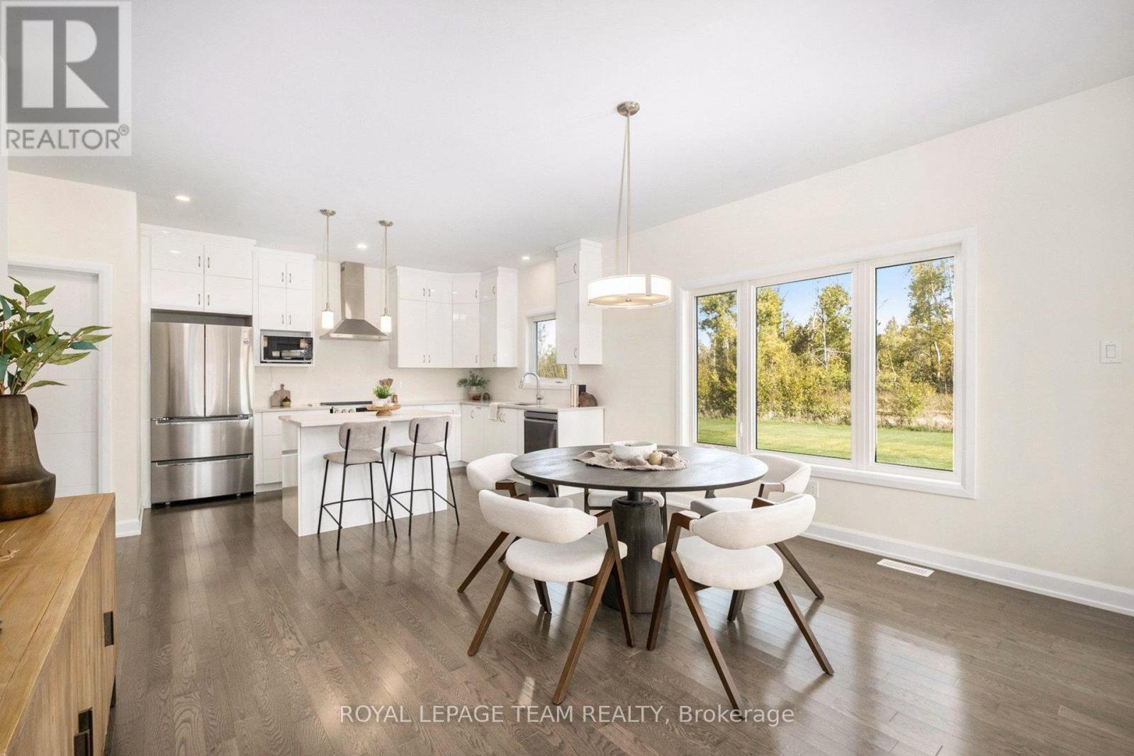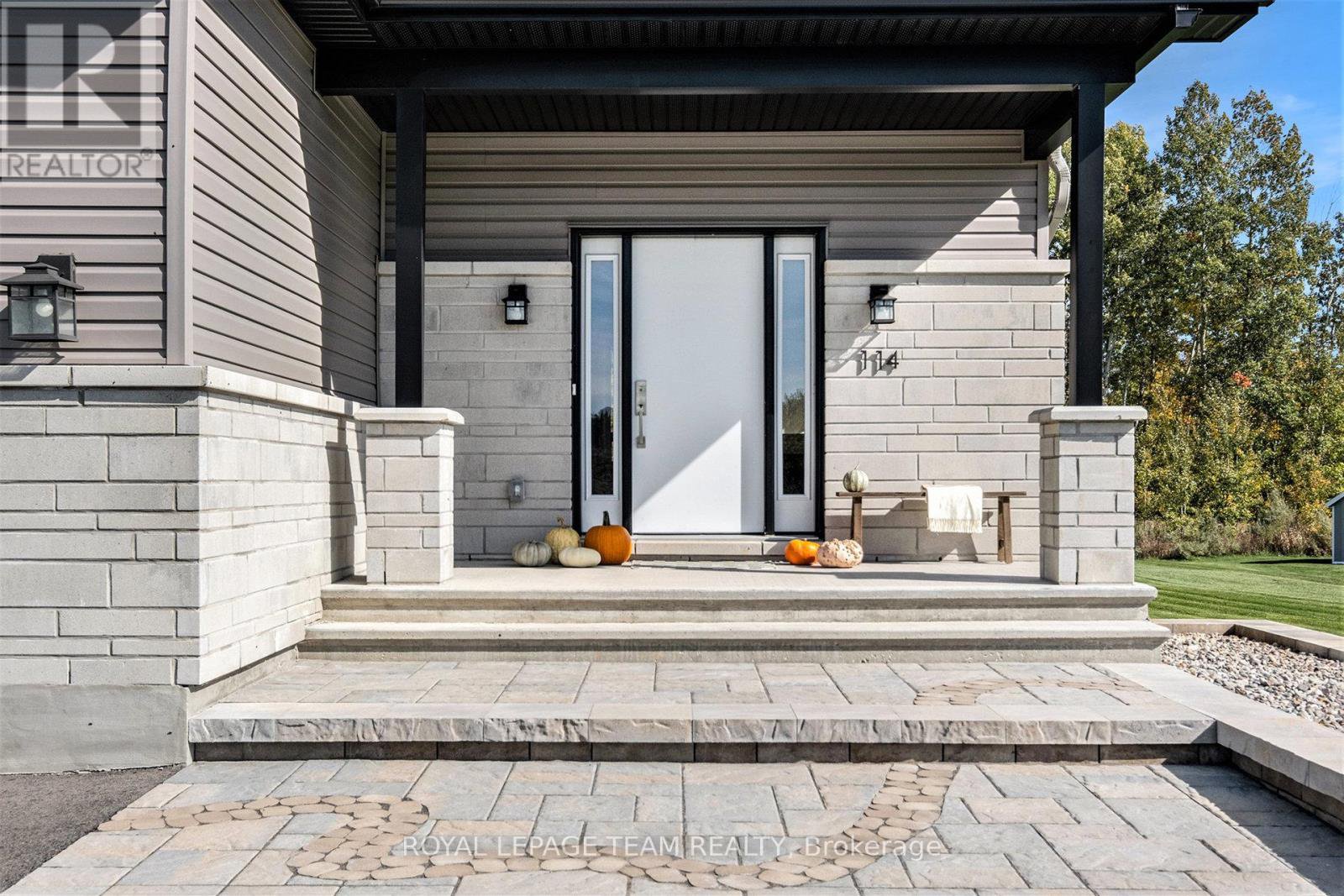 Welcome to 114 Maplestone Drive, a stunning contemporary home built in 2022 by Moderna Homes, showcasing modern design and superior craftsmanship. Set on a 1.2-acre landscaped lot with no rear neighbours, this property offers exceptional privacy just minutes from Kemptville and a 30-minute drive to Ottawa.Inside, a bright open layout features 9-foot ceilings and hardwood floors throughout the main and upper levels. Large windows and vaulted ceilings in the living room create a warm, inviting atmosphere filled with natural light.The chef-inspired kitchen impresses with quartz countertops, extended cabinetry, a walk-in pantry, and high-end stainless steel appliances, flowing seamlessly into the dining and living areas-perfect for entertaining or everyday living.Upstairs offers three spacious bedrooms, a full main bathroom, and a convenient laundry room. The primary suite is a peaceful retreat with a walk-in closet and private ensuite featuring double sinks.The finished basement provides versatile space for a gym, media room, or additional living area, with a bathroom rough-in ready for customization.Outside, enjoy a large deck and front stone patio ideal for entertaining or relaxing, complete with a natural gas BBQ line and irrigation system. There's also a full water treatment system with reverse osmosis. The oversized two-car garage offers ample storage, while the 200-amp service is ready for future upgrades.With over $75,000 in thoughtful enhancements, this home offers the perfect blend of style, space, and tranquility in a quiet yet convenient location.