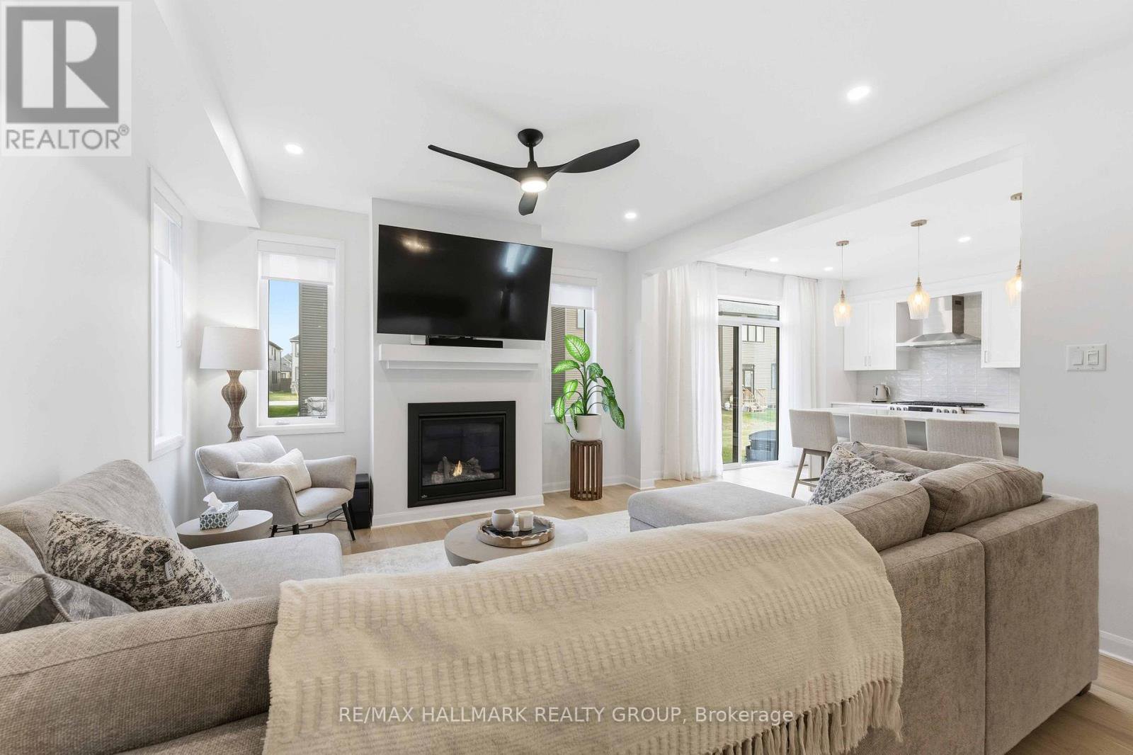 This exceptional 4-bedroom home showcases modern luxury and timeless finishing choices in one of Ottawa's most desirable communities; Mahogany in Manotick. Step inside to discover an elegant layout highlighted by 9-foot ceilings, hardwood flooring, a bright entrance foyer, a main level den, and an open concept living/dining area with a sleek gas fireplace creating a warm and sophisticated atmosphere. The custom-designed kitchen is a chef's dream, featuring quartz countertops, soft-close cabinetry, and upgraded lighting that beautifully complements the space. A semi-circular oak staircase leads to the upper level, where you'll find a spacious primary retreat complete with a walk-in closet and a spa-inspired ensuite offering double sinks and a stand-alone soaker tub-perfect for relaxation, three additional bedrooms, a full bathroom and second floor laundry room complete the upper level. Set within the prestigious Mahogany community, this home offers the perfect blend of tranquility and convenience, moments from the Manotick Village core, parks, trails, and the Rideau River.