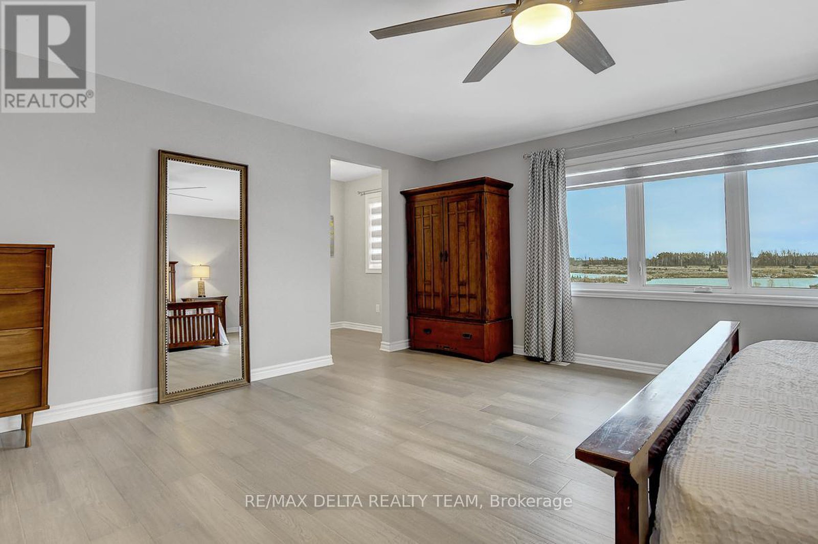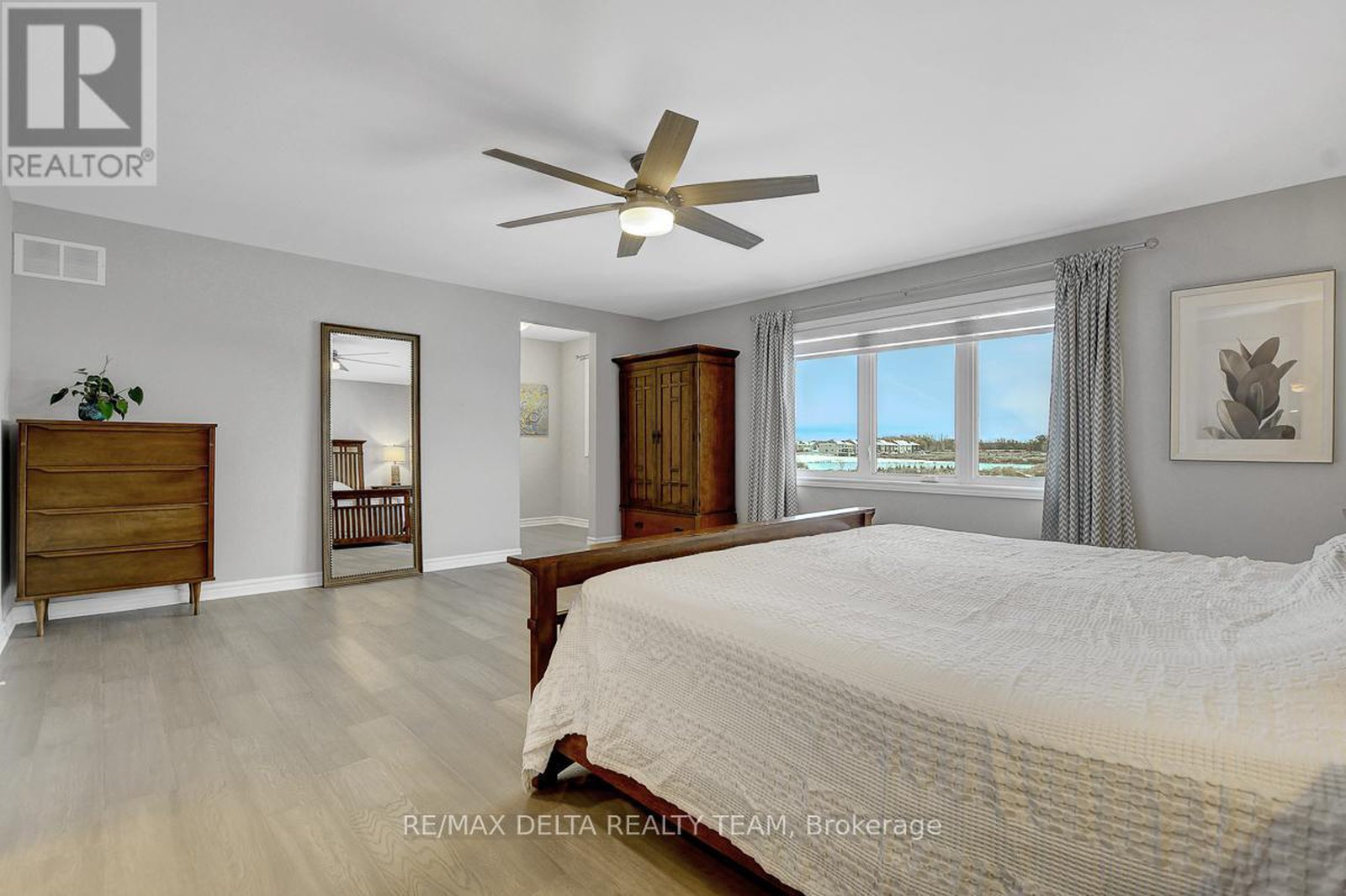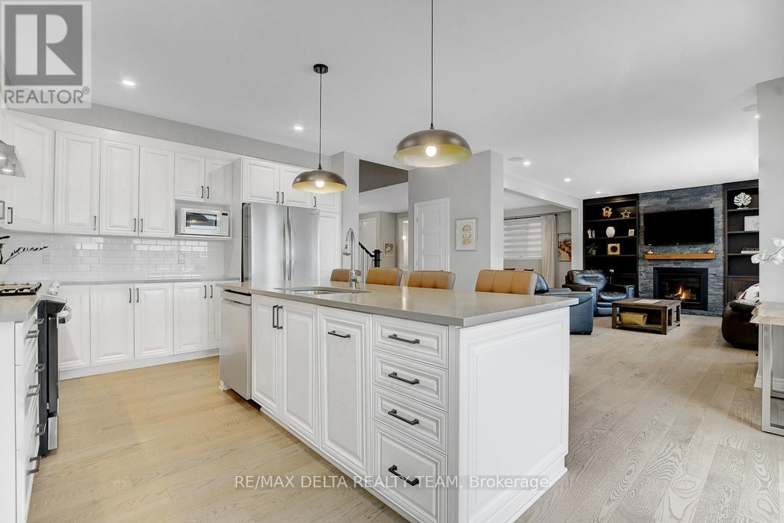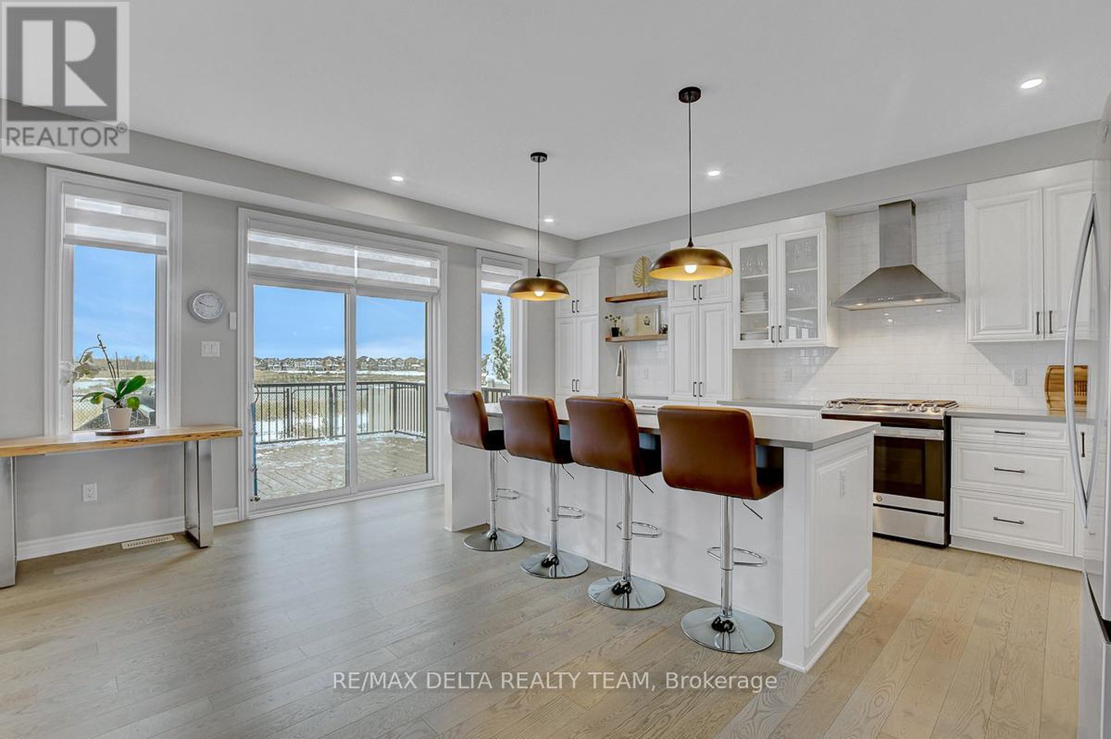 Luxury Dream Home Backing Onto the Pond in Prestigious Avalon West! Welcome to this rarely offered, exquisite executive residence - a true showpiece of modern luxury and refined design. Perfectly situated on a premium lot with no rear neighbours, this spectacular home offers breathtaking views of the pond and delivers every feature today's discerning buyer desires. Spanning over 3,000 sq. ft. of sophisticated living space plus a fully finished lower level, this move-in-ready masterpiece showcases impeccable craftsmanship and high-end upgrades throughout. Step inside to a grand, open-concept main floor featuring 9-ft ceilings, rich modern grey hardwood flooring, designer lighting, built-in speakers, and an elegant gas fireplace with custom cabinetry and stone wall. The chef-inspired white kitchen is a dream, complete with quartz countertops, a large island with breakfast bar, pantry, and premium finishes - perfect for both entertaining and everyday living. A main-floor office/den adds flexibility and convenience for working from home. Upstairs, the expansive primary suite offers a true retreat with dual walk-in closets and a luxurious 5-piece ensuite with quartz counters, double vanity, glass shower, and soaking tub. Three additional spacious bedrooms include one with a private ensuite and two sharing a stylish Jack-and-Jill bath, all beautifully appointed with modern design details.The fully finished lower level extends the living space with a large entertainment-sized family room, a modern 3-piece bath, a custom bar area, and ample storage - perfect for hosting or relaxing. Outside, enjoy peaceful evenings on your private backyard deck overlooking the tranquil pond - the ideal backdrop for gatherings or quiet reflection. Don't miss out on this opportunity! 24-hour irrevocable on all offers.