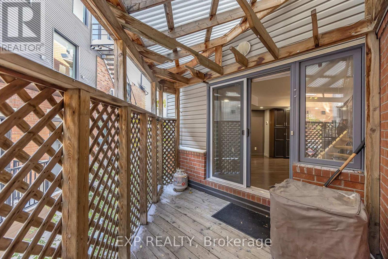 **OPEN HOUSE: Sunday, November 16th 2-4pm** Beautifully maintained and updated 2-bedroom, 2-bathroom freehold townhome spread over three levels and ideally situated on a quiet one-way street in the heart of the city. Enjoy walking distance to a plethora of restaurants, shops, professional services, Parliament Hill, Little Italy, Chinatown, public transit, and more. The main level features recently updated engineered hardwood flooring, a spacious kitchen with stainless steel appliances and generous storage and workspace, and a bright living room with a cozy gas fireplace and direct access to a covered balcony with privacy fencing. The second level offers a spacious bedroom with a convenient 4-piece bathroom just steps away and bonus space at the staircase landing - ideal as sitting/reading area, while the third level is dedicated to the primary suite-complete with a walk-in closet, private 4-piece bathroom, and access to a second balcony overlooking the private courtyard of the complex. Additional features include a single-car garage with interior access, low-maintenance living, and a move-in-ready condition. Perfect for professionals or anyone seeking a vibrant urban lifestyle with comfort and convenience. *Some images have been virtually staged.