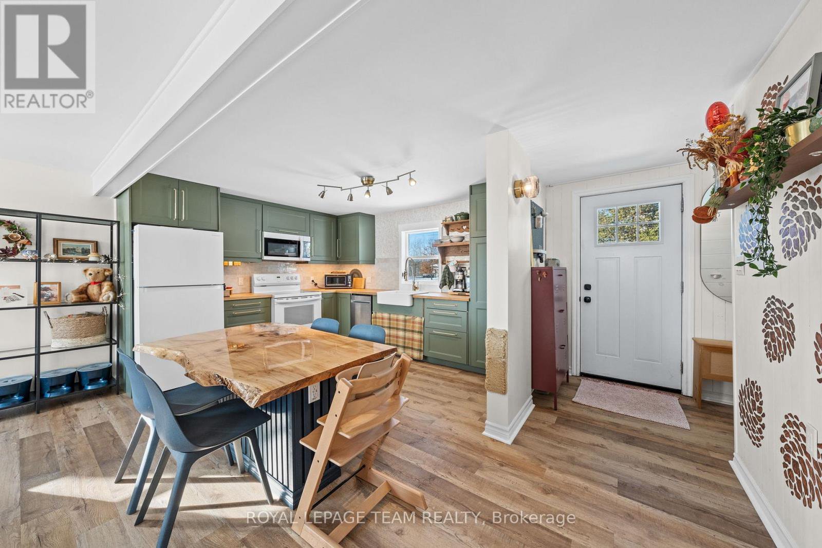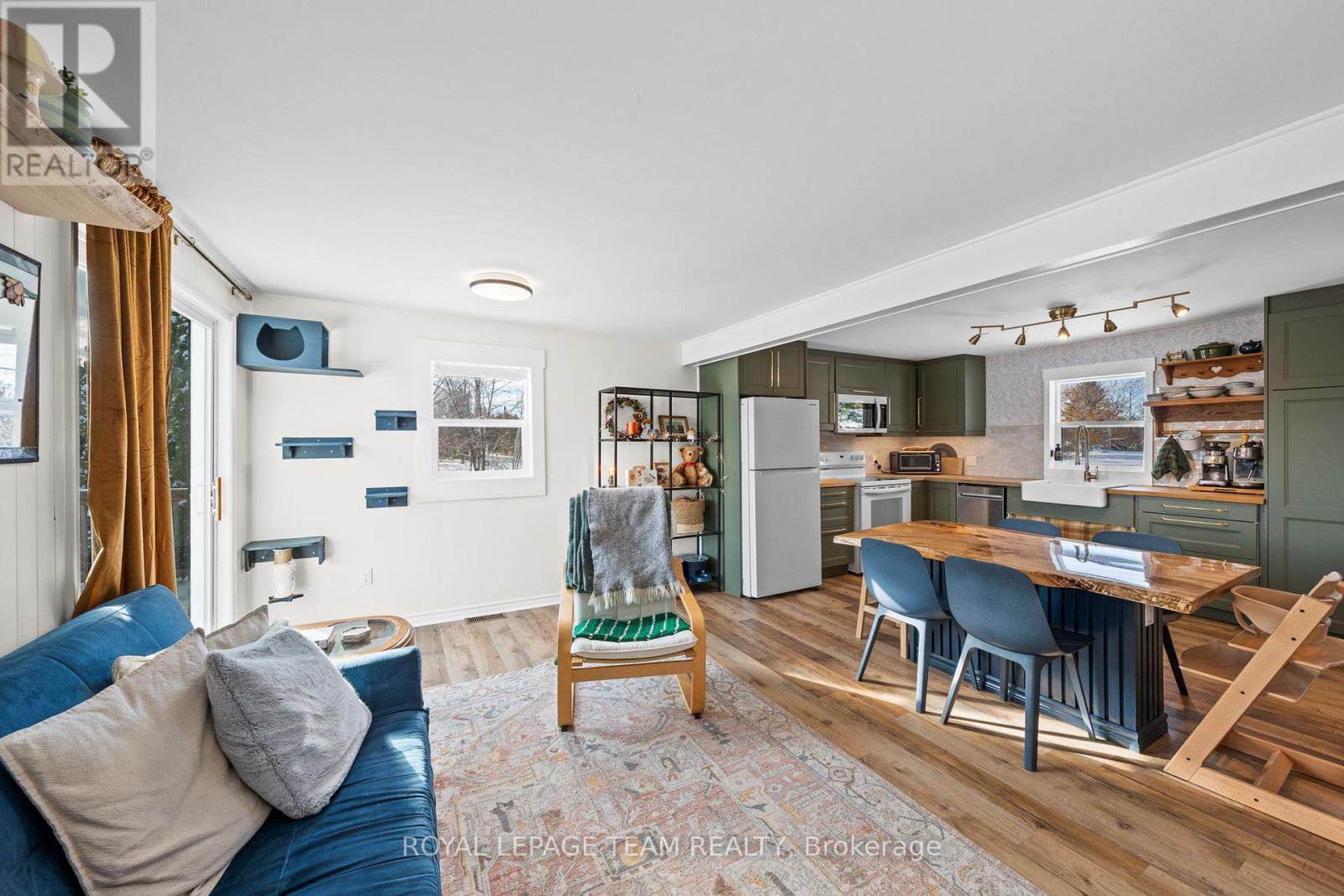 Quiet country living awaits you, just minutes from town. Sitting on 1-acre, this beautifully renovated 3-bedroom, 1-bath home offers a thoughtful layout and seamless organization. The front entrance welcomes you into a bright, modern interior featuring new flooring, a beautifully updated kitchen with live-edge island, and built-in shelving w/fireplace in the inviting living room. Other improvements include: Renovated bathroom w/ laundry, three bedrooms with full sized closets, exterior landscaping, interlock & more! Have peace of mind with a new heat pump for year-round comfort and energy efficiency. The solid ICF foundation encloses an unfinished walkout basement providing a large amount of dry additional storage space. Outside, enjoy the private yard lined with cedar trees, relaxing by the fire pit or reading a book on the large back deck. The new flowerbeds in the front yard, vibrant lilac bushes and enclosed raised garden beds are perfect for any hobby gardener. Make use of the oversized detached 1-car garage - great for parking, hobbies or extra storage. This property is in a fantastic location, only 5 minutes to drive to Carleton Place, 20 minutes to Kanata or take a scenic walk, bike ride or snowmobile trip into town on the nearby Ottawa Valley Rail Trail. This home perfectly blends comfort, efficiency and convenience.