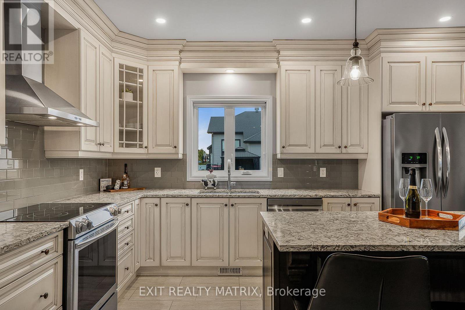 OPEN HOUSE Nov 16, 2-4pm. Welcome to this beautifully updated two-storey home in the heart of Embrun. Offering 4+1 bedrooms and a host of modern upgrades, this property combines timeless charm with modern comfort. The main level is thoughtfully designed, featuring a bright and inviting living room with a cozy gas fireplace and a chef style kitchen with a center island, pantry, and abundant cabinetry. The seamless flow between spaces makes it perfect for family gatherings and hosting guests. Upstairs, the spacious primary suite includes a walk-in closet and ensuite. The finished basement expands the living space with oak stairs, a stylish wet bar, and a second fireplace an entertainers dream. Step outside to your private backyard retreat. This fully landscaped corner lot showcases a heated saltwater inground pool, hot tub, two gazebos, natural gas outdoor fireplace, gas BBQ hookup, and interlock with firepit and seating. The front yard was refreshed with new interlock and landscaping, adding striking curb appeal. Other updates include a modern laundry room and many thoughtful upgrades throughout, ensuring comfort and peace of mind. Every detail reflects pride of ownership and care. This is a great opportunity to own a gorgeous home in excellent condition, offering elegance, lifestyle, and exceptional entertaining spaces in a growing, sought-after community.