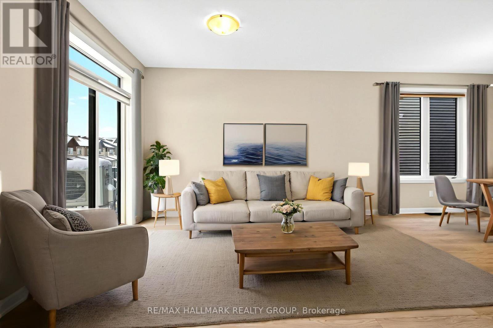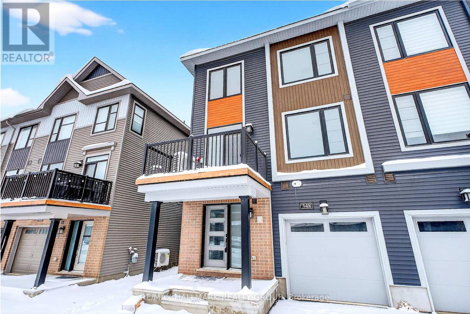 OPEN-HOUSE: Sunday 2-4PM! Stylish and move-in ready, this newly painted 3-bedroom end-unit townhome in Barrhaven's sought-after Half Moon Bay community offers a bright, modern open-concept layout perfect for today's lifestyle. The main level features a welcoming foyer with convenient laundry and storage, while the second level boasts a sun-filled kitchen with a central island, open living and dining areas, a functional balcony, and a 2-piece bath. Upstairs, three comfortable bedrooms and a full bathroom provide ample space for family living. As an end unit, this home enjoys extra natural light, added privacy, and great curb appeal-all in a family-friendly neighborhood close to parks, schools, and amenities.