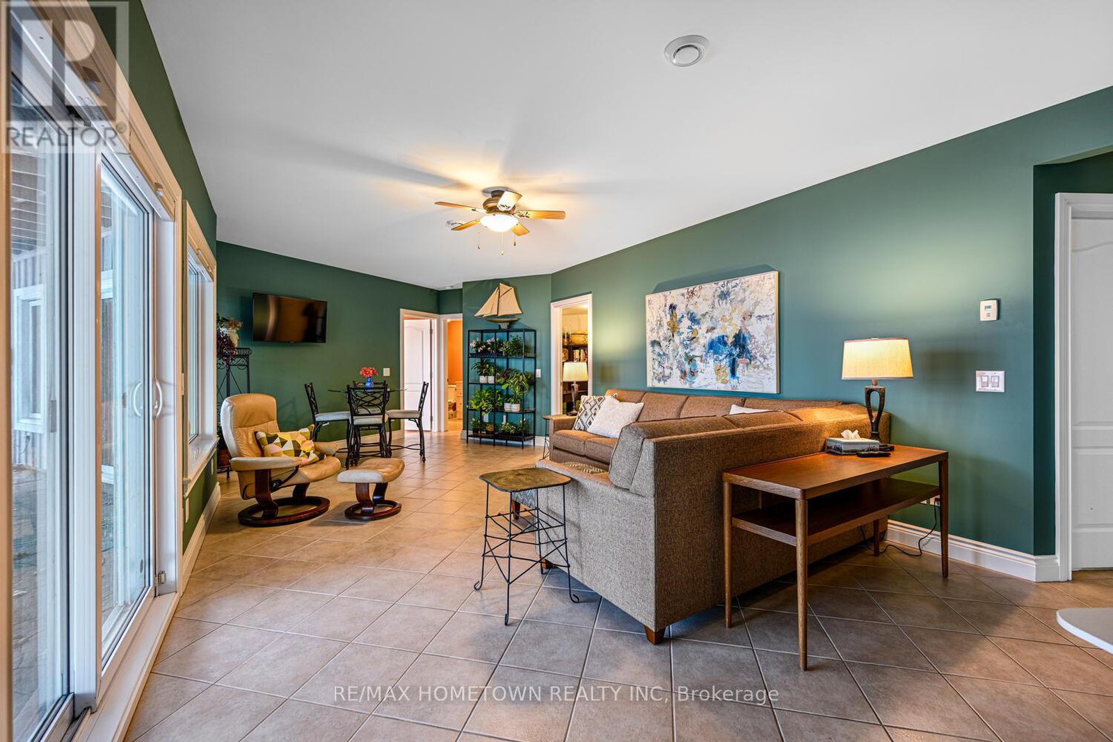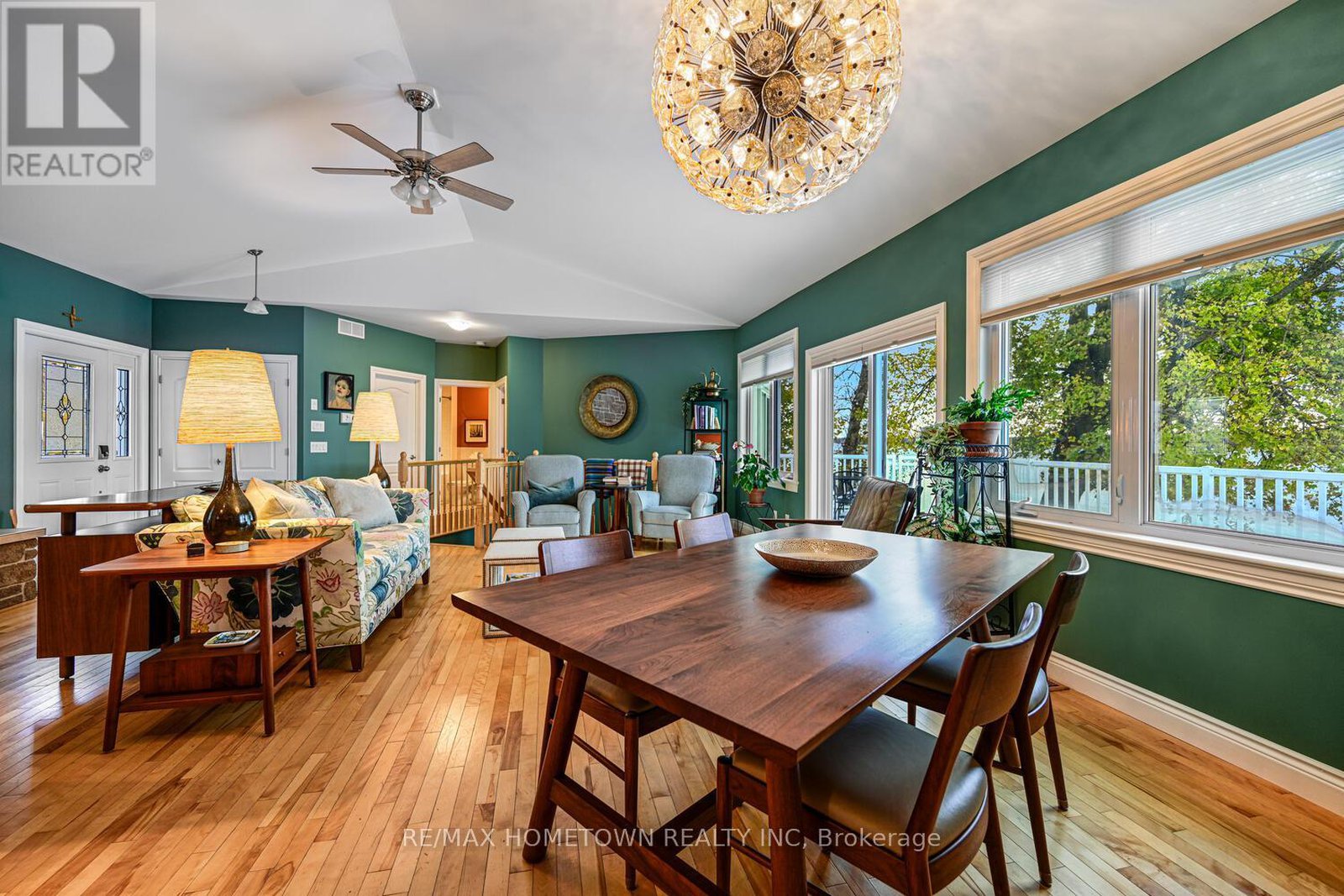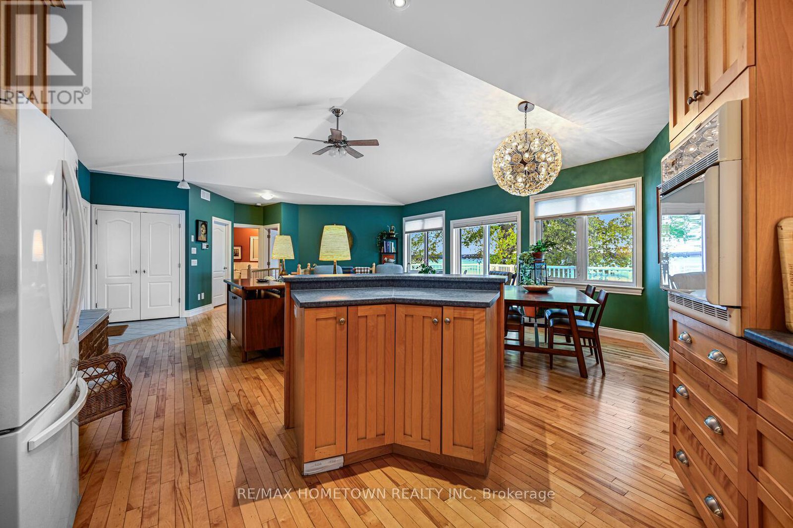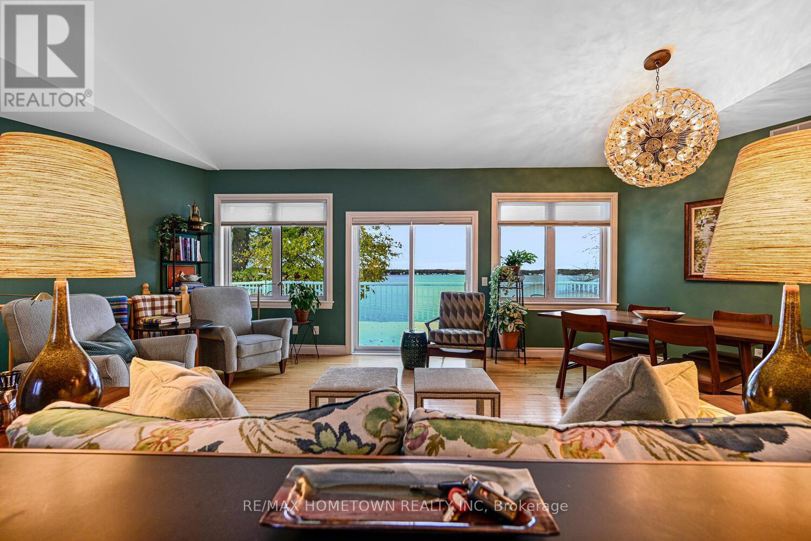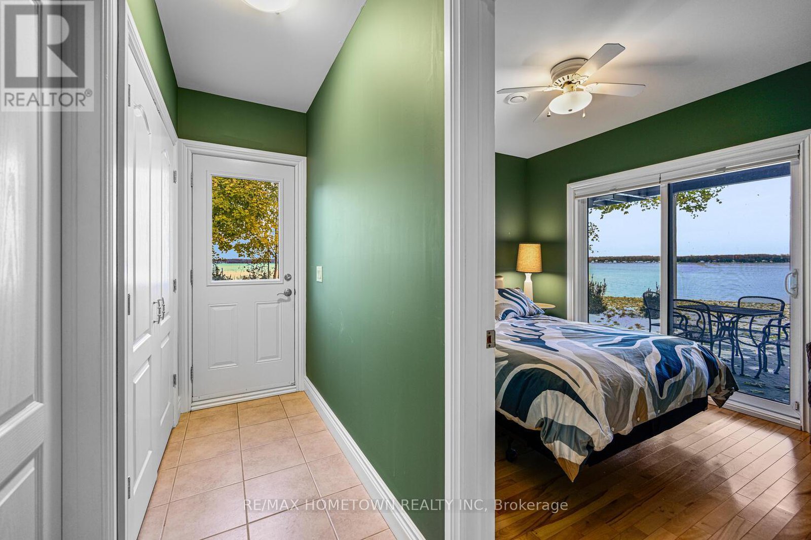 A home ready for the holidays-welcome to 1219 County Road 2, a refined St. Lawrence River residence just west of the pretty village of Maitland and moments from the Brockville hub. This exceptional waterfront setting offers a rare balance of global reach and peaceful, unhurried living. Sunrises glow across the water, moonlight shimmers on the currents, and international ships pass by like moving artwork-beauty always in motion. The property has been thoughtfully refreshed with new perennial gardens, interlocking stone, a newly paved 8-car drive, and a brand-new septic, ensuring confidence and ease of country living. A full veranda spans the front of the home, providing an elegant outdoor space to enjoy the river's four spectacular seasons and the sweeping panorama toward upper New York State. Inside, approx. 1,200 sq ft on each level offers light-filled, open living. The main floor features 2 serene bedrooms and 2 stylish baths, complemented by warm in-floor heating and a charming wood fireplace that enriches the home's ambiance. The lower walkout level adds 2 additional bedrooms and 1 bath, a bright rec room, and a flexible office area-ideal for guests, hobbies, or multi-generational living. With 150 + ft of owned waterfront and a rare dry boathouse, this property delivers exceptional appeal for riverfront enthusiasts. Step down to the gentle shoreline and experience the calm and grandeur of one of the world's great waterways. Tastefully presented, meticulously maintained, and available for immediate occupancy, this home offers tranquility, beauty, and a timeless riverfront lifestyle.
