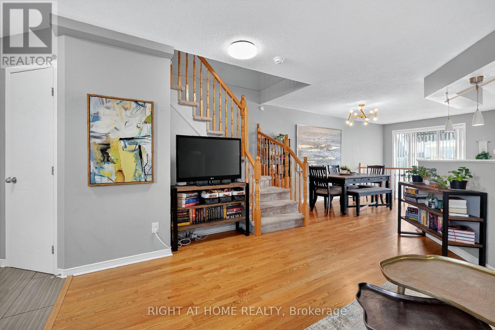 This home will have you "falling for Fallingbrook"! Located in a quiet Orleans neighbourhood close to Sobey's (groceries), top-notch schools, parks, restaurants, transit, and the Fallingbrook Community Centre, this 3-bed, 3-bath townhouse with 3 parking spots is the perfect blend of comfort and community. Step inside to discover this popular open-concept model. The main floor foyer has garage access, closet space, a convenient powder room, and stylish flooring throughout. Enjoy the separate living and dining rooms with new lighting and backyard access. Did I mention the fenced yard, awning, and the brand-new deck? The kitchen has plenty of storage, double sinks, and a flex space. Maybe use it for an eat-in kitchen, coffee bar, or workspace. All appliances are included. Upstairs, you'll find a spacious primary bedroom with a wall of closets and a cheater door to the fully renovated bathroom... it is a beauty! It has a large tub and shower with glass doors and plenty of vanity storage. No expense was spared on this reno. Two additional bedrooms with newer flooring and a hall closet complete this top level. Wait, there's more! An open-style staircase with floor-to-ceiling windows leads you to the lower-level family room, making it feel so cozy and truly connected to the rest of the home. Enjoy the gas fireplace, newer flooring, a laundry area with tons of storage, and a brand new modern 3-piece bath. Updates: lower-level 3-piece bath, interlock walkway, windows (upstairs & front living room), backyard deck, and freshly steam-cleaned carpets (2025). Washer & Dryer (2024). Second floor 4-piece bath and the garage insulation & workbench (2020). Driveway repaved (2018). Foyer, powder & kitchen tile upgrade (2017). Roof (2014). Don't miss out on this incredible opportunity to make 812 Nesting Way your new home. Schedule a viewing today. 24 hours irrevocable on all offers. Open House Sunday, November 16th 2-4PM.