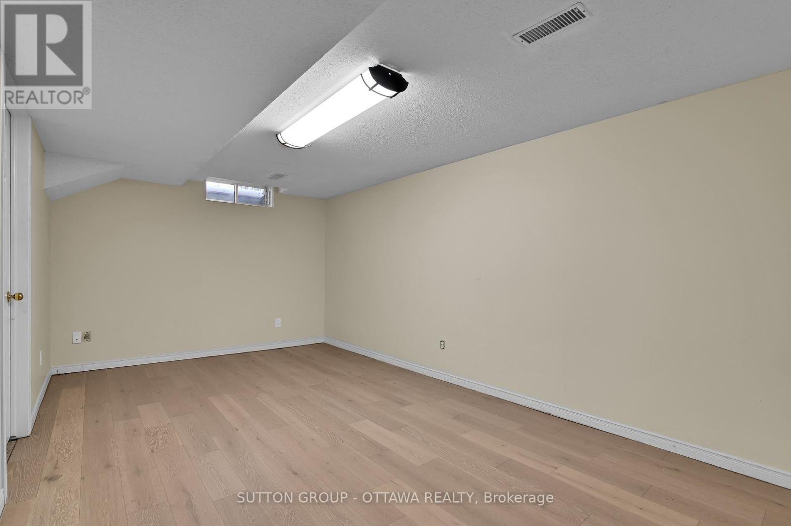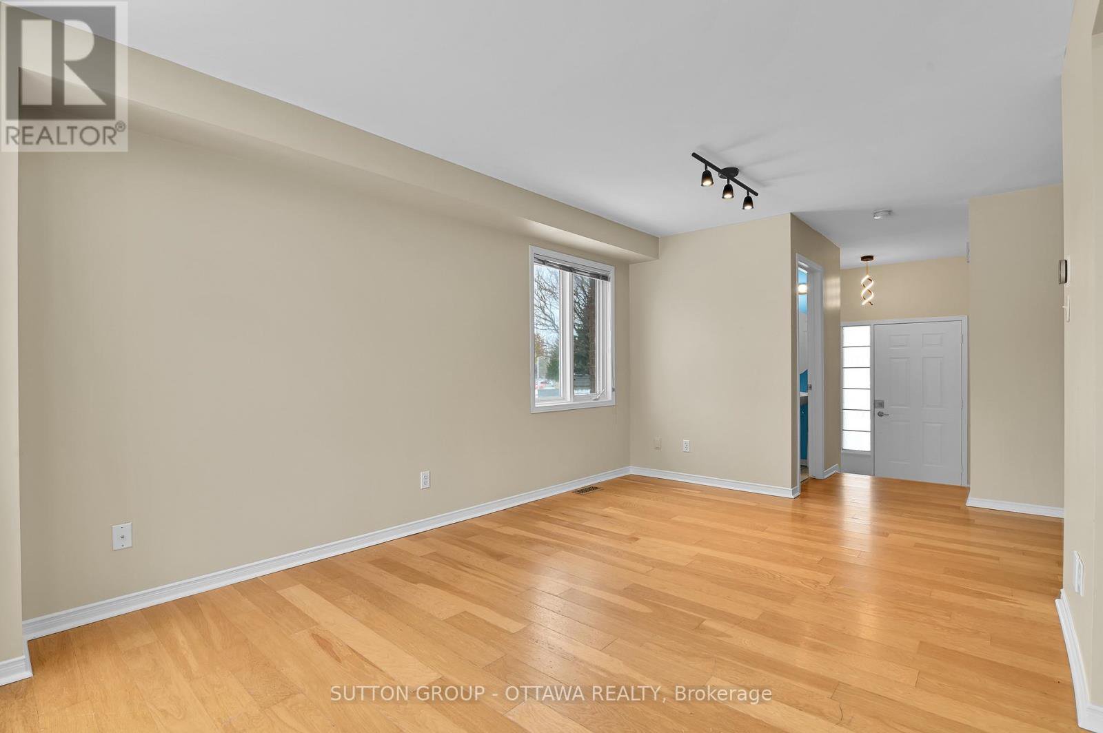 EXCEPTIONAL value offered with this 3 bedroom/2 bathroom end unit, situated on a corner lot, in walkable and amenity-rich location. Recently painted, and professionally cleaned, this 2 storey row town features a fully fenced back yard, no rear neighbours, deck and gardens. With an east-west facing disposition, there will be all day sunshine into this unit. Driveway can fit two cars easily in addition to the garage. Interior spaces include good sized foyer with garage access, hall way closet, quick access to a part bathroom, bright living room/kitchen and dining area over looking deck and fully fenced yard. Upper level offers spacious primary and two guest rooms and/or home office spaces, updated full bathroom. Finished lower level is fully finished with generous laundry/utility room with additional storage. OC TRANSPO, QUICK ACCESS TO HIGHWAY, PLENTY OF NEARBY SCHOOL, A WALK TO CENTRUM, MCGIBBON PARK, WAVE POOL, WATTS CREEK PARK.