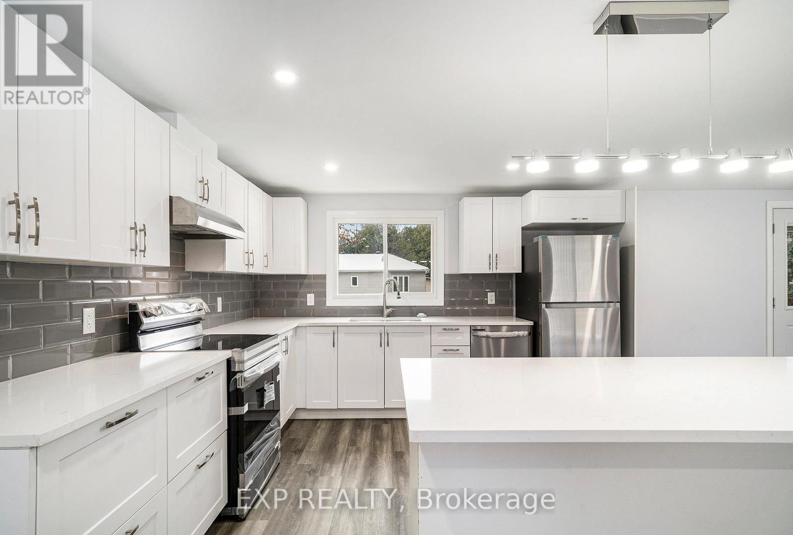 **OPEN HOUSE SUN NOV 16th 2-4pm** BEAUTIFULLY UPGRADED Detached Bungalow In A Desirable, Family-Friendly Location! This Fully Gutted And Expertly Renovated Home Offers A Fresh, Contemporary Feel From Top To Bottom. Featuring 3 Bedrooms And 2 Bathrooms, This Turn-Key Residence Combines Modern Comfort With Practical Living. The Open-Concept Design Seamlessly Connects The Living, Dining, And Kitchen Areas, Creating A Bright, Airy Flow Enhanced By Large Windows And An Abundance Of Natural Light. The Kitchen Showcases Gorgeous Quartz Countertops, Timeless White Cabinetry, A Stylish Subway Tile Backsplash, Upgraded Light Fixture, And Stainless Steel Appliances - A Perfect Space For Cooking And Entertaining. The Spacious Primary Bedroom Features A Walk-In Closet And A Stunning 3-Piece Ensuite With A Standing Glass Shower And Beautiful Tile Details. The Two Additional Bedrooms Are Generously Sized And Share A Well-Appointed 4-Piece Bath With A Tub/Shower Combo, Tile Surround, Built-In Nook, And Rainfall Shower Head. Luxury Vinyl Flooring Flows Throughout The Main Level, While The Convenient Laundry Room Includes A Brand-New Washer And Dryer. Major Updates Include A New Roof, Furnace, Windows, Deck, Electrical, Plumbing, Drywall, And Insulation, All Completed In 2025. A/C Updated in 2024. The Unfinished Basement Provides Excellent Potential For A Recreation Area, Home Office, Or Additional Living Space. Step Outside To A 10' By 12' Back Deck Overlooking A Huge Lot - Perfect For Relaxing Or Hosting Family Gatherings. Enjoy The Best Of Country Living Within The City Limits, Offering Space And Privacy Without Sacrificing Convenience. Close To Schools, Shopping, Parks, And Everyday Amenities, This Updated And Modernized Home Is Completely Move-In Ready. Nothing To Do But Settle In And Start Enjoying Your New Lifestyle! Schedule Your Private Viewing Today! Some Photos Have Been Virtually Staged.