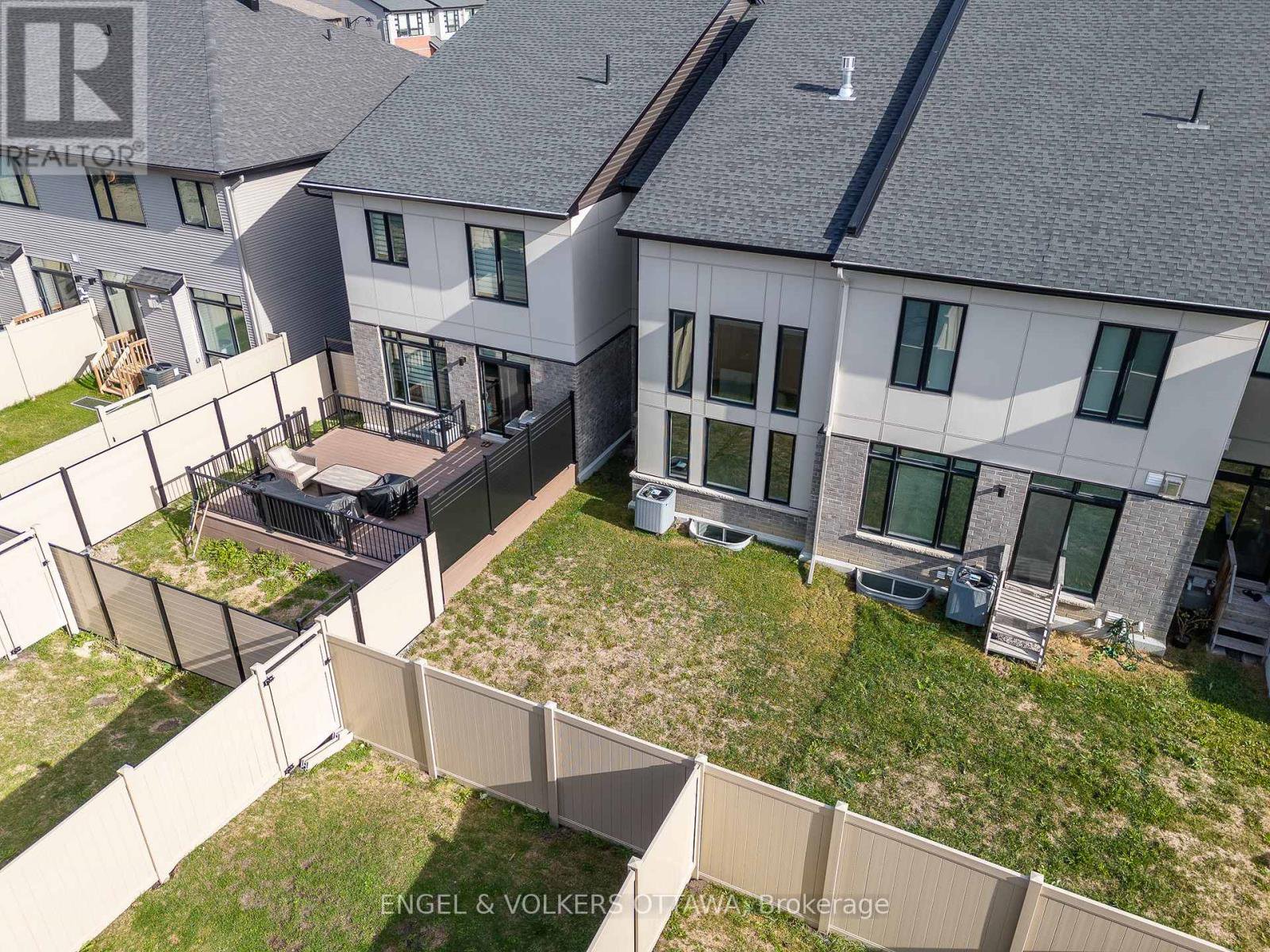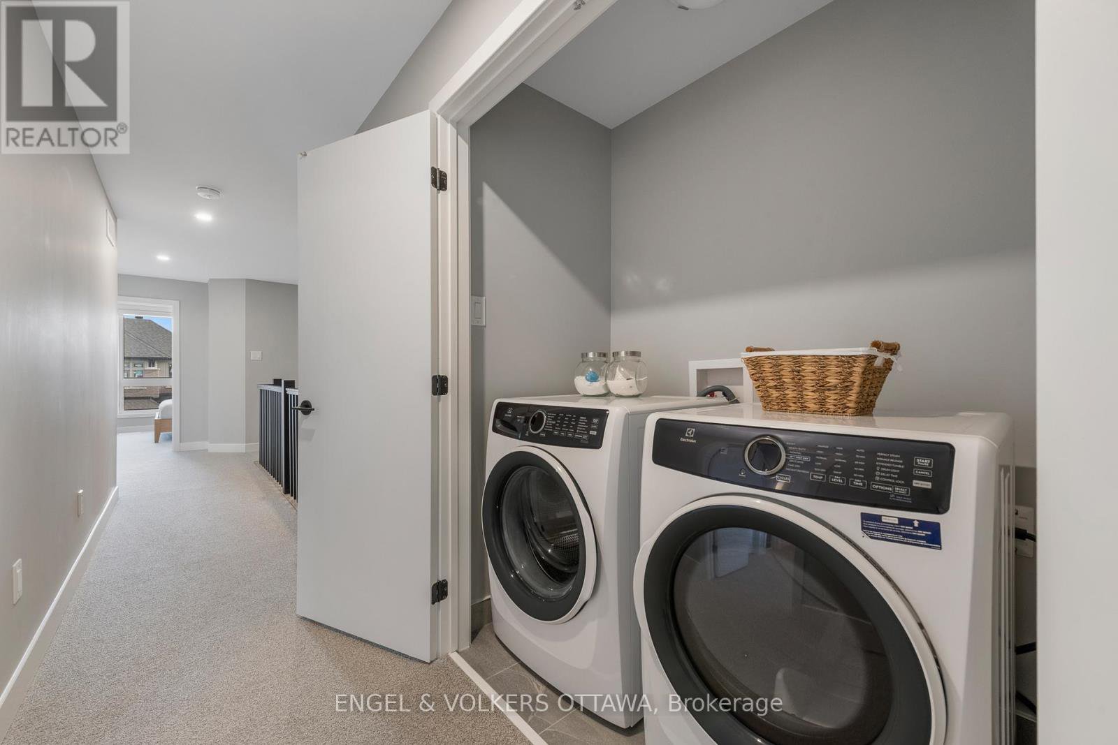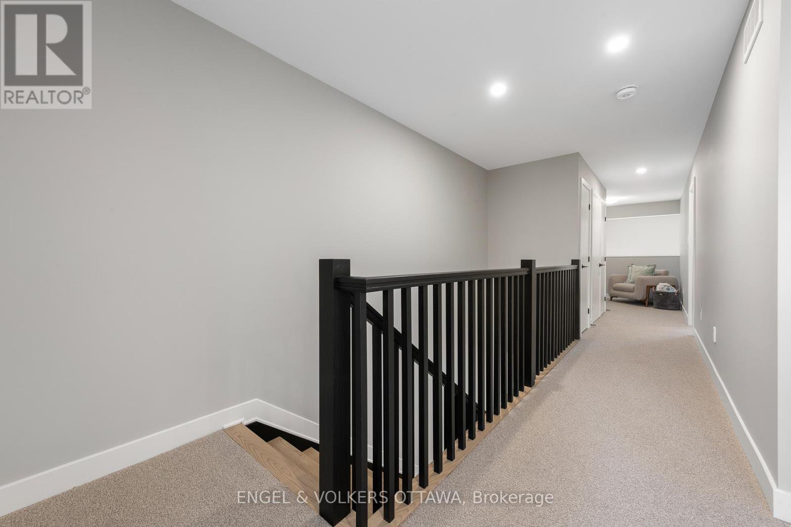 Modern sophistication meets family comfort in this beautifully designed home situated on a quiet street in Stittsville. Surrounded by new builds and close to scenic parks and schools, this property strikes a perfect balance between style, practicality, and location. The main level includes recessed lighting, wide-plank hardwood floors, and neutral tones throughout. The dining area flows seamlessly into the gourmet kitchen, which features white cabinetry, black stone countertops, a large island, and stainless steel appliances. At the centre of the home, the living room impresses with its soaring double-height ceilings, expansive windows, and a gas fireplace, creating an airy space ideal for gatherings. Upstairs, the spacious primary suite offers a private retreat with plush carpeting, lots of natural light, and a luxurious ensuite with a glass-enclosed shower, a deep soaker tub, and a quartz-topped vanity with woodgrain cabinetry. Two additional bedrooms provide versatility for family, guests, or working from home. A modern central bathroom with a quartz vanity and a conveniently located laundry area with side-by-side appliances add to the practicality of this level. The finished lower level extends the living space with a bright, open recreation area perfect for a media room, gym, or play area. Recessed lighting, soft carpeting, and a large window create an inviting atmosphere. Outside, the backyard is a blank canvas for outdoor enjoyment, with sleek black and beige fencing that complements the home's modern aesthetic. Located in one of Stittsville's most family-friendly areas, this property offers proximity to top-rated schools, community parks, and extensive walking and cycling thanks to the nearby Trans Canada Trail. With quick access to Highway 417 and public transit, accessing nearby shopping and dining, as well as commuting to downtown Ottawa, is both convenient and efficient!