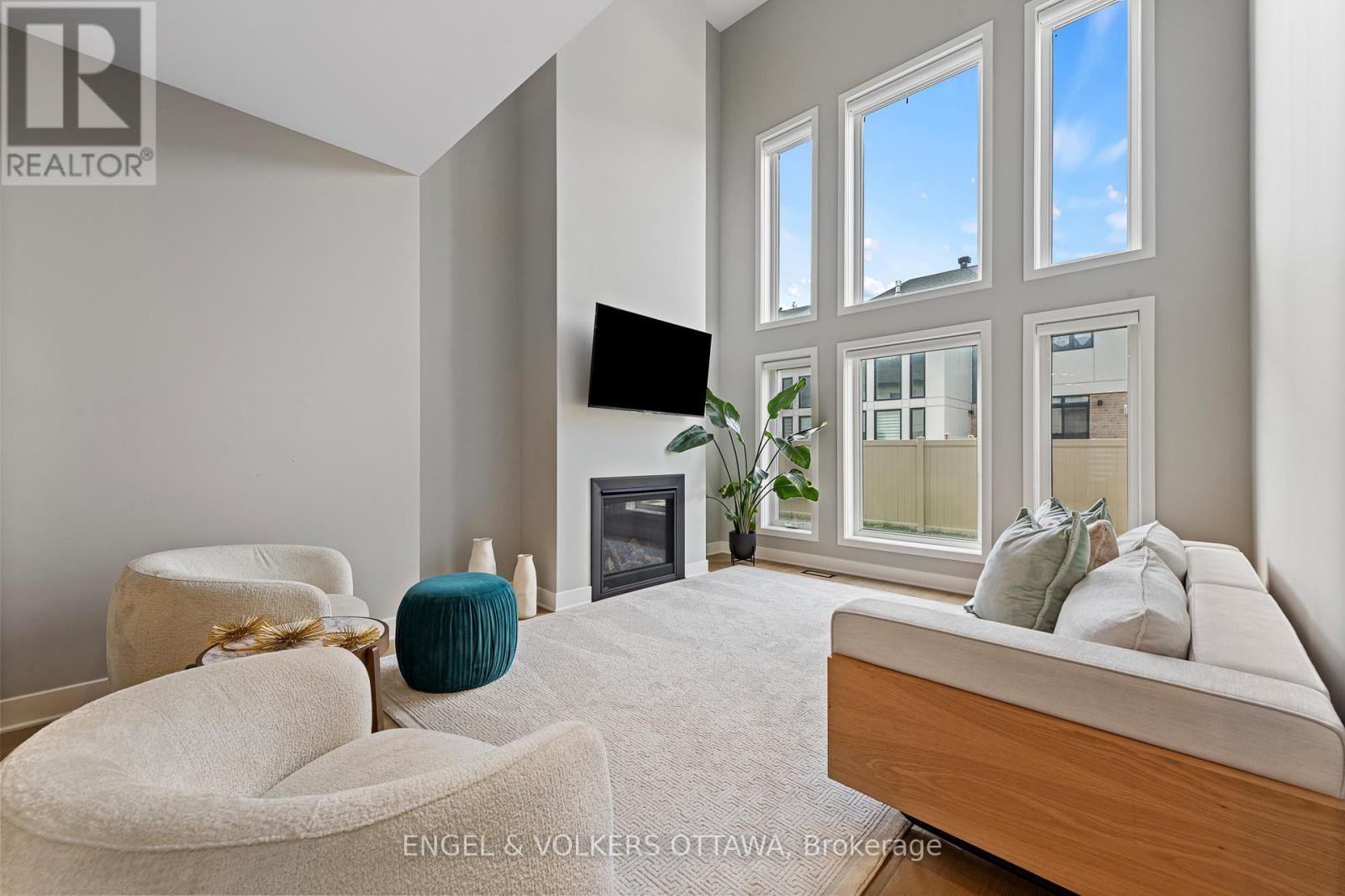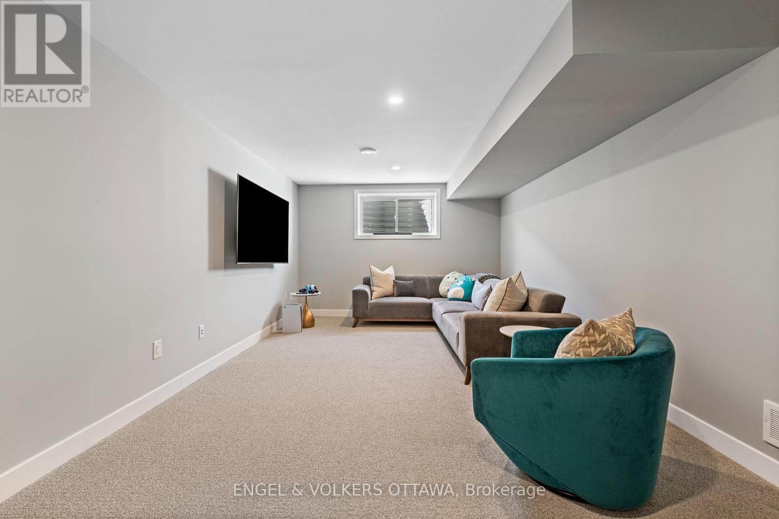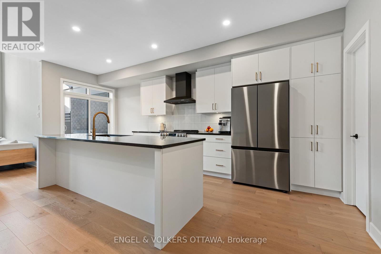 Modern sophistication meets family comfort in this beautifully designed home situated on a quiet street in Stittsville. Surrounded by new builds and close to scenic parks and schools, this property strikes a perfect balance between style, practicality, and location. The main level includes recessed lighting, wide-plank hardwood floors, and neutral tones throughout. The dining area flows seamlessly into the gourmet kitchen, which features white cabinetry, black stone countertops, a large island, and stainless steel appliances. At the centre of the home, the living room impresses with its soaring double-height ceilings, expansive windows, and a gas fireplace, creating an airy space ideal for gatherings. Upstairs, the spacious primary suite offers a private retreat with plush carpeting, lots of natural light, and a luxurious ensuite with a glass-enclosed shower, a deep soaker tub, and a quartz-topped vanity with woodgrain cabinetry. Two additional bedrooms provide versatility for family, guests, or working from home. A modern central bathroom with a quartz vanity and a conveniently located laundry area with side-by-side appliances add to the practicality of this level. The finished lower level extends the living space with a bright, open recreation area perfect for a media room, gym, or play area. Recessed lighting, soft carpeting, and a large window create an inviting atmosphere. Outside, the backyard is a blank canvas for outdoor enjoyment, with sleek black and beige fencing that complements the home's modern aesthetic. Located in one of Stittsville's most family-friendly areas, this property offers proximity to top-rated schools, community parks, and extensive walking and cycling thanks to the nearby Trans Canada Trail. With quick access to Highway 417 and public transit, accessing nearby shopping and dining, as well as commuting to downtown Ottawa, is both convenient and efficient!
