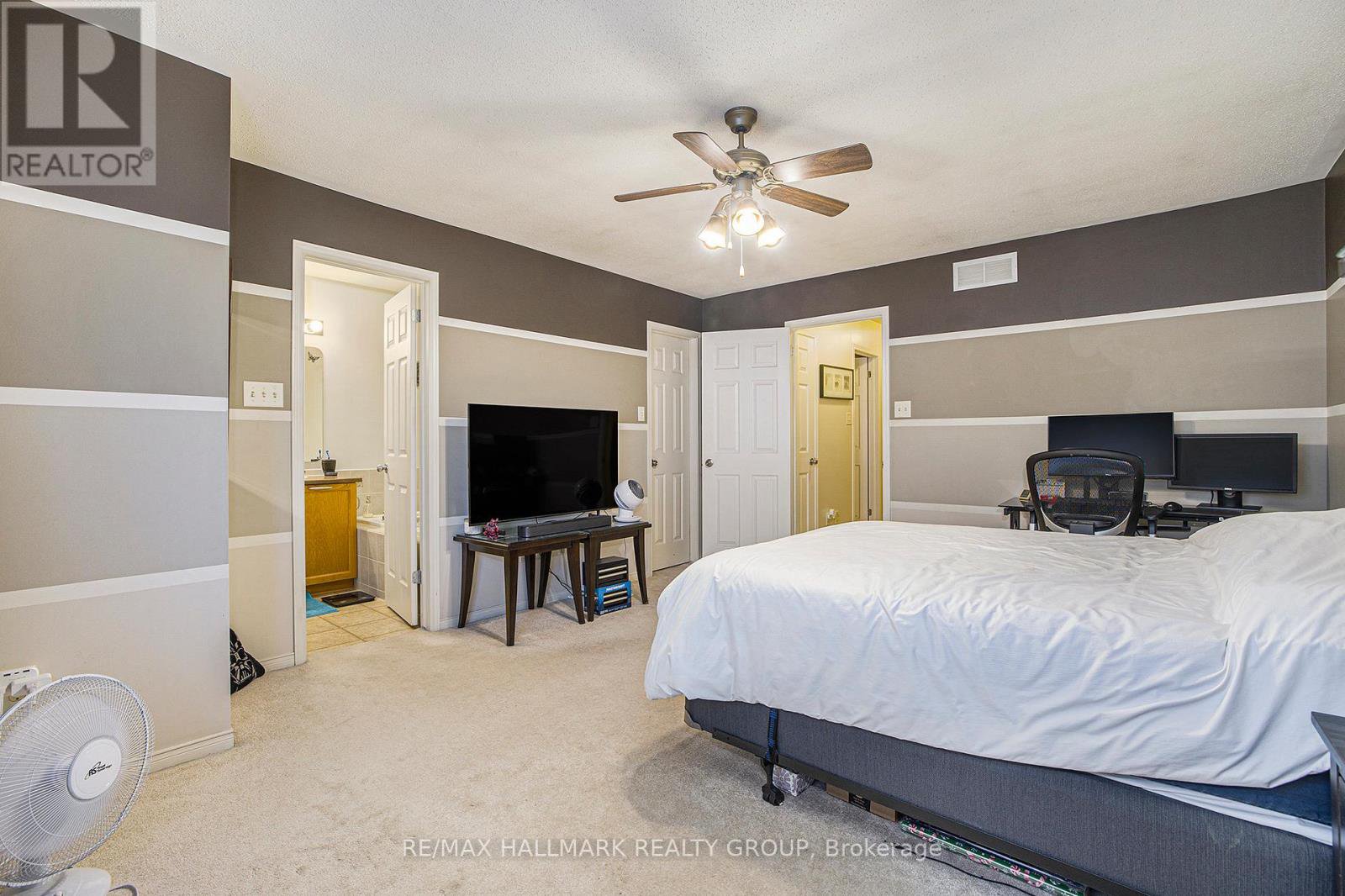 Welcome to this popular Minto Manhattan, perfectly situated on a quiet street in family-friendly Morgan's Grant - right in the heart of Kanata's high-tech hub.Step inside to an inviting open-concept main level, featuring rich hardwood floors through the living and dining areas. Large windows and patio doors leading to the deck and yard create a bright, seamless flow for everyday living and effortless entertaining.Upstairs, you'll find three generous bedrooms, including a spacious primary suite with walk-in closet and private ensuite - the ideal retreat after a long day.The fully finished lower level impresses with a cozy rec room, a large window for natural light, and a warm gas fireplace, along with plenty of additional storage.Located just steps to public transit, top-rated schools, restaurants, shopping, parks, and high-end golf, this home offers both comfort and convenience in one of Kanata's most sought-after neighbourhoods.A perfect blend of lifestyle, location, and value . Furnace December 24, AC June 25. Gas stove and dryer.