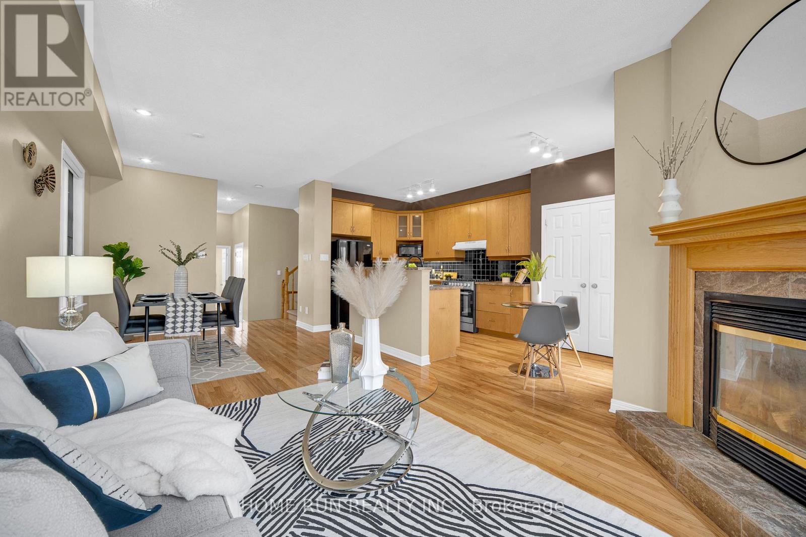 Welcome to this elegant 3-bedroom, 2.5-bathroom end-unit townhouse, situated in the highly desirable community of Findlay Creek. The home features hardwood flooring on both the main and second levels, complemented by 9-foot ceilings on the main floor and a conveniently located laundry room upstairs.The main level offers a versatile den/office, a spacious dining room, a modern kitchen, and an inviting living room complete with a cozy fireplace. A beautiful staircase leads to the second level, where you will find a generous primary suite with a walk-in closet and a private ensuite, along with two additional well-sized bedrooms and a full bathroom.The fully finished lower level includes a large recreation room, ideal for family gatherings or entertaining. Perfectly located near top-rated schools, shopping, parks, and scenic walking trails, this home is move-in ready and an exceptional opportunity. Additional highlights include an owned hot water tankno rental fees required. Dont miss your chance to call this property your new home.