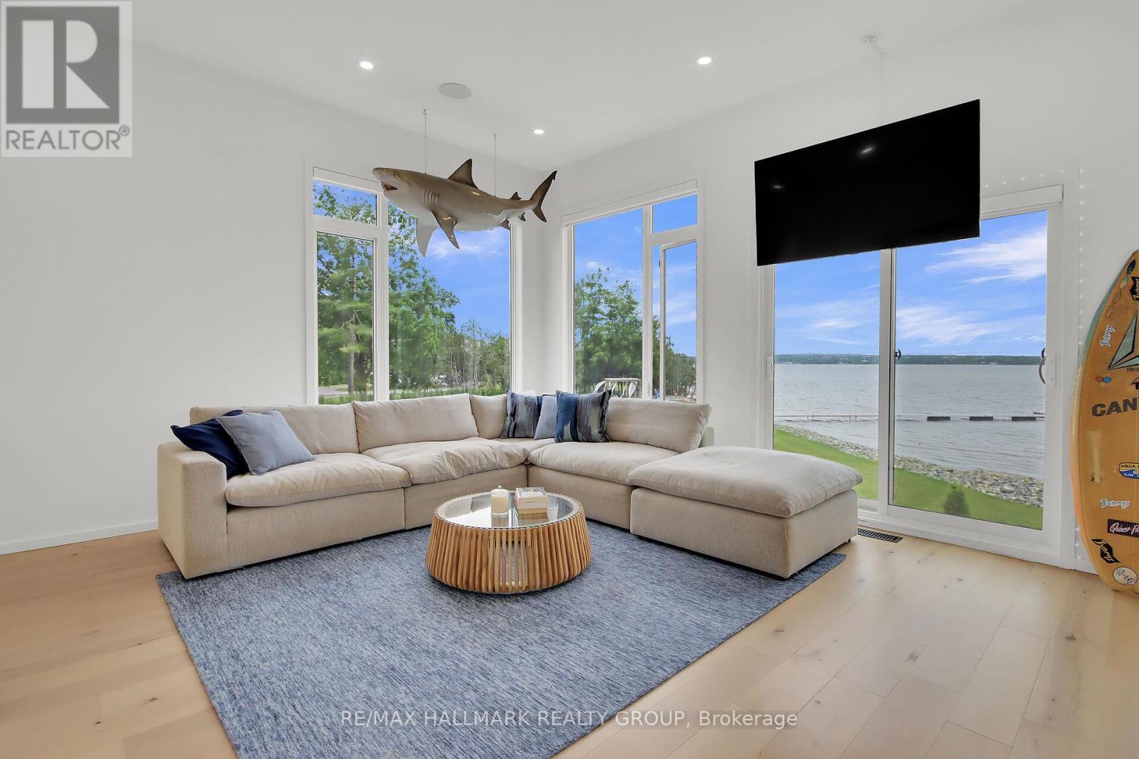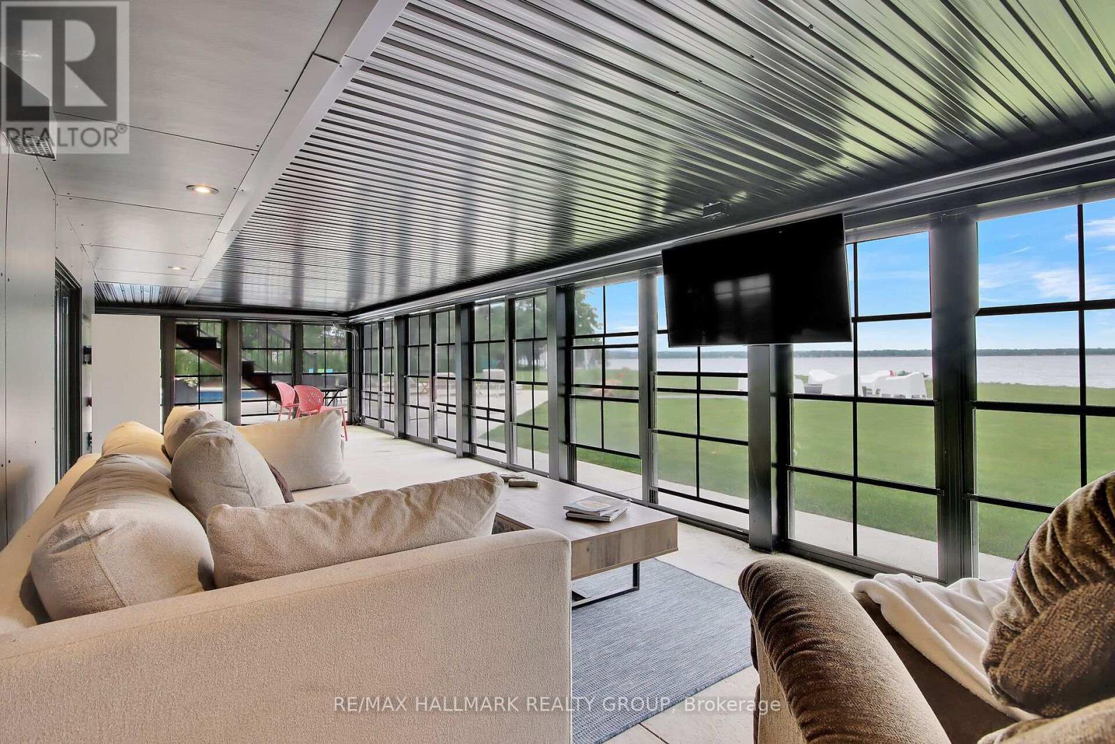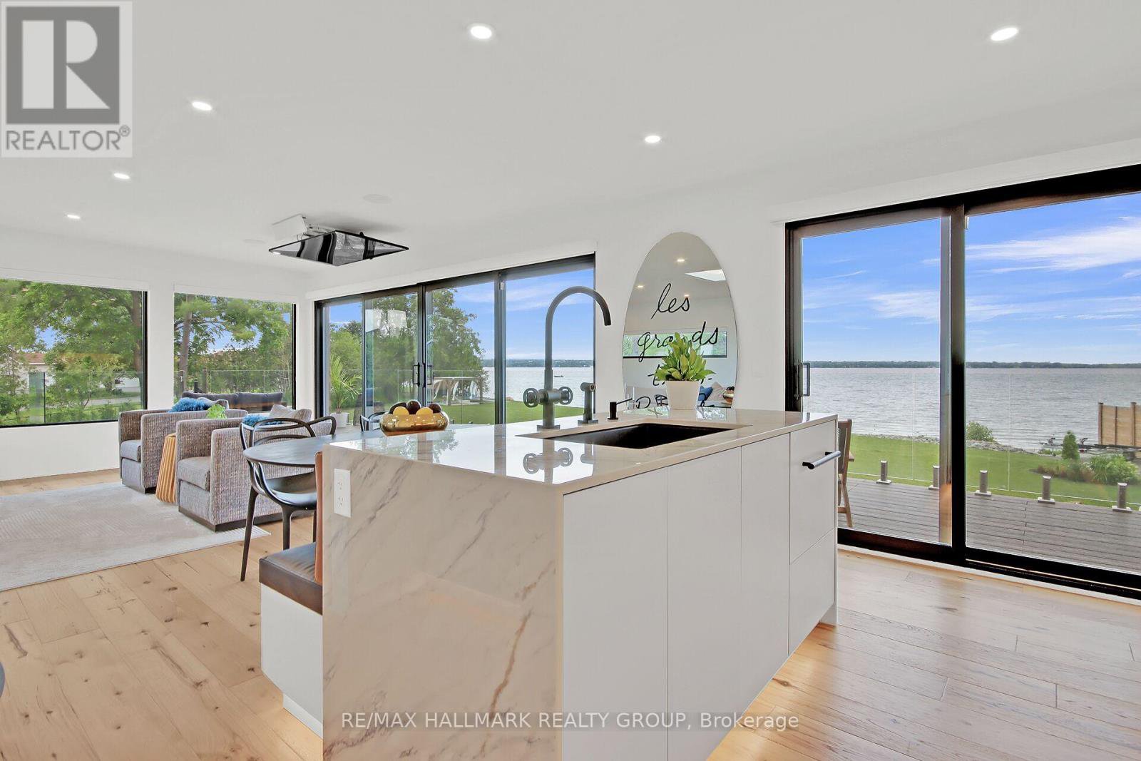 Crystal Bay waterfront resort like property providing an array of entertainment and recreational activities year round. Only 126 single family properties on the Ottawa River from Britannia to the NCC greenbelt making this a special opportunity. This modern 'smart' home has an outstanding and breathtaking panoramic views across the river to the Gatineau Hills and towards the city centre. The three level 3 bedroom split home and additional self contained Coach House all reimagined since 2021 are situated on a massive .85 acre lot with over 190' of waterfront. You can feel the serenity as you arrive through the gated entrance. High quality finishes throughout the buildings and grounds. Huge deck over a 3 season family room w/sauna. Other inclusions are a 36x18 inground saltwater pool, large deck and patio area, putting green, firepit, generator, BBQ station, gazebo and jet ski dock. Double car garage at main home and a single drive through garage at the Coach House. Private retreat inside the Ottawa Greenbelt on the Grandview Golden Mile. Short 2-4 minute drive to Department of National Defense Headquarters, Dick Bell Park/Nepean Sailing Club and Andrew Haydon Park.