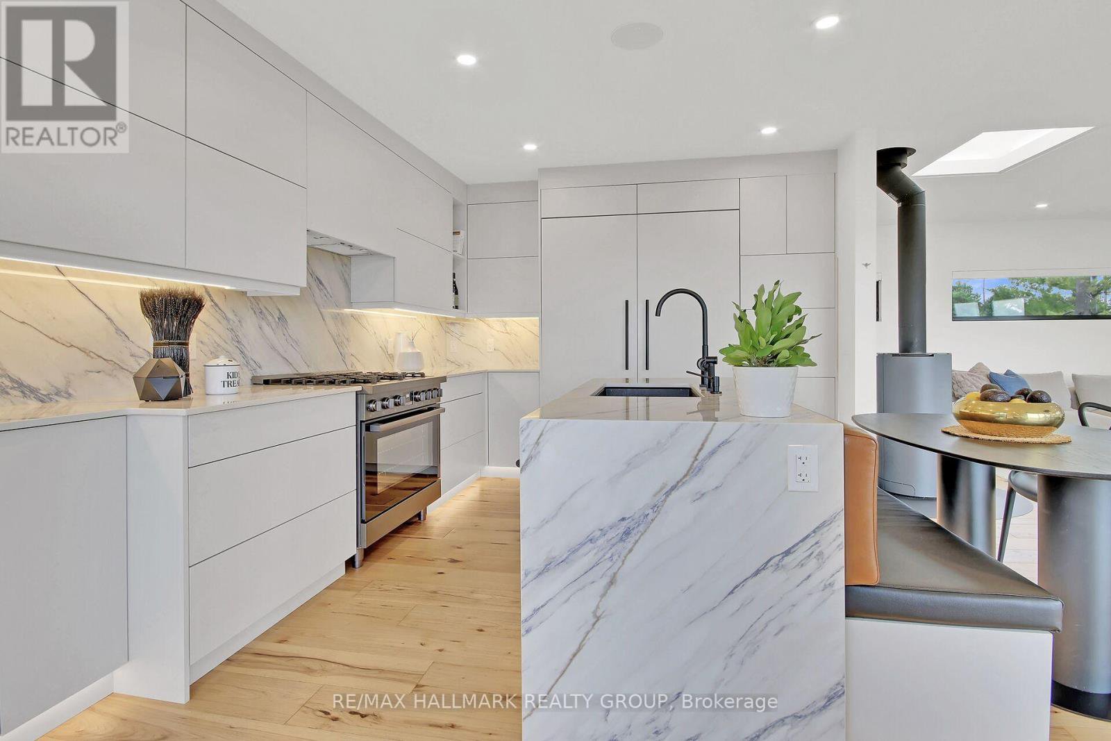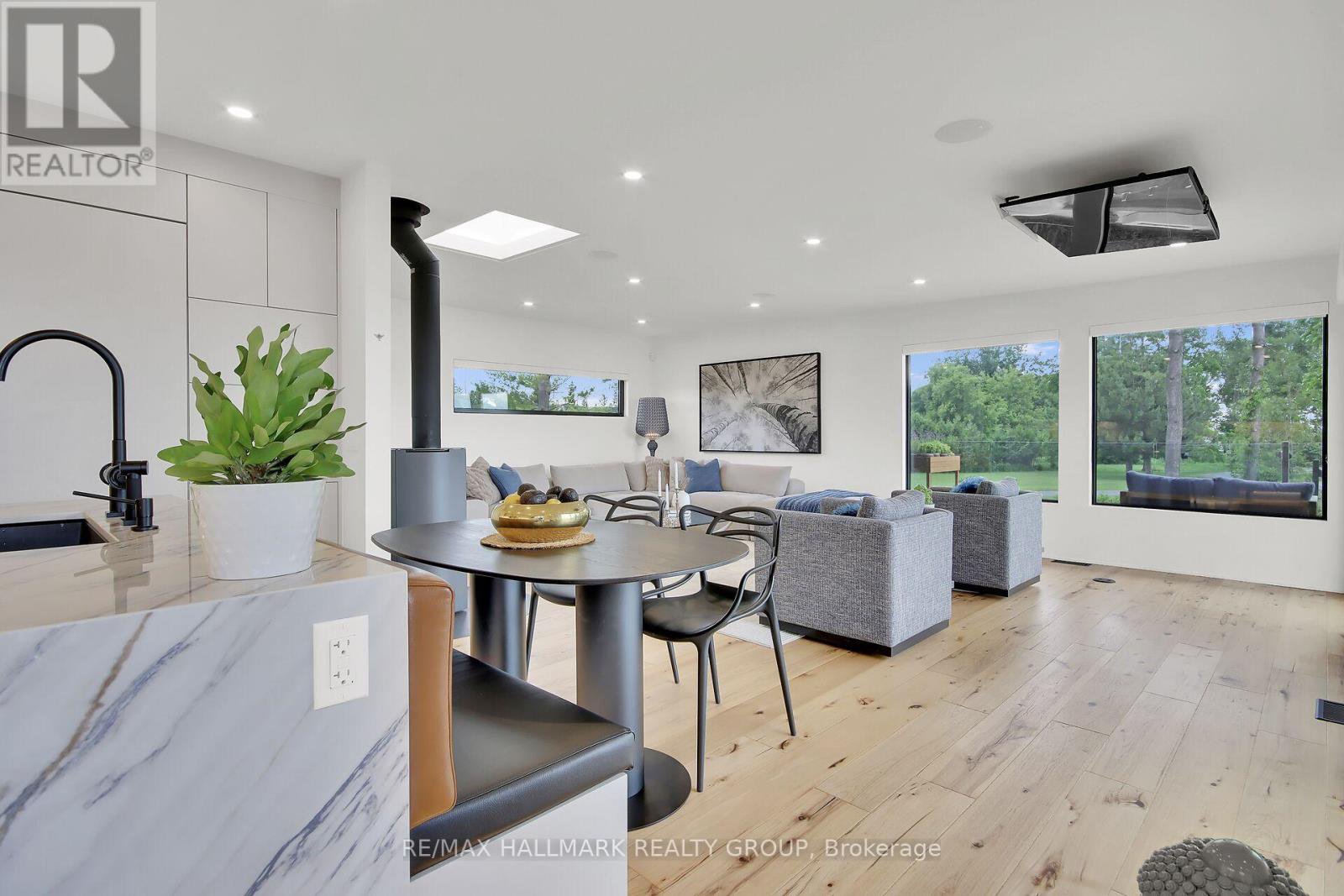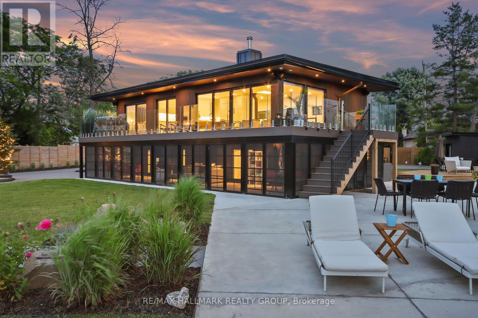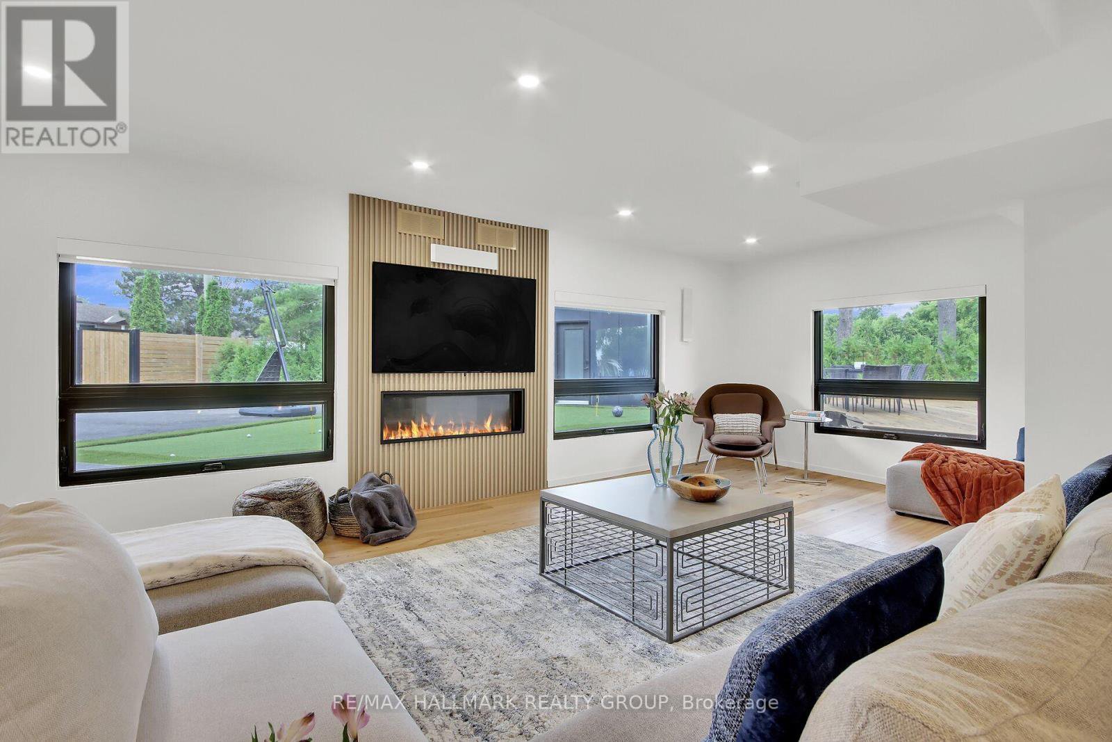 Crystal Bay waterfront resort like property providing an array of entertainment and recreational activities year round. Only 126 single family properties on the Ottawa River from Britannia to the NCC greenbelt making this a special opportunity. This modern 'smart' home has an outstanding and breathtaking panoramic views across the river to the Gatineau Hills and towards the city centre. The three level 3 bedroom split home and additional self contained Coach House all reimagined since 2021 are situated on a massive .85 acre lot with over 190' of waterfront. You can feel the serenity as you arrive through the gated entrance. High quality finishes throughout the buildings and grounds. Huge deck over a 3 season family room w/sauna. Other inclusions are a 36x18 inground saltwater pool, large deck and patio area, putting green, firepit, generator, BBQ station, gazebo and jet ski dock. Double car garage at main home and a single drive through garage at the Coach House. Private retreat inside the Ottawa Greenbelt on the Grandview Golden Mile. Short 2-4 minute drive to Department of National Defense Headquarters, Dick Bell Park/Nepean Sailing Club and Andrew Haydon Park.