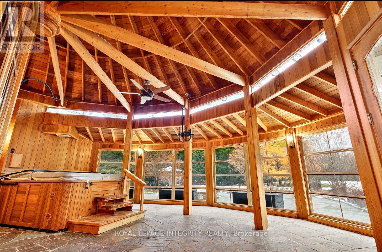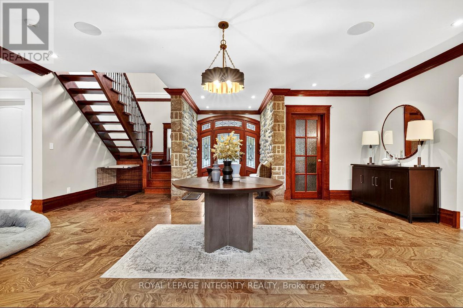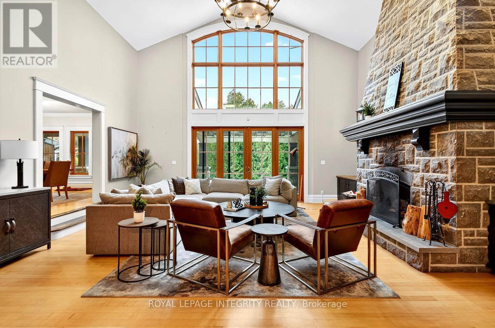 Welcome to Braveheart Estate, a breathtaking 39 acre country retreat located just 20 minutes from Ottawa. This exceptional property features a grand 6,700 sq. ft. executive residence with 5 bedrooms, plus a separate 2 bedroom apartment great for family or rental opportunity situated above a spacious 4 car garage.Set on 5 beautifully landscaped acres, the home offers stunning outdoor spaces including stone patios and walkways, and a 50x30 ft heated saltwater pool, outdoor shower and kitchen. There is also an indoor hot tub in a charming cabana perfect for relaxing or entertaining .Inside, luxury meets comfort. The main level has 2 primary suites with private ensuites, a guest bedroom, a home office, a dramatic Grand entrance, and incredible living room with a 2 story stone fireplace, a cozy family theatre room, and a gourmet chef's kitchen designed for both function and style.For equestrian enthusiasts, the estate includes a 5 stall barn with hay loft, a sand riding ring, and approximately 10 acres of fenced pasture. A 3,000 sq. ft. detached workshop provides 4 large bays and 5 12-ft industrial overhead doors ideal for hobbies, storage, or business use.The remaining 25 acres are covered in pristine forest with scenic trails to explore.9 separate heated floors throughout the home.Landscaping professionally maintained year round. Furnace 2022, One Boiler 2022 the other 2020, 5 new air conditioning units, Sound system through the house 2022, Security system upgraded 2021, Fridge 2021, Washer & Dryer 2023, Ensuite bathroom 2021 & Loft bathroom 2021, Sump pump basement 2025, Pool liner 2022, LED lights surrounding the home 2022.