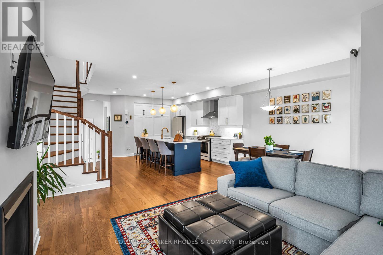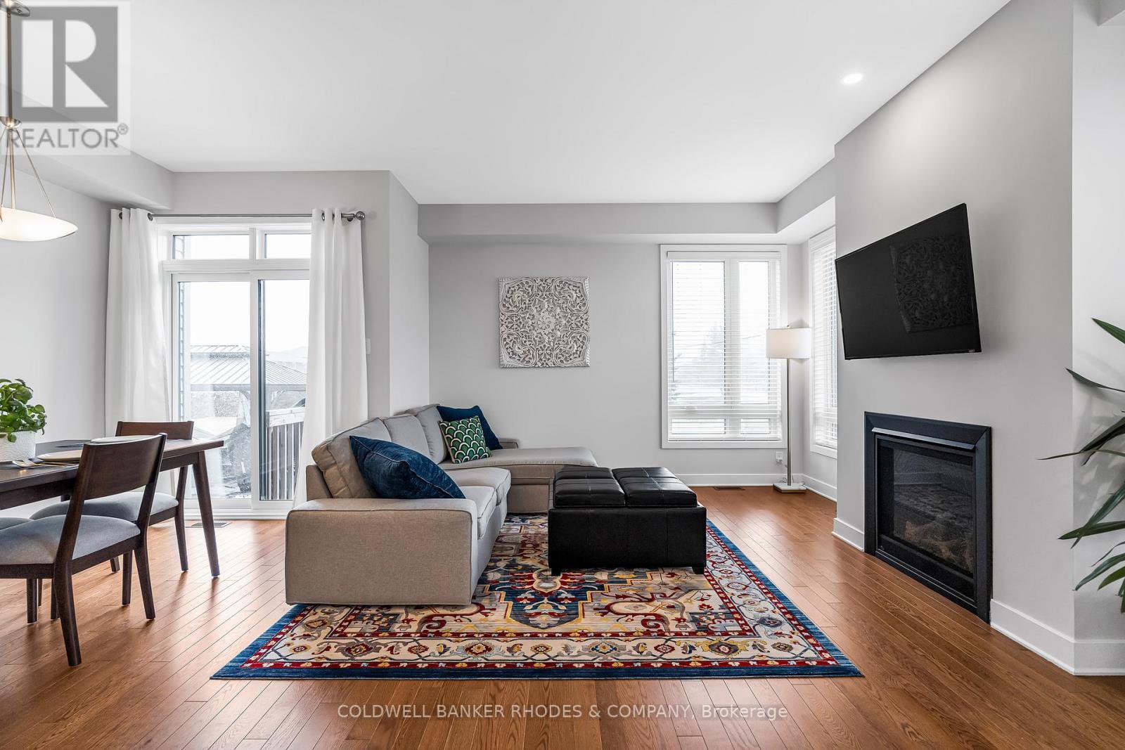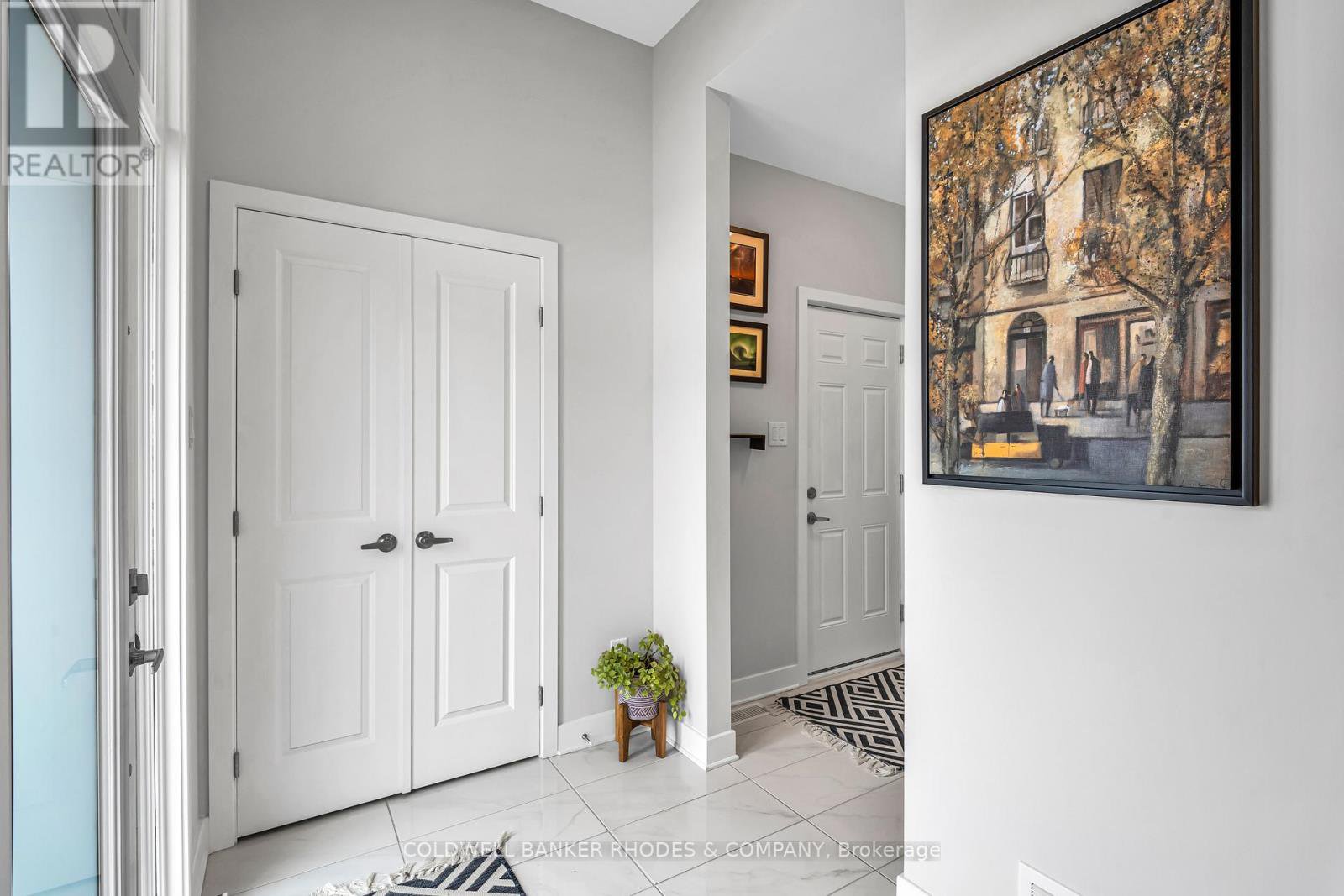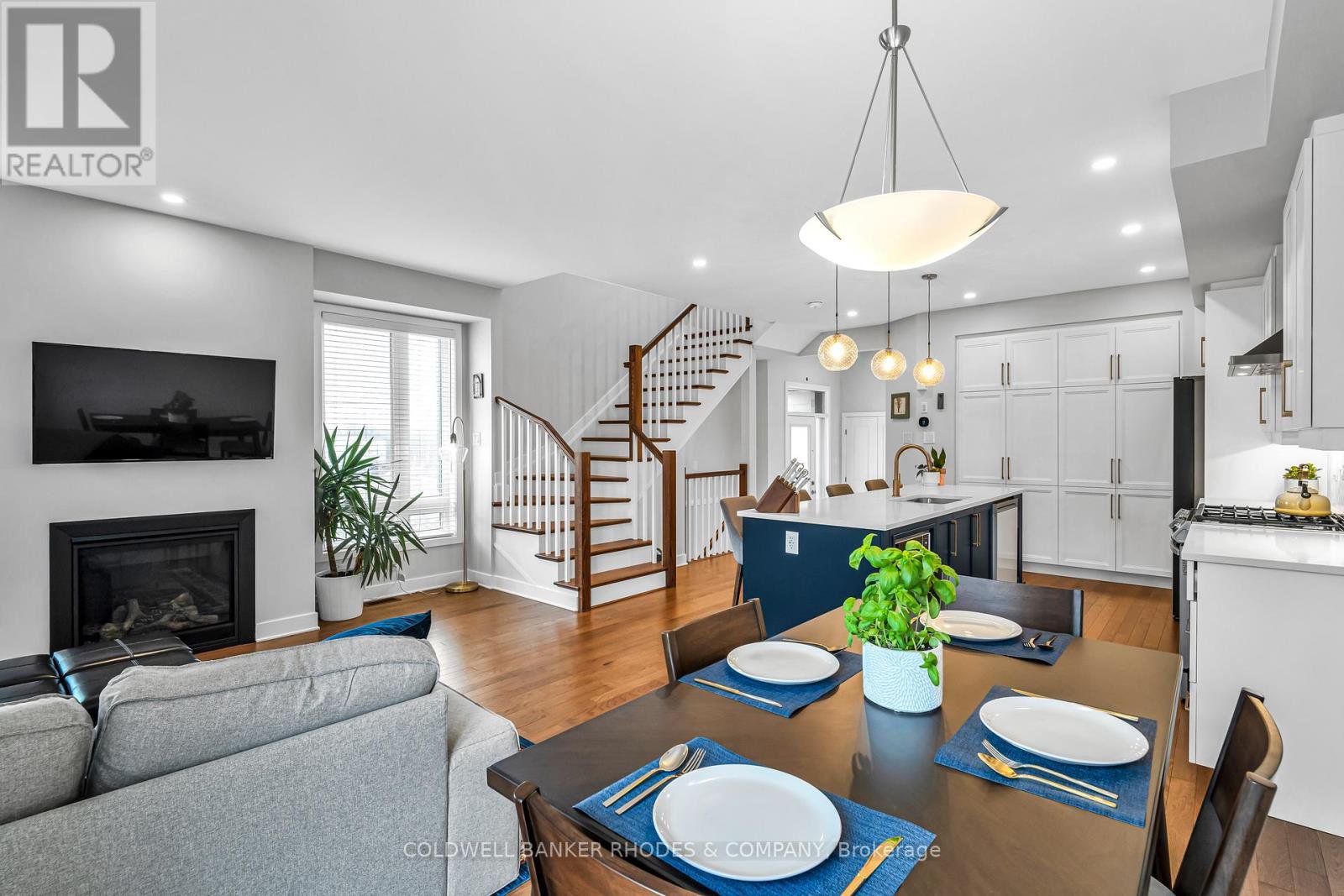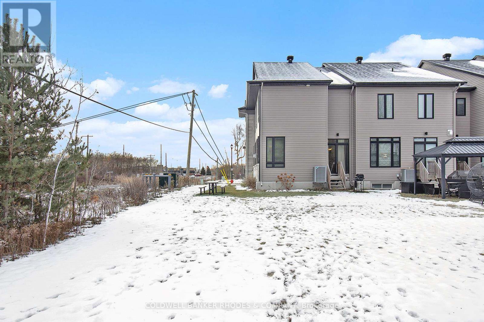 Stunningly upgraded move-in ready townhome in Kemptville's "the Creek" Development by Urbandale! 3 bedroom 2.5 bathroom Da Vinci END UNIT features a double garage and a huge corner lot. This home is highly finished with a chic, modern aesthetic and perfect for a family or professional. The main level features an open concept living/dining/kitchen with soaring ceilings. Engineering hardwood flooring with tile entryway. Showstopping kitchen perfect for entertaining with quartz countertops, huge centre island with counter seating and tile backsplash. Cozy living room with gas fireplace. Main floor dining area and access to the backyard via patio doors. The 2nd floor features engineered hardwood flooring throughout with loft area perfect for a home gym or office. Primary bedroom features walk in closet and luxurious 5 piece ensuite with quartz countertops, double sinks, soaker tub and separate tile shower. Two good sized additional bedrooms with 2nd bedroom featuring walk in closet. 2nd full bathroom with custom tile floor and quartz countertops. Laundry closet conveniently located on the 2nd level. Finished basement with high ceilings and large additional unfinished storage area. Double garage and double driveway! Great location in Kemptville with quick access to shopping, amenities and restaurants. Great access to nature close to Rideau River trails and the Kemptville Creek.