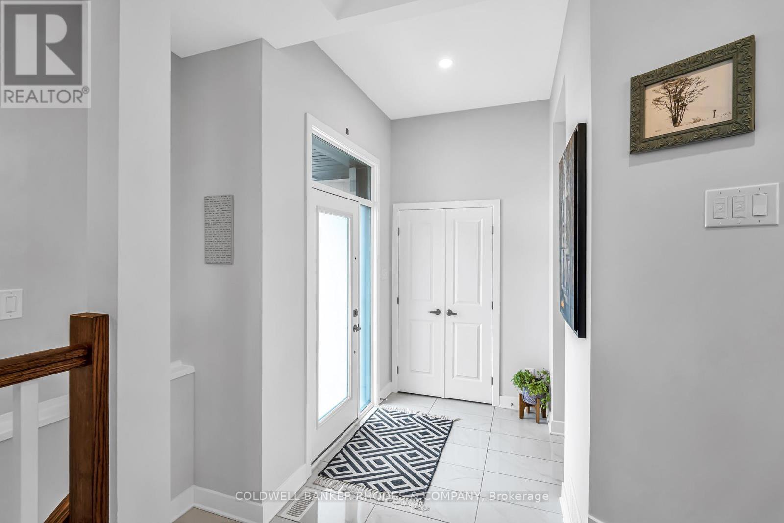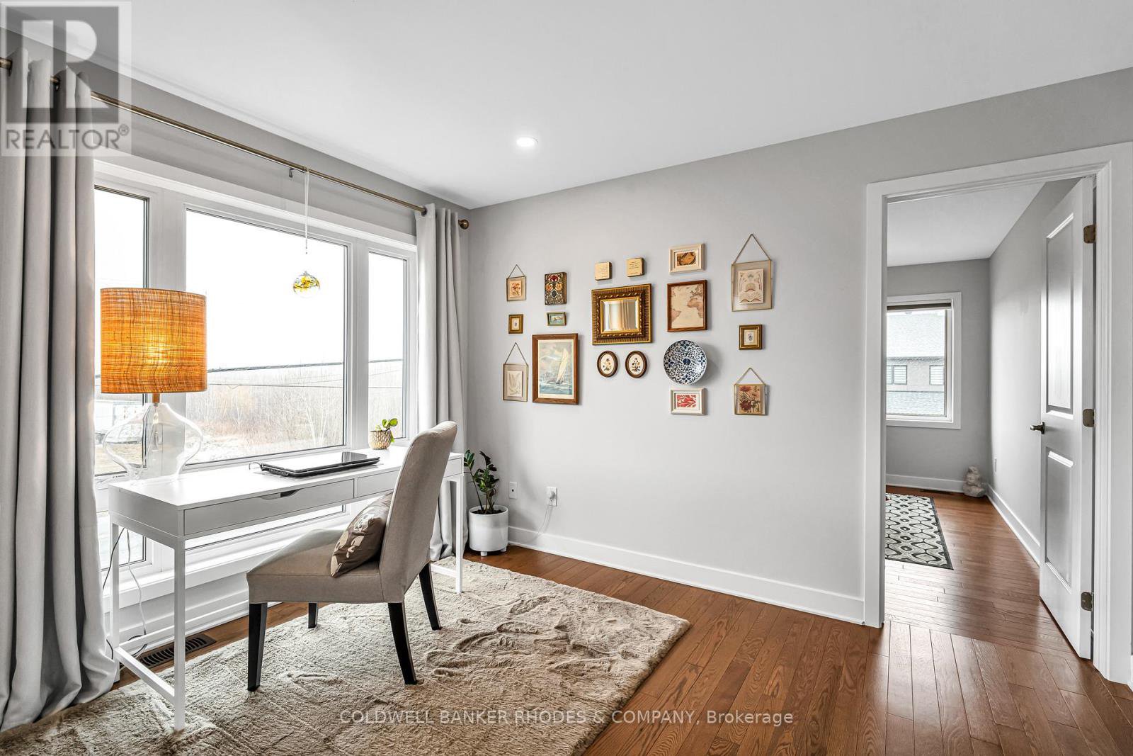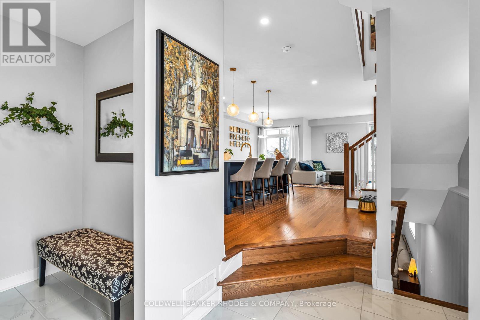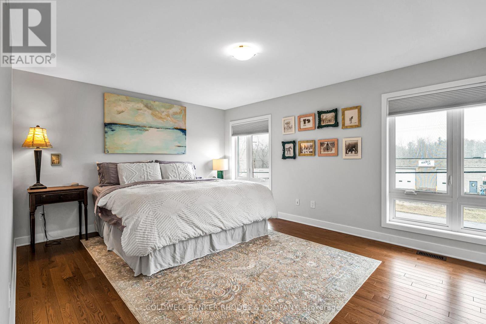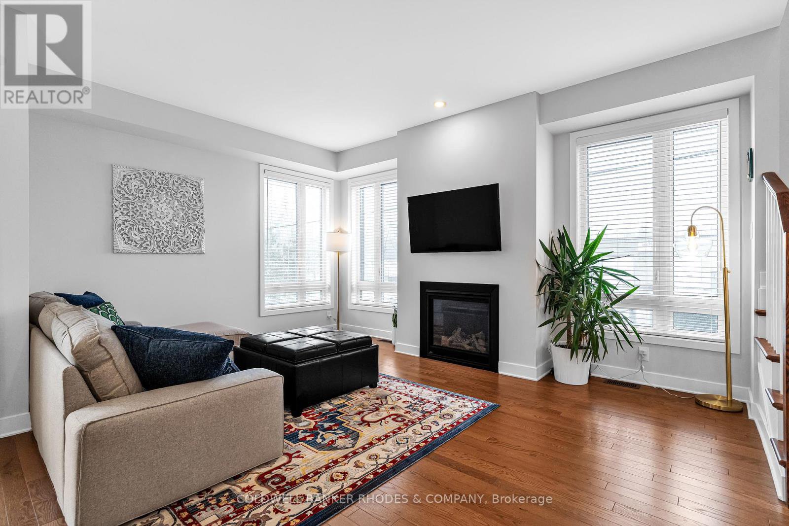 Stunningly upgraded move-in ready townhome in Kemptville's "the Creek" Development by Urbandale! 3 bedroom 2.5 bathroom Da Vinci END UNIT features a double garage and a huge corner lot. This home is highly finished with a chic, modern aesthetic and perfect for a family or professional. The main level features an open concept living/dining/kitchen with soaring ceilings. Engineering hardwood flooring with tile entryway. Showstopping kitchen perfect for entertaining with quartz countertops, huge centre island with counter seating and tile backsplash. Cozy living room with gas fireplace. Main floor dining area and access to the backyard via patio doors. The 2nd floor features engineered hardwood flooring throughout with loft area perfect for a home gym or office. Primary bedroom features walk in closet and luxurious 5 piece ensuite with quartz countertops, double sinks, soaker tub and separate tile shower. Two good sized additional bedrooms with 2nd bedroom featuring walk in closet. 2nd full bathroom with custom tile floor and quartz countertops. Laundry closet conveniently located on the 2nd level. Finished basement with high ceilings and large additional unfinished storage area. Double garage and double driveway! Great location in Kemptville with quick access to shopping, amenities and restaurants. Great access to nature close to Rideau River trails and the Kemptville Creek.