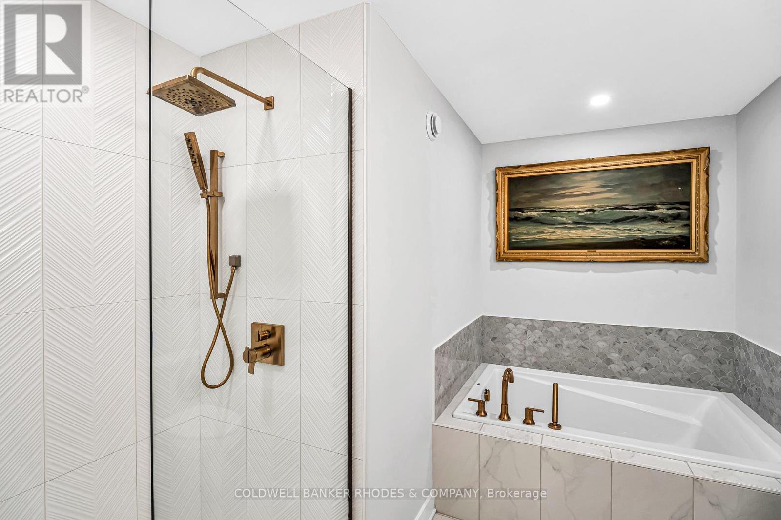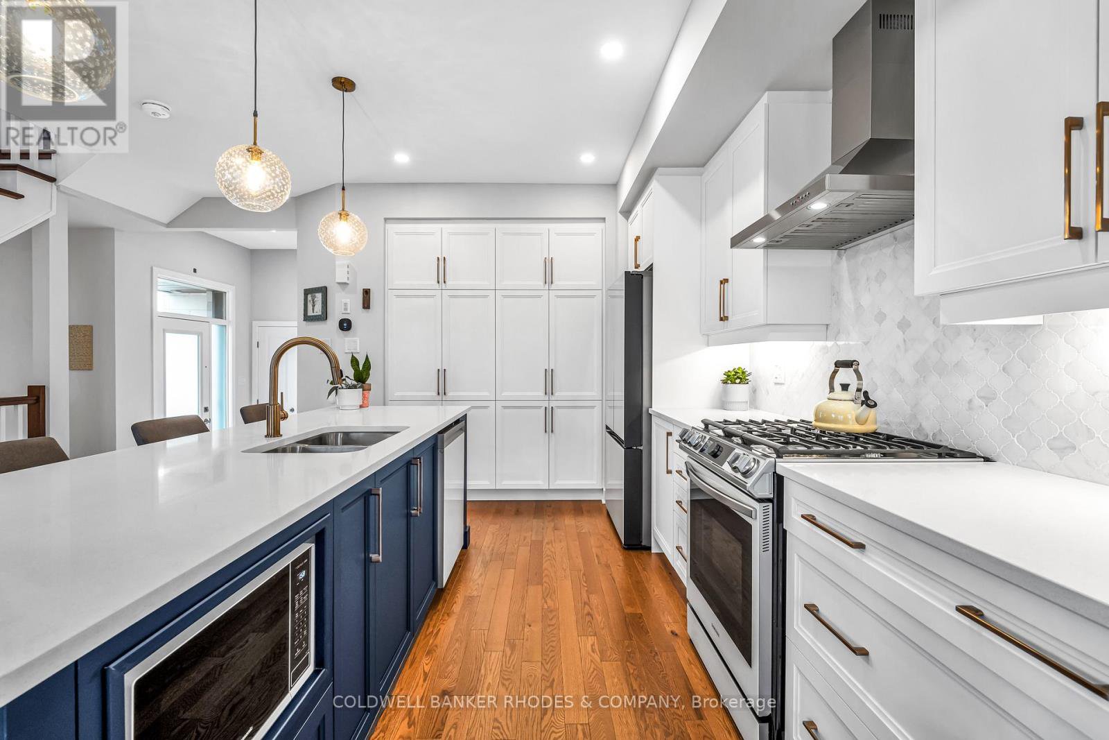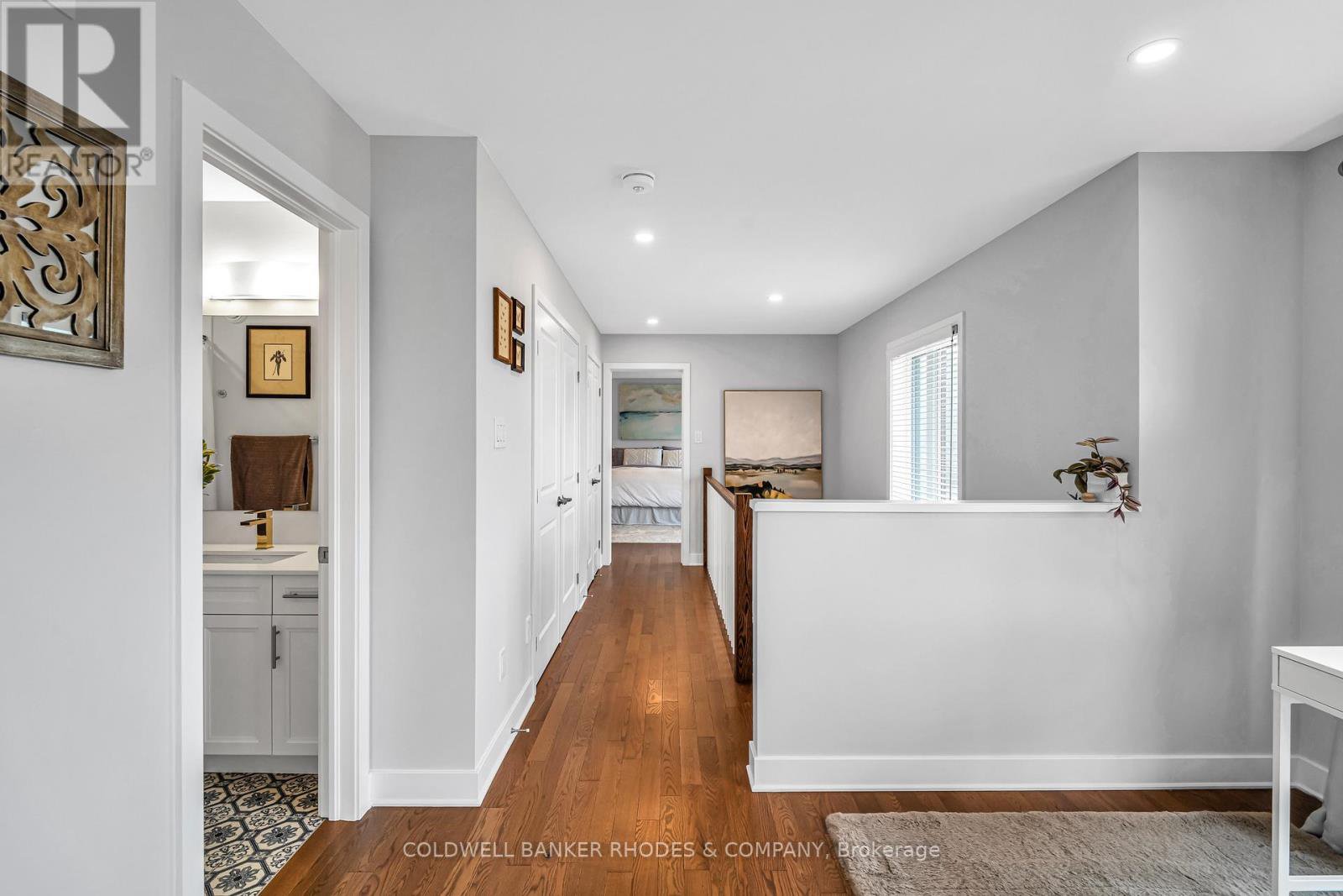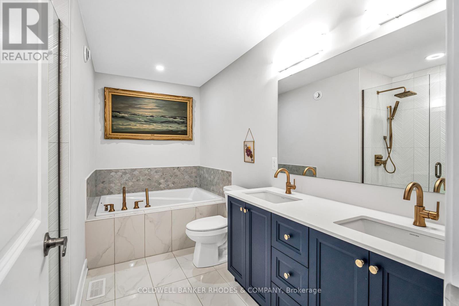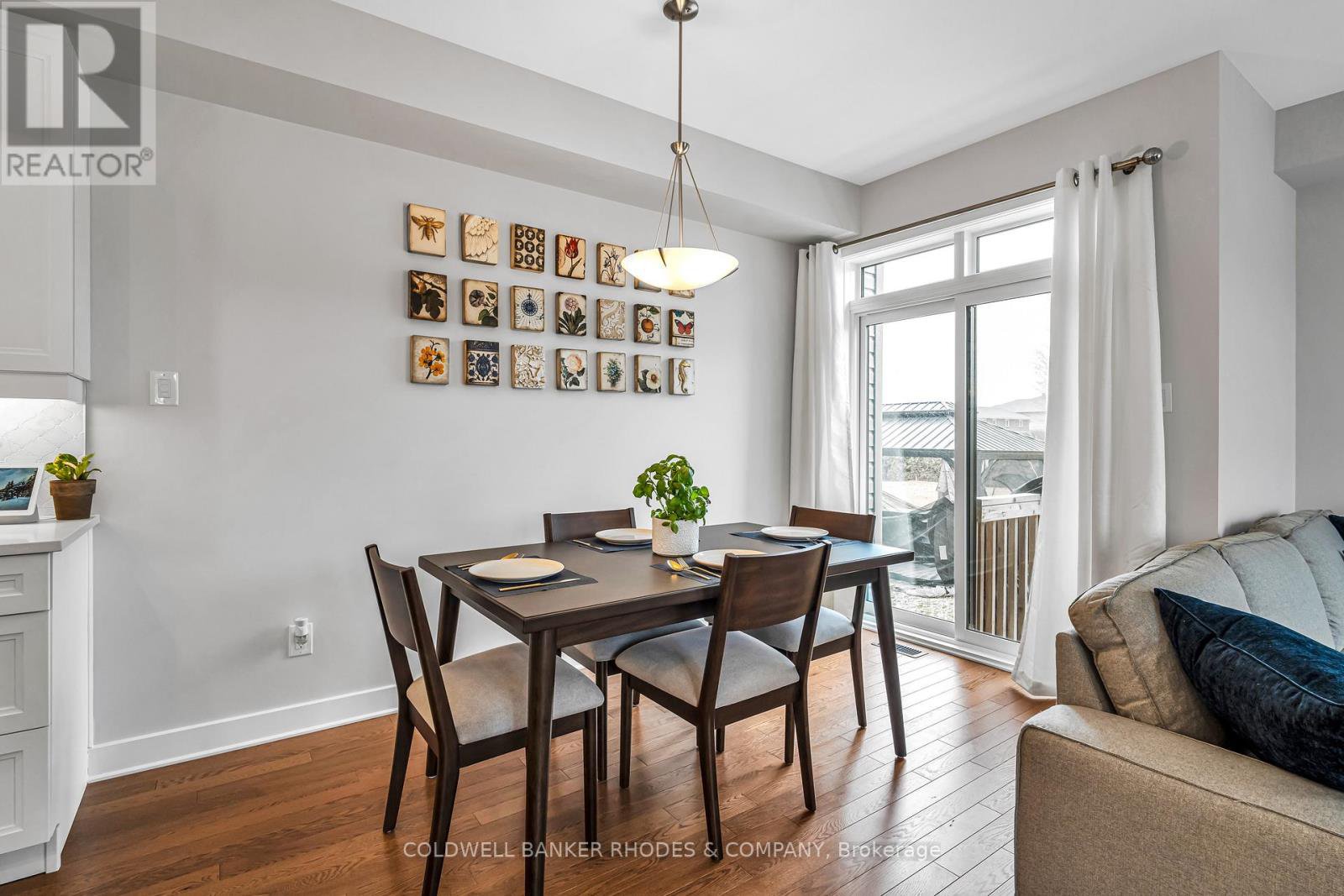 Stunningly upgraded move-in ready townhome in Kemptville's "the Creek" Development by Urbandale! 3 bedroom 2.5 bathroom Da Vinci END UNIT features a double garage and a huge corner lot. This home is highly finished with a chic, modern aesthetic and perfect for a family or professional. The main level features an open concept living/dining/kitchen with soaring ceilings. Engineering hardwood flooring with tile entryway. Showstopping kitchen perfect for entertaining with quartz countertops, huge centre island with counter seating and tile backsplash. Cozy living room with gas fireplace. Main floor dining area and access to the backyard via patio doors. The 2nd floor features engineered hardwood flooring throughout with loft area perfect for a home gym or office. Primary bedroom features walk in closet and luxurious 5 piece ensuite with quartz countertops, double sinks, soaker tub and separate tile shower. Two good sized additional bedrooms with 2nd bedroom featuring walk in closet. 2nd full bathroom with custom tile floor and quartz countertops. Laundry closet conveniently located on the 2nd level. Finished basement with high ceilings and large additional unfinished storage area. Double garage and double driveway! Great location in Kemptville with quick access to shopping, amenities and restaurants. Great access to nature close to Rideau River trails and the Kemptville Creek.