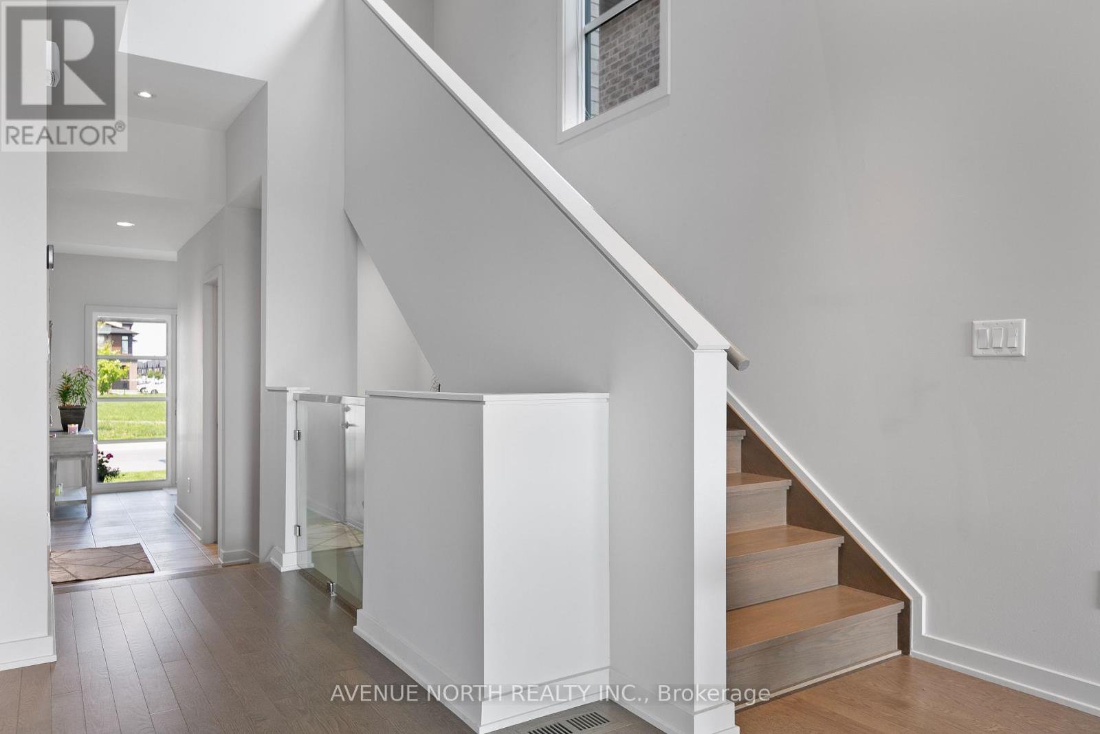 Perfectly maintained Lynwood model by HN Homes with over $50,000 in upgrades such as an high-end kitchen finishes, concept home theatre, an upgraded fireplace mantle, red oak hardwood flooring throughout both floors, premium accent paint, and much more. Situated on a premium lot without front or rear neighbours and close to a shopping plaza and parks, this home offers approximately 2,300sqft of living space as well as a finished walk-out basement. Inside, a bright tiled foyer with a generous front closet flows into an open-concept main level. The living room combines a custom showpiece fireplace with a built-in TV niche perfect for entertaining. The chef-inspired kitchen is equipped with stainless steel premium brand appliances, a cooktop, an extended granite island, and abundant storage. Dimmable lighting adds a touch of ambiance for any occasion. Off the kitchen, enjoy the south-facing balcony with a gas BBQ hookup, ideal for outdoor dining and relaxing views of nature. Upstairs, the red oak hardwood flooring continues into three spacious bedrooms, each with blackout blinds. A versatile den/loft offers the perfect space for a home office or reading nook, with potential to convert into a fourth bedroom. The private primary suite includes electric blinds, a large walk-in closet, and a luxurious 5-piece ensuite with an upgraded freestanding tub, glass-enclosed shower, and double sinks. The entire home includes matching hardwood flooring, matching custom pot lights, and matching zebra blinds. The second-floor laundry has premium LG appliances and adds everyday convenience. The fully finished walk-out basement features soft carpeting, pot lights, two separate entries, and significant storage space, making it ideal for a home gym, media room, or potential in-law suite. A full bathroom rough-in is already in place for future development. No need to worry as eavestroughs have already been installed. This is a rare opportunity - don't miss out and schedule a showing today!