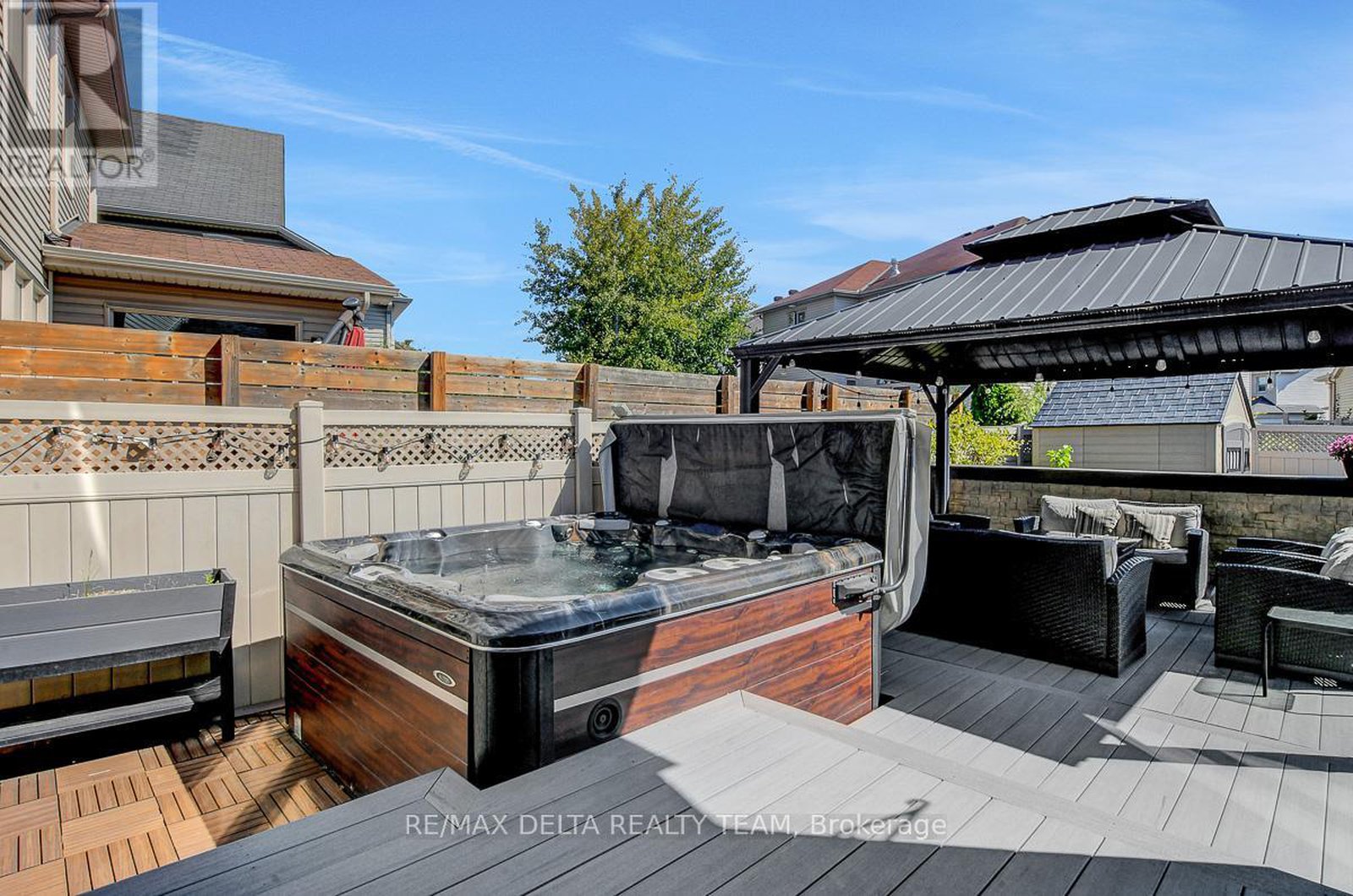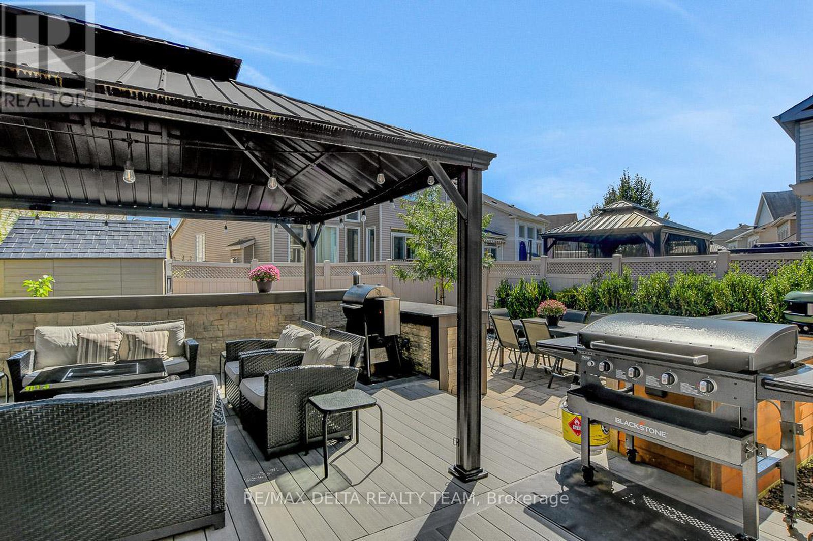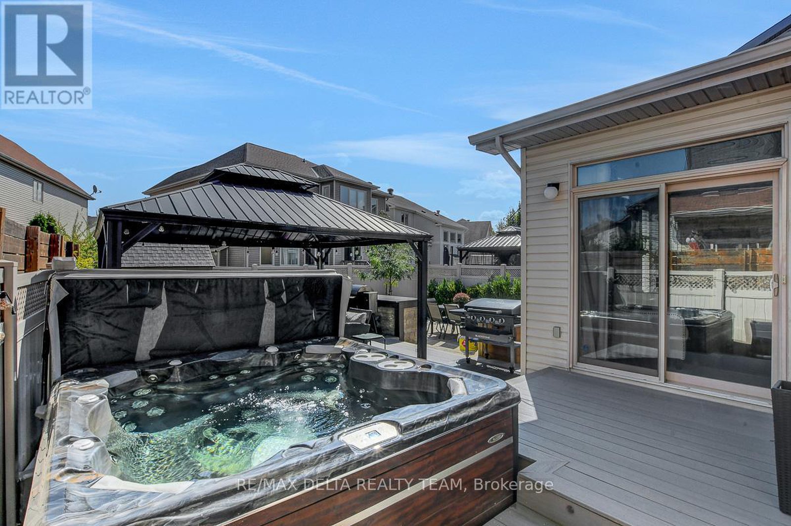 This One Truly Has It All! Welcome to this stunning 3+1 bedroom, 3-bathroom home, beautifully upgraded and perfectly situated in a family-friendly neighbourhood across from a scenic park and green space. From the moment you walk in, the open-concept layout, high-end finishes, and thoughtful design will take your breath away. The chef's kitchen is a true showstopper - featuring a large island, quartz countertops, breakfast bar, crown moulding, pots & pans drawers, hardwood flooring, and newer stainless steel appliances. Whether you're hosting friends or preparing family dinners, the built-in bar area with quartz counters, custom wine racks, and a keg fridge makes entertaining effortless. The family room is warm and inviting, complete with vaulted ceilings, a cozy gas fireplace, and a patio door leading to the backyard. Hardwood and tile flooring flow throughout the main level, adding elegance and continuity. Upstairs, you'll find a spacious primary suite designed for relaxation, featuring a spa-inspired ensuite with a glass shower, deep soaker tub, and a walk-in closet. Two additional bedrooms and a stylish main bath complete the upper level. The fully finished basement extends your living space with a large recreation room and an extra bedroom accented by modern barn doors - perfect for guests, a home office, or a gym. Step outside to your private backyard oasis - a beautifully landscaped retreat with a low-maintenance PVC fence, storage shed, expansive interlock patio, composite deck with gazebo, hot tub, and even an outdoor kitchen - ideal for year-round entertaining. The home is also enhanced by custom Gemstone exterior lighting, adding curb appeal day and night. Roof redone in 2020 with hurricane grade shingles. This home truly has it all - upgrades, style, and unbeatable comfort - all in a fantastic location. Move-in ready and waiting for you to make it your own!