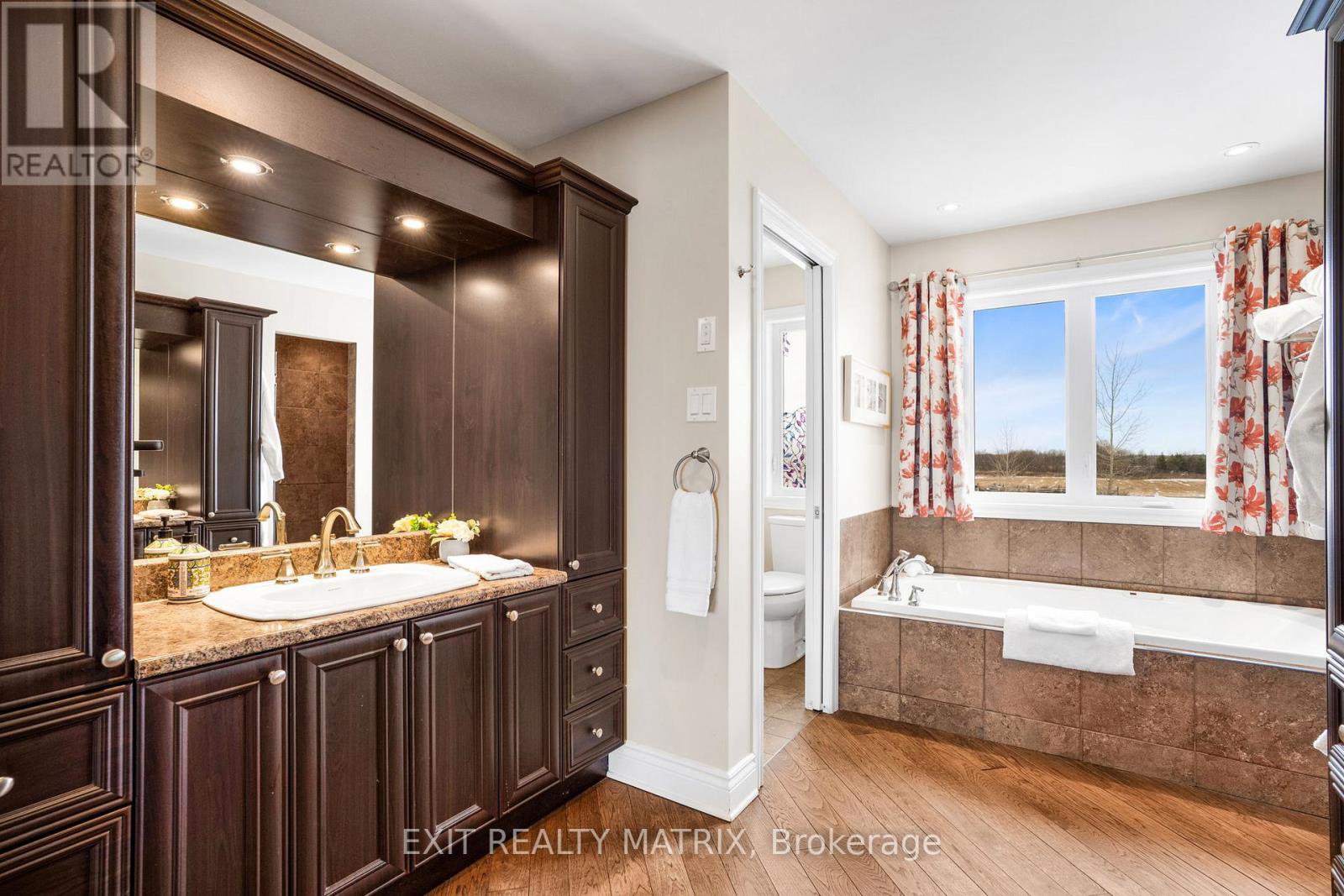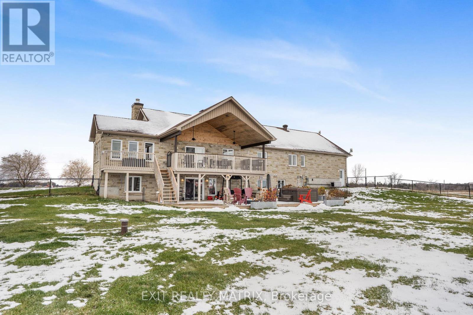 Prepare to fall in love with this breathtaking, magazine-worthy bungalow, sitting on just shy of 50 acres perfectly designed for comfort, style, and multi-generational living. From the moment you arrive, the charming front porch and stunning curb appeal set the tone for what awaits inside. Step into a sun-filled, open-concept main level where natural light pours through every window and warm wood-beam accents elevate the space with timeless character. The chef-inspired kitchen offers endless cabinetry, a sleek sit-at island, and a seamless flow into the dining area-complete with patio doors opening to an exceptional back deck overlooking peaceful farmer's fields and pure countryside serenity. The living room is a showstopper with its striking stone fireplace, while the inviting family room provides the perfect spot to unwind. The luxurious primary suite feels like a private retreat, featuring a spa-like 5-piece ensuite and a spacious walk-in closet. An elegant 3-piece bath and a bright home office complete this impressive level. The lower level is equally extraordinary. With soaring ceilings and a stunning walk-out design, the in-law suite offers unmatched comfort and independence. It boasts a large, beautifully appointed kitchen, a bright open living room, two generous bedrooms, and a modern 4-piece bathroom-ideal for extended family or guests, and even includes a dedicated doggy spa. Outside, your private oasis awaits. Enjoy a sprawling deck perfect for entertaining, a relaxing hot tub under the stars, and unobstructed views that create a sense of escape without sacrificing convenience. An attached 2-car garage adds practicality to this dreamy property. Stylish, versatile, and incredibly inviting-this exceptional bungalow delivers the lifestyle you've been searching for. Homes like this don't come around often.