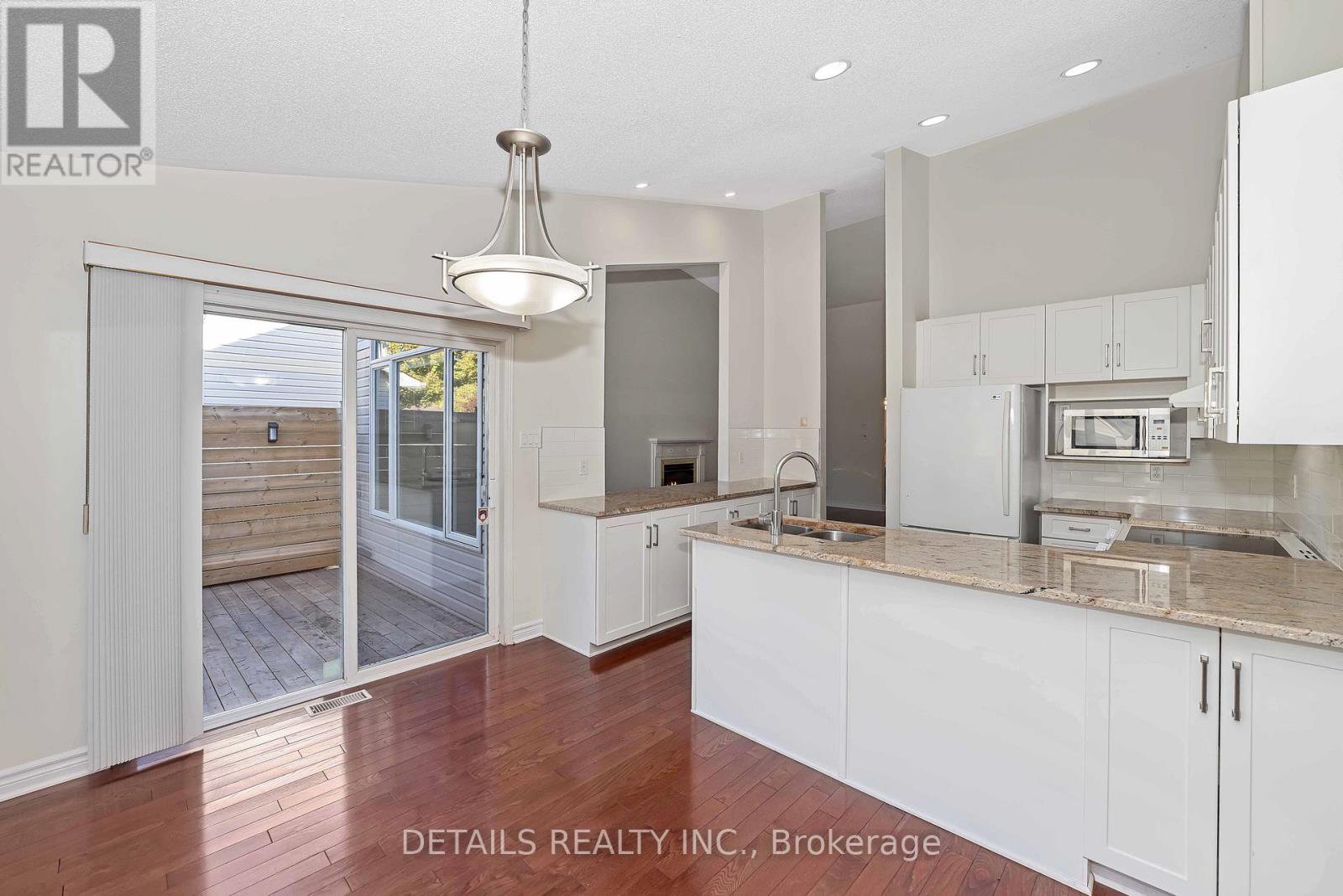 Welcome to The Bungalows of Chapel Hill! This beautifully cared-for 2+1 bedroom, 3 bathroom bungalow blends comfort, style, and convenience in one of Ottawa's most sought-after neighbourhoods. Step inside to a bright, open-concept living and dining space showcasing hardwood floors, dramatic 13-ft cathedral ceilings, and a warm gas fireplace-perfect for relaxing or hosting family and friends. The sunlit eat-in kitchen features granite counters, a new backsplash, quality appliances, and generous cabinetry, offering both function and modern appeal. Patio doors lead to a fully landscaped, fenced backyard with a spacious 12 x 19 deck ideal for morning coffee or summer entertaining. The inviting primary bedroom impresses with soaring ceilings, a walk-in closet, and an updated 4-piece ensuite for your own private retreat. A flexible second bedroom or office, a full bath, and main-floor laundry with inside entry to the double garage add everyday ease and practicality. The fully finished lower level greatly enhances the home's living space with a large recreation room, third bedroom, full bath, walk-in closet, and extensive storage-ideal for guests, hobbies, fitness, or additional family needs. Fresh paint throughout gives the home a clean, move-in-ready feel. Located on a quiet, welcoming street close to parks and pathways, yet minutes from Innes Road shopping, restaurants, theatres, and OC Transpo, this property offers the perfect balance of peace and accessibility. Exceptionally maintained and truly turnkey, this bungalow presents a fantastic opportunity to enjoy effortless, connected living in Chapel Hill with modern updates, roomy interiors, and a serene, well-appointed community setting.