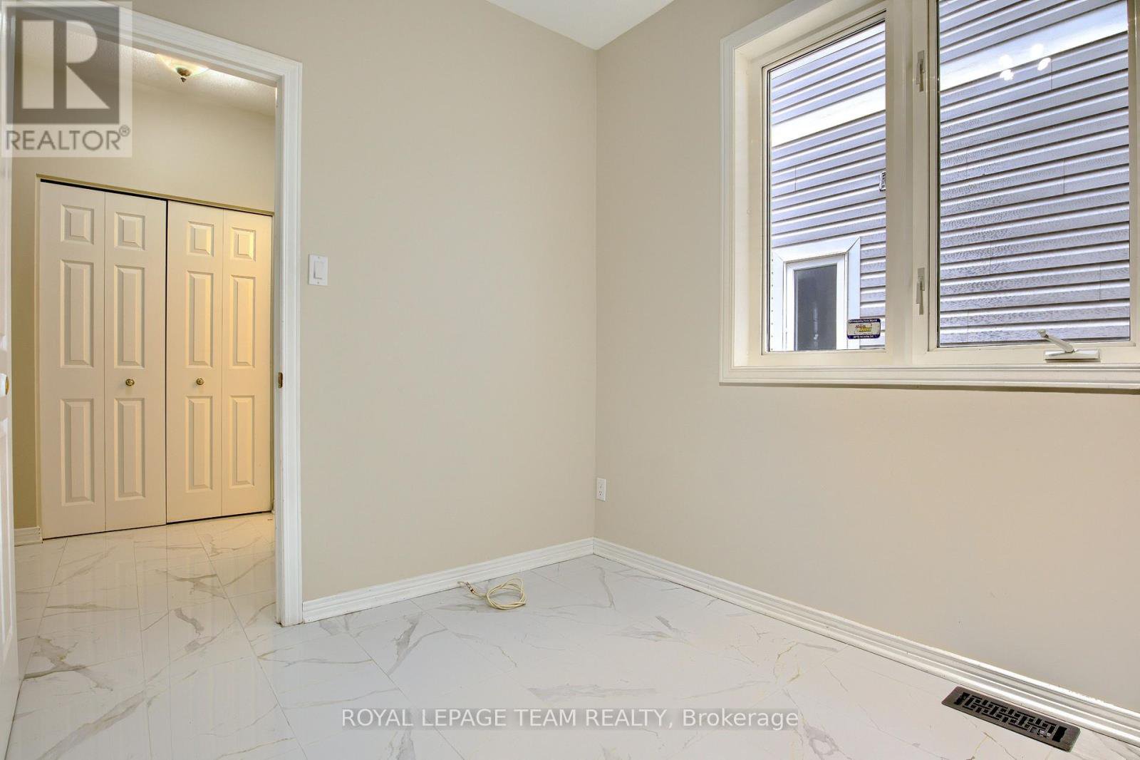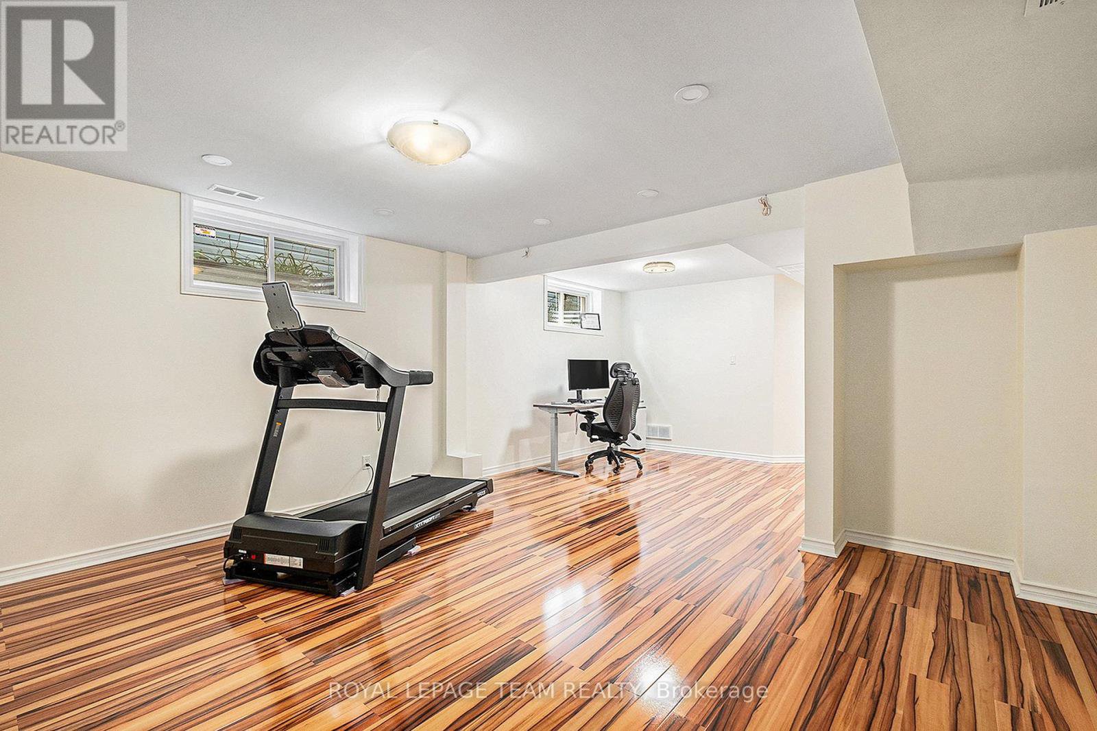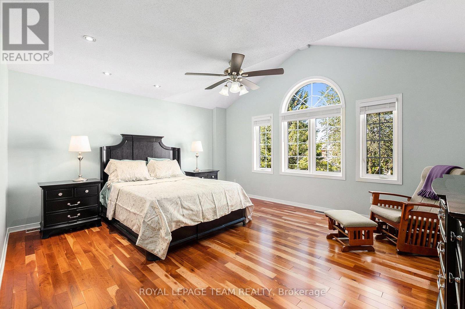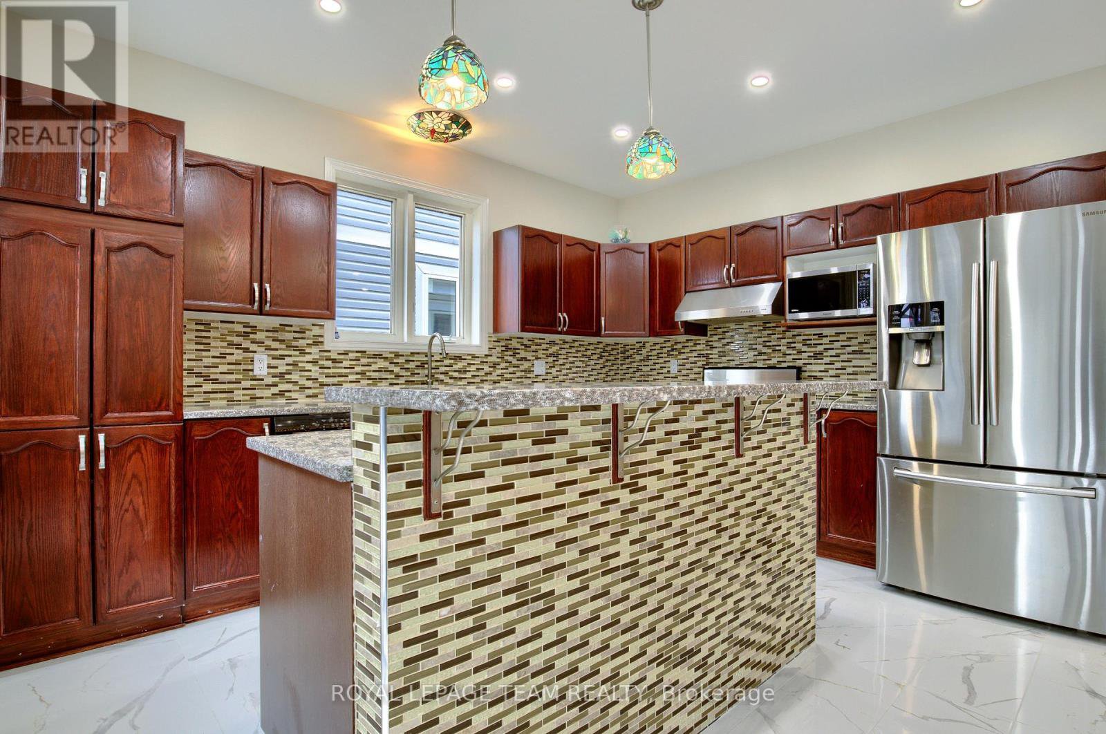 Welcome to 45 Boulder Way, a beautifully upgraded 4-bedroom, 3.5-bath home in Barrhaven, boasting 3,200 sq ft on a landscaped 38' x 108' lot. This residence offers $20,000 worth of recent upgrades on the main floor, enhancing both style and comfort. It features hardwood floors across three levels, high ceilings, pot lights, and a dedicated main-floor office-perfect for remote work or study. The chef's kitchen is equipped with quartz counters, refaced cabinetry, a pantry, gas stove, and a 6' island, seamlessly opening to a sunken family room with a gas fireplace. Upstairs, the primary suite impresses with a cathedral ceiling, walk-in closet, and ensuite, while the guest bedroom includes a Murphy bed. Abundant natural light floods all rooms due to the ideal orientation. Ceiling fans, window coverings in every bedroom, custom drapery in the living, dining, and family rooms, plus a new patio door further elevate the space. The finished basement features large windows, a full bath, laundry, two walk-in closets, an open versatile area, and a cold room for storage. Step outside to a composite deck with a gazebo, reinforced for a hot tub, surrounded by mature perennials, pear trees, and a resin shed, all framed by professional landscaping. The garage includes epoxy flooring, shelving, tire racks, and EV charger wiring. Freshly painted and equipped with a security system, this home is ideally located within walking distance to schools, close to transit and the VIA train station, with direct access to trails and greenspace. This property offers a turnkey blend of luxury, function, and convenience in one of Ottawa's most sought-after communities. Book your showing today!