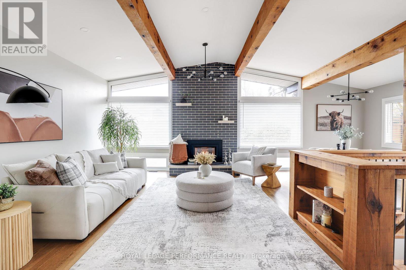 Welcome to 2320 Nerta-an exceptional custom-built, move-in ready bungalow on a spacious corner lot in the sought-after Hawthorne Meadows community. Offering privacy and abundant outdoor space, this home combines high-end craftsmanship with an inviting, chalet-like warmth. At its heart, an impressive open-concept living, dining, and kitchen area showcases soaring cathedral ceilings with custom Torrefied Pine beams, rich hardwood floors, and a cozy gas fireplace that evokes a mountain-retreat ambiance. The beautifully renovated kitchen features natural ash cabinetry and Canadian-mined granite countertops, creating a refined space that inspires both culinary creativity and social connection.The main level offers three versatile bedrooms, ideal for restful retreats, home offices, or creative spaces. The primary suite includes a private ensuite, while both bathrooms reflect thoughtful renovation and modern design. The fully finished basement extends the living space with a spacious family room, fourth bedroom, stylish bathroom, and generous laundry area-perfect for guests or multi-functional living.Outdoors, a brand-new deck, fence, and shed enhance the beautifully hedged, private yard-ideal for entertaining or quiet relaxation. Additional features include a covered carport, extended driveway, and convenient proximity to schools, shopping, parks, and public transit. Recent updates ensure peace of mind and lasting value, including a professionally wrapped and waterproofed foundation (2024), high-efficiency furnace (2023), all-new plumbing and main stack (2025), fully renovated basement (2025), kitchen renovation with new appliances (2022), gas fireplace installation with blower fan (2023), bathroom renovations (2025), and the addition of the new deck, fence, and shed (2025). This turnkey property invites you to move in and enjoy effortlessly from day one. Open house Saturday November 22nd and Sunday November 23rd from 1-3pm.